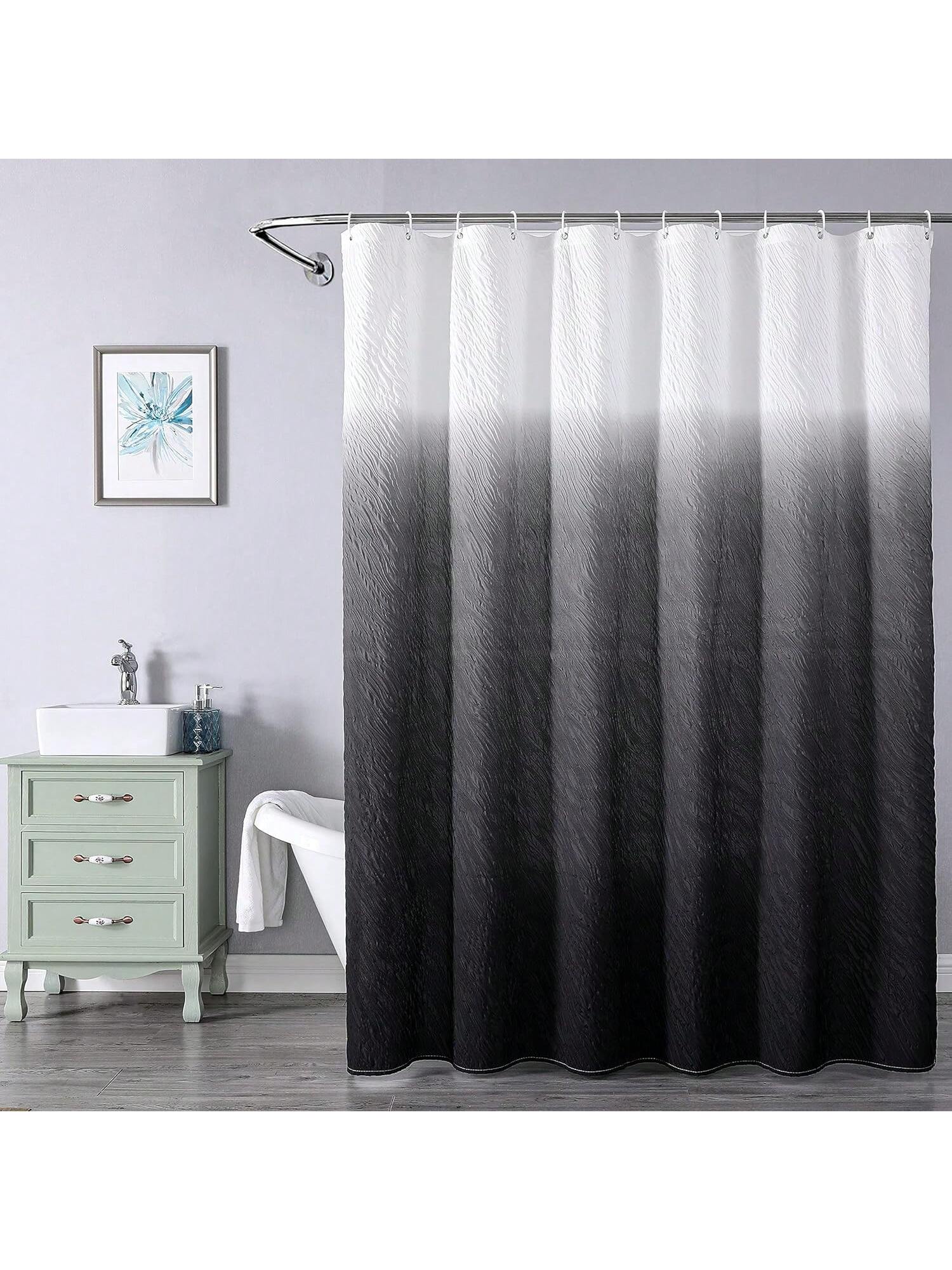 3D Embossed Gradient Fabric Shower Curtain - Waterproof Bathroom Accessories for Home Décor