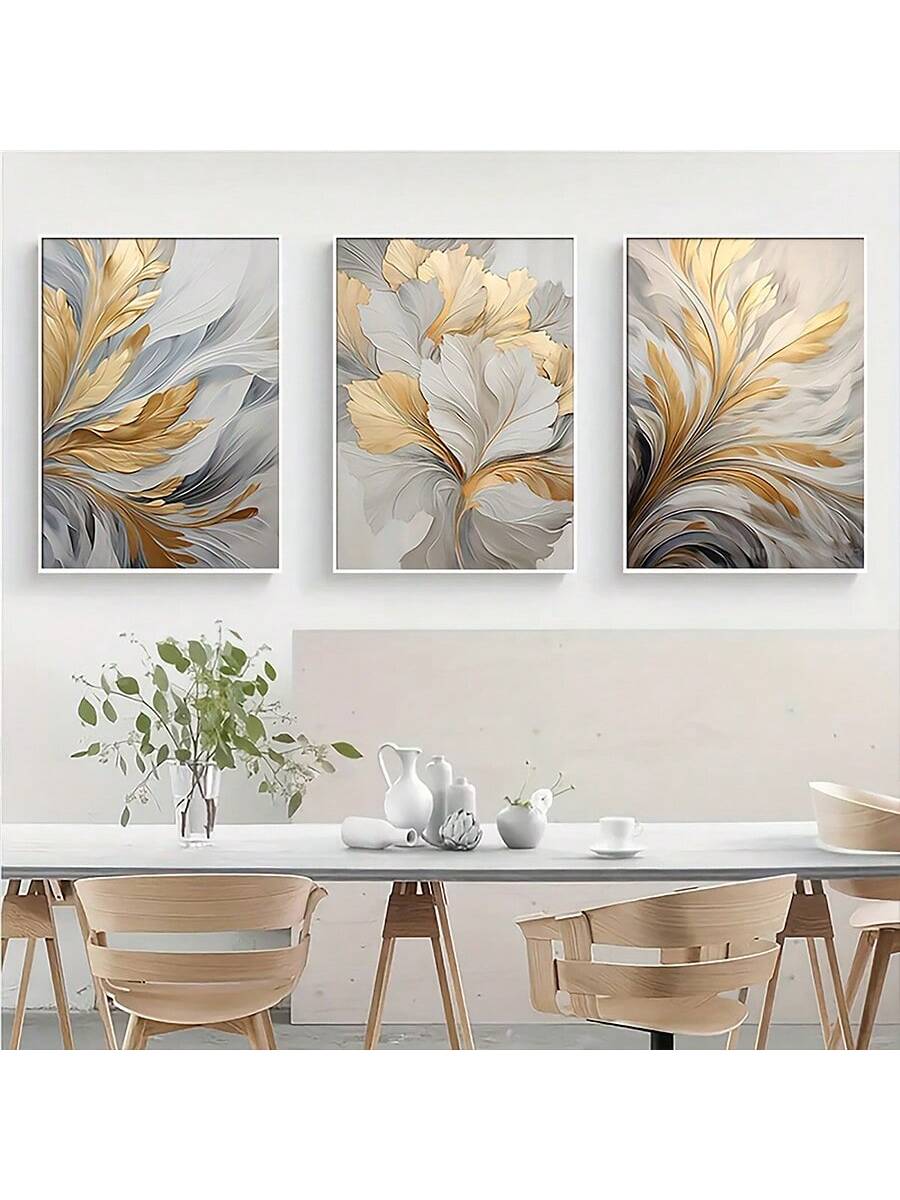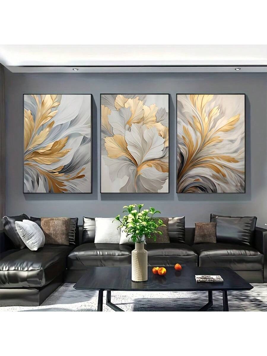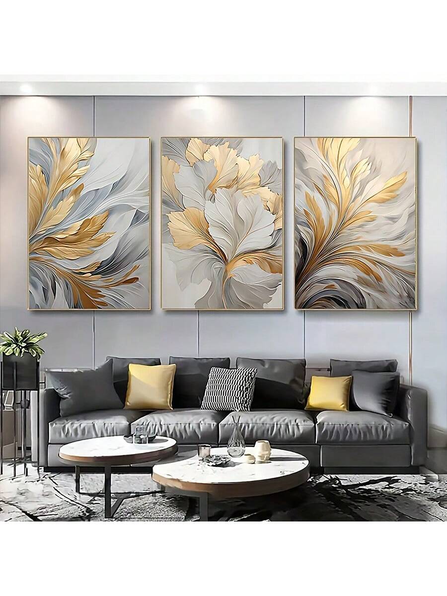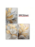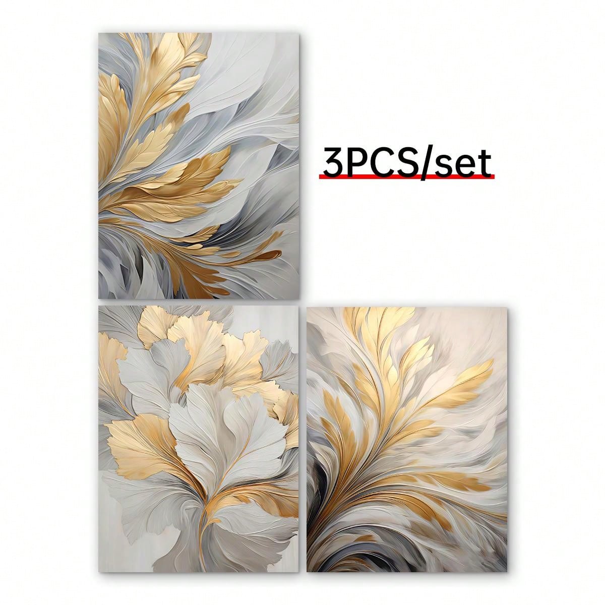 3pc Luxury Golden and White Leaves Canvas Wall Art Set for Home and Office Decor