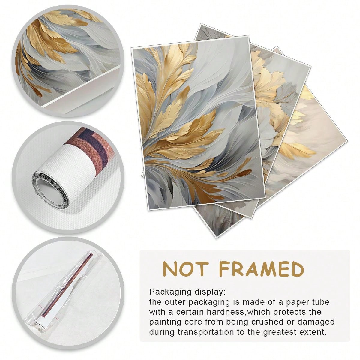 Enhance your home or office decor with our 3pc Luxury Golden and White Leaves Canvas Wall Art Set. Made with high-quality materials, these elegant art pieces feature a beautiful golden and white leaf design that adds a touch of luxury to any room. Perfect for adding a sophisticated touch to your space.