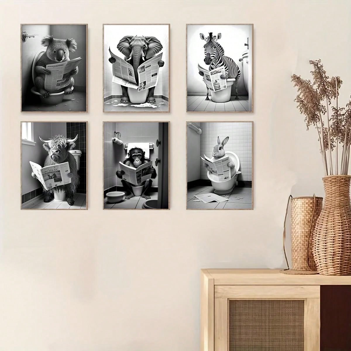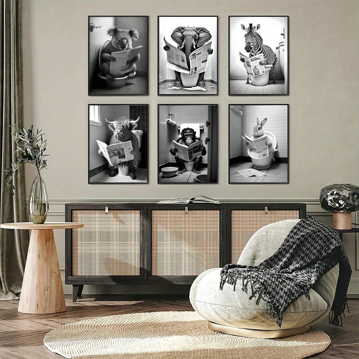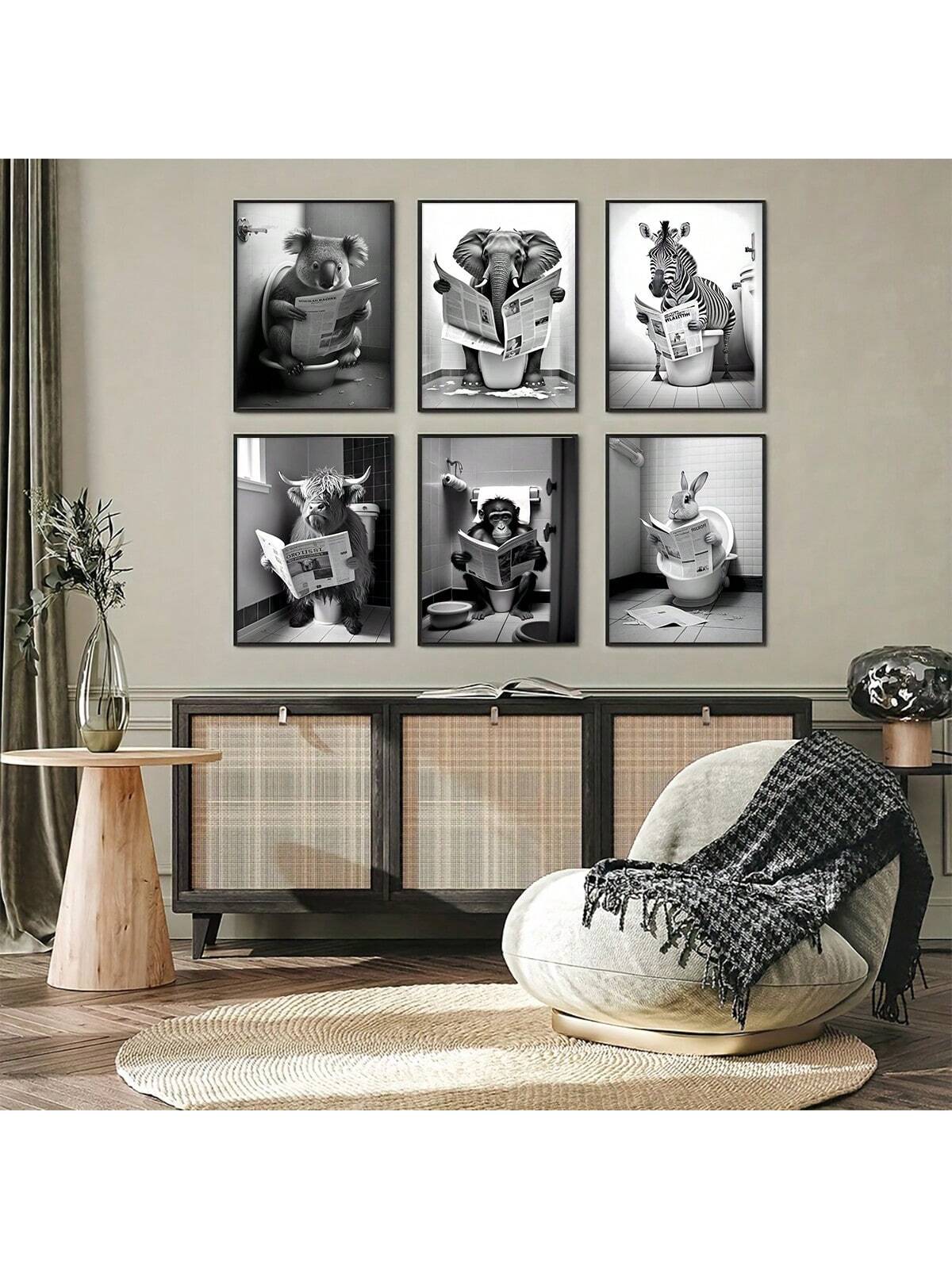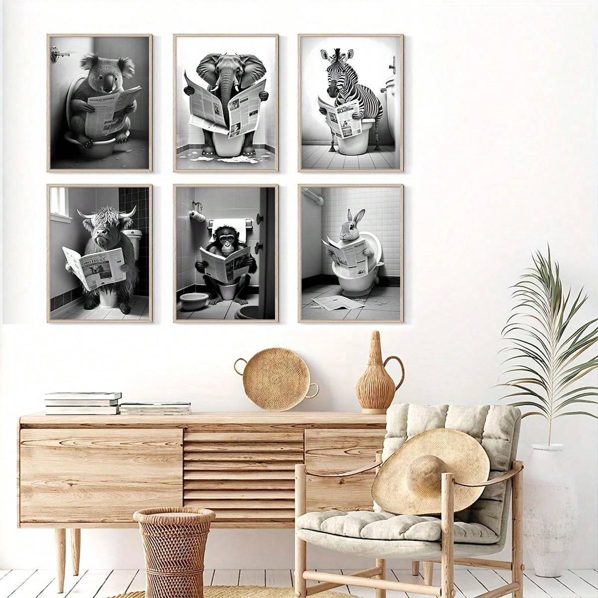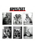 6 Piece Canvas Poster Set: Modern Animal Art for Bedroom and Living Room Decor