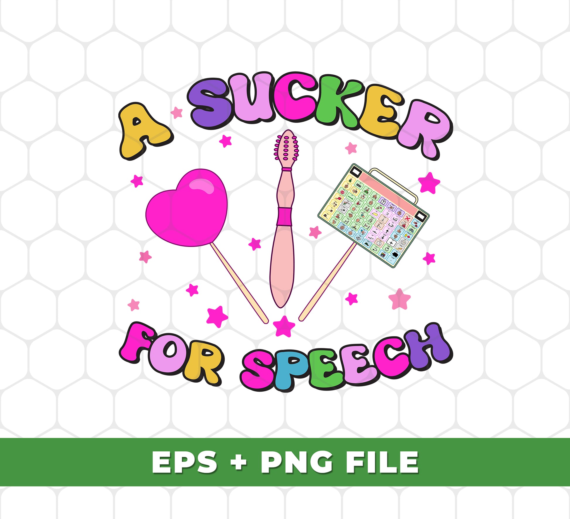 A Sucker For Speech offers a happy and effective speech therapy program through digital files in png sublimation. Improve your communication skills with expert guidance in a professional and objective tone. Perfect for all ages.