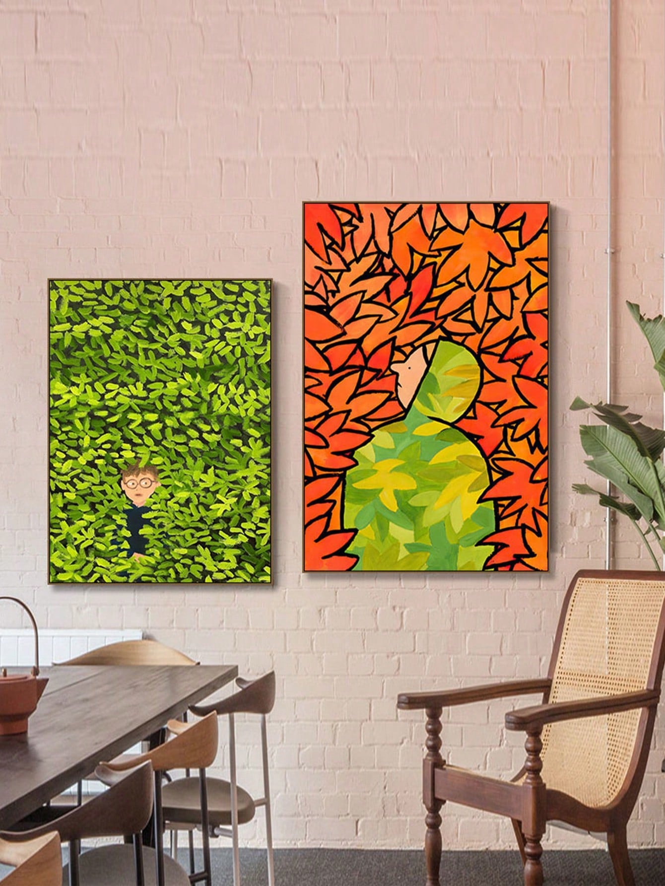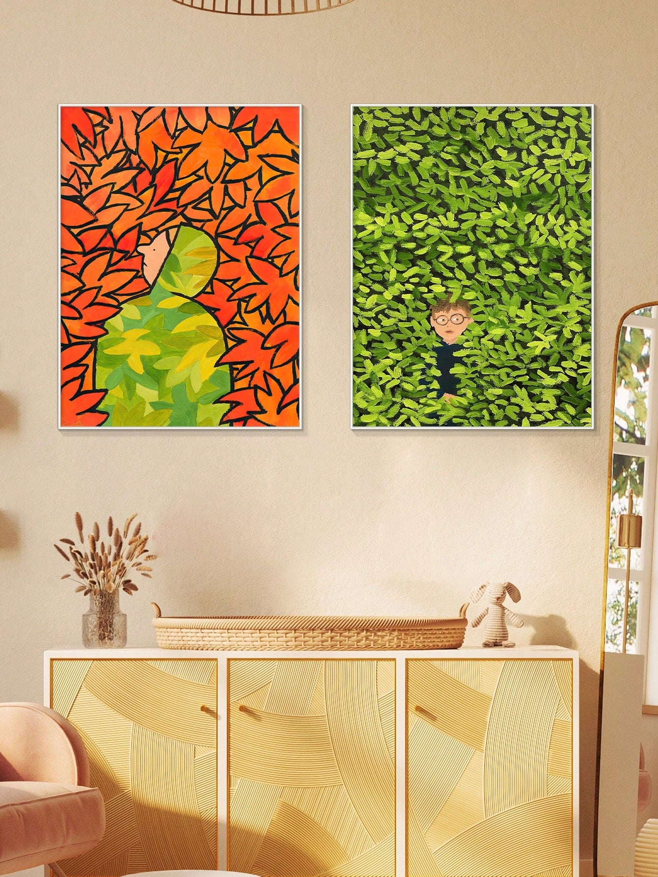 Abstract Healing Green Wall Art Set - Creative Bedroom Decor