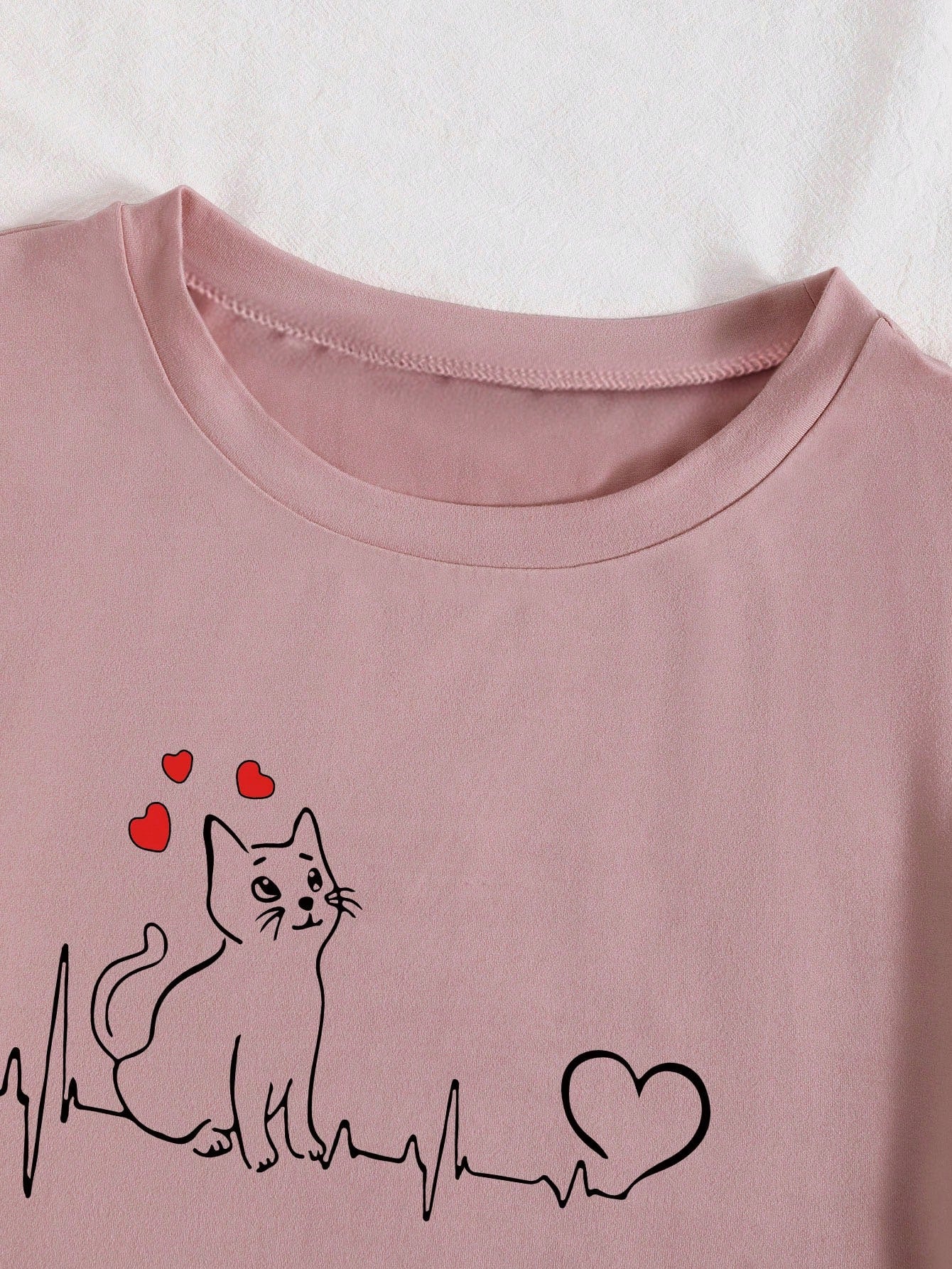 Adorable Heart Cat Graphic Tee: Perfect for Valentine's Day & Everyday Casual Wear