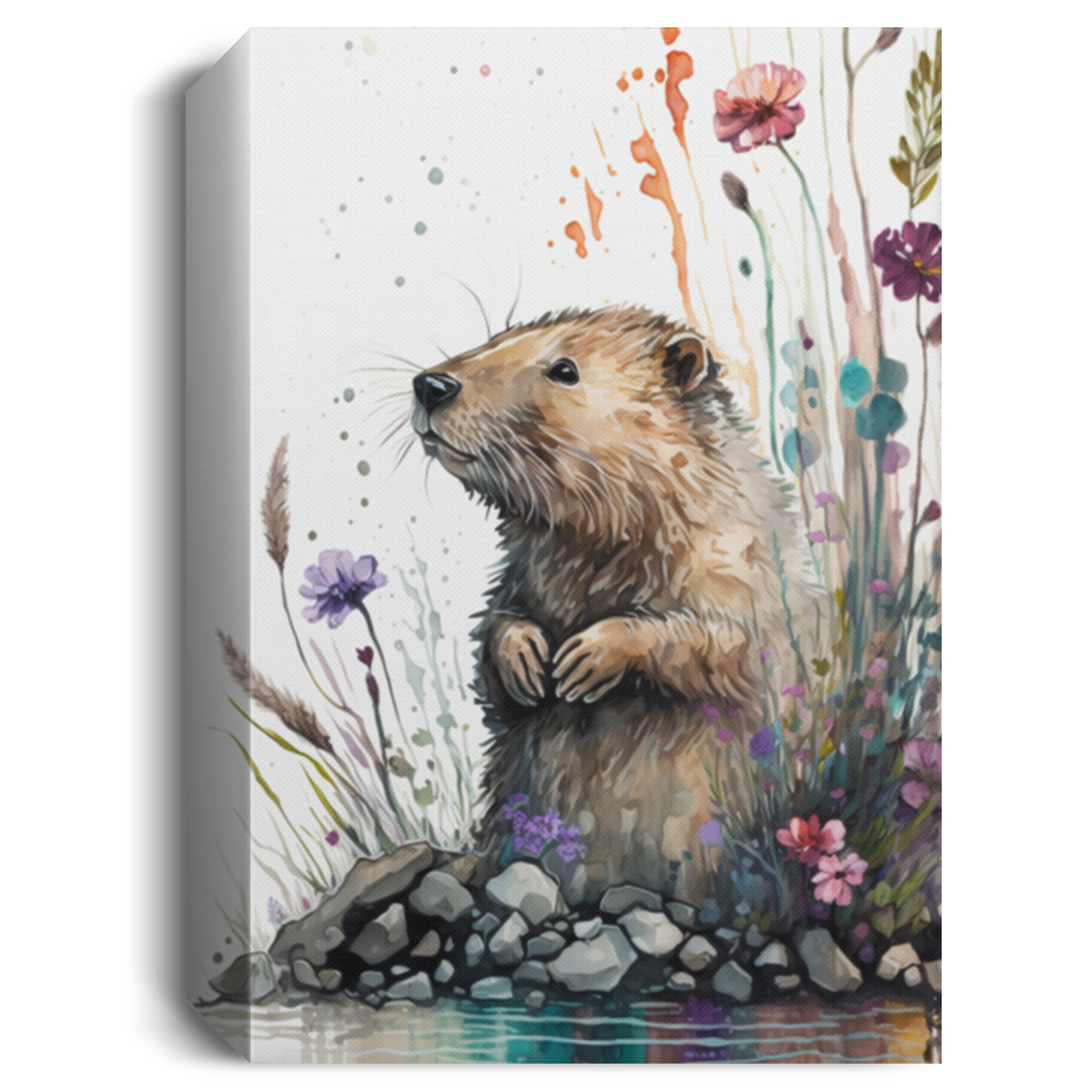 An Addorable Baby Beaver, Beaver Lover Art, Watercolor Bear Canvas