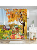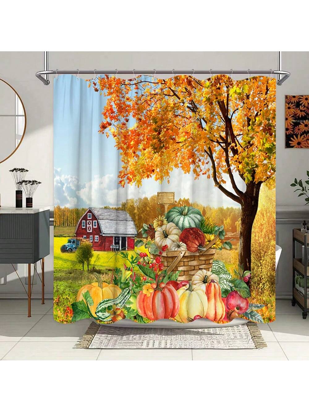Autumn Harvest Shower Curtain: Rustic Pumpkin & Sunflower Farmhouse Decor