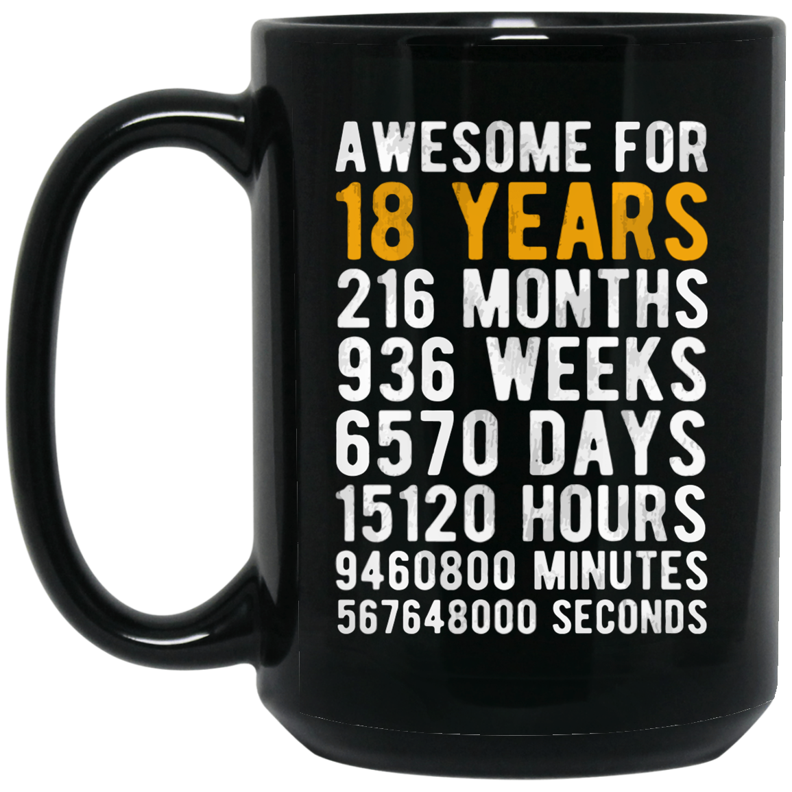 Awesome For 18 Years, 18th Birthday Gift Best Gift Idea For 18 Black Mug