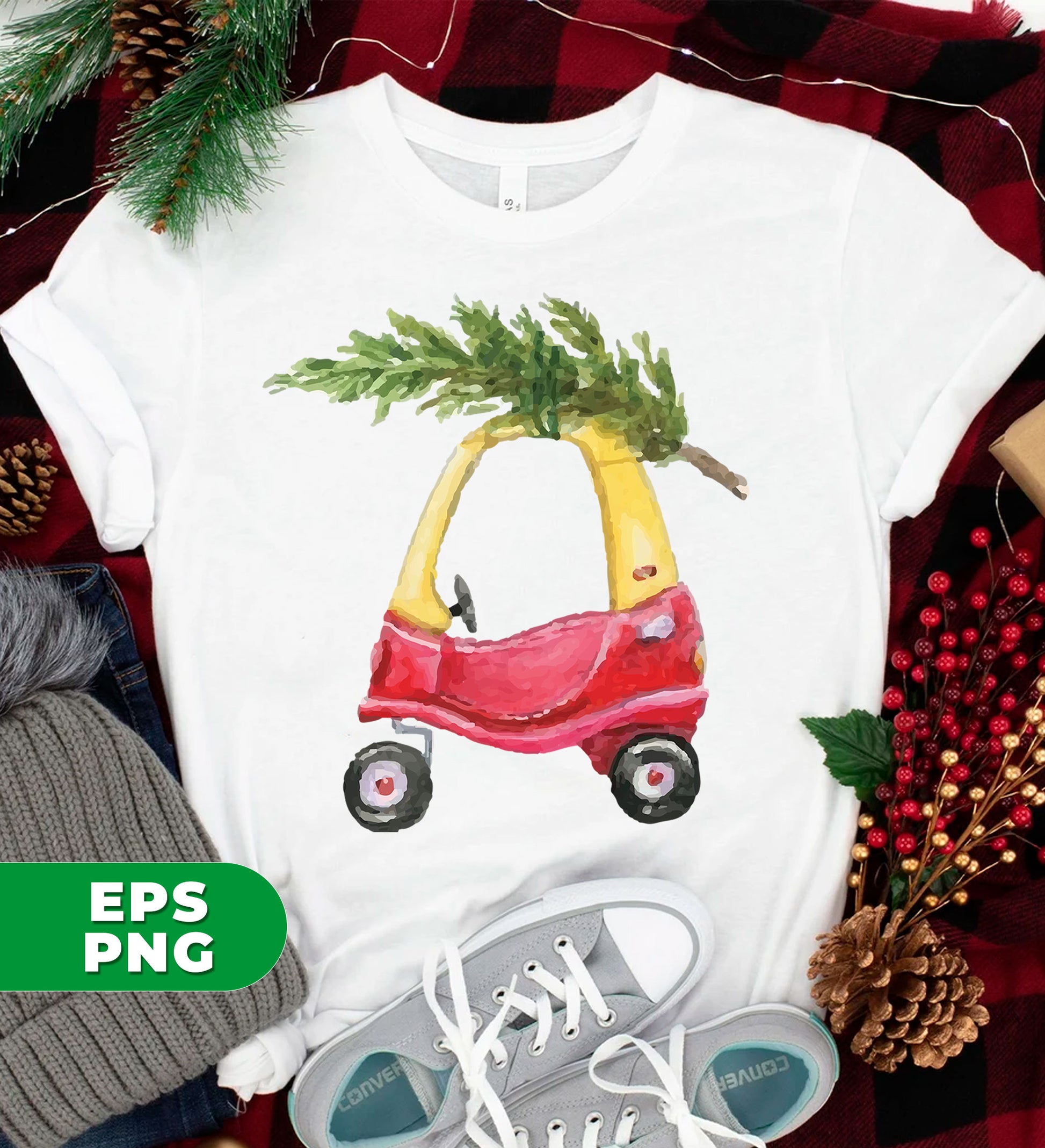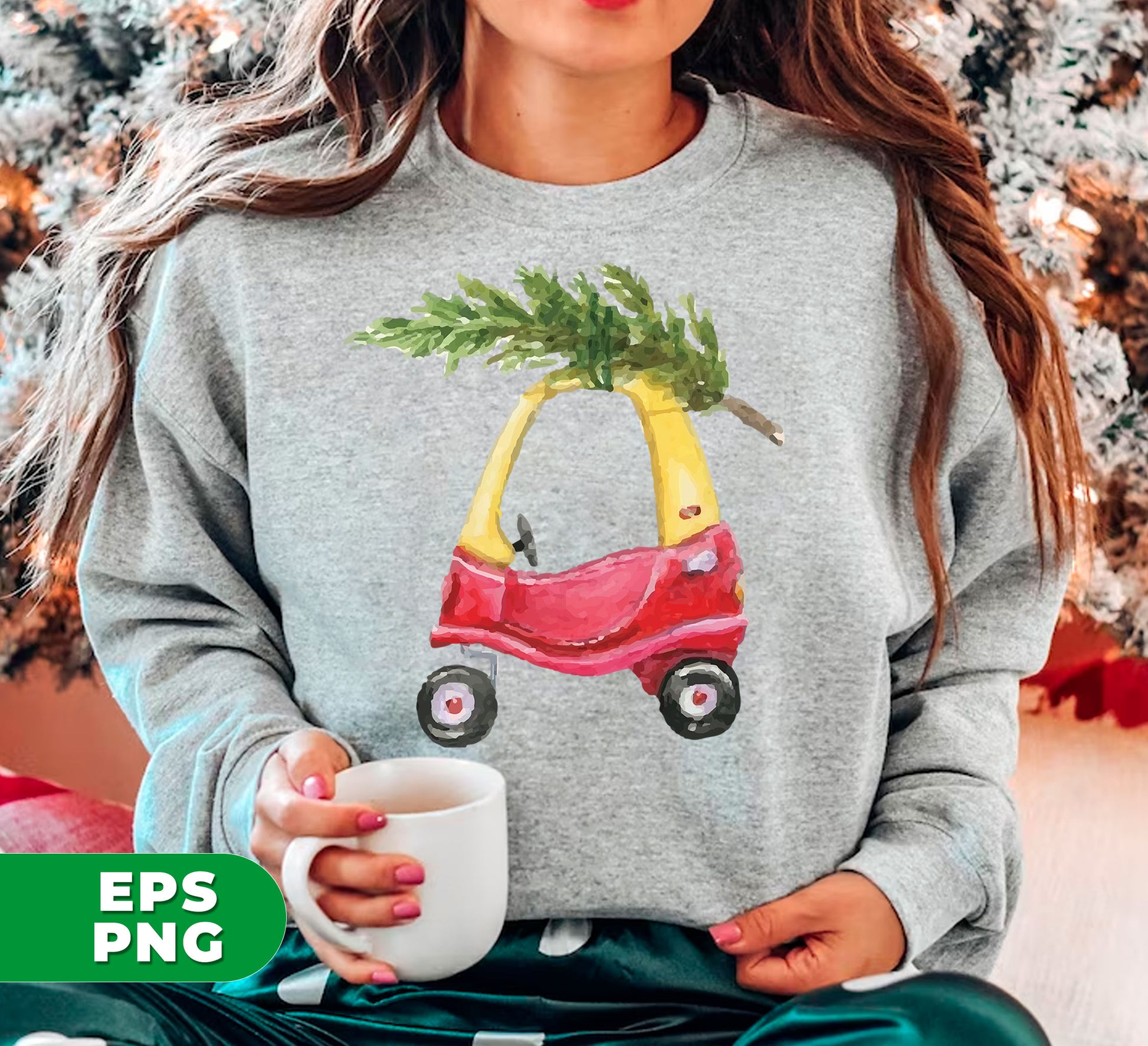 Baby Car Watercolor, Car Bring Xmas Tree, Cute Xmas Car, Digital Files, Png Sublimation