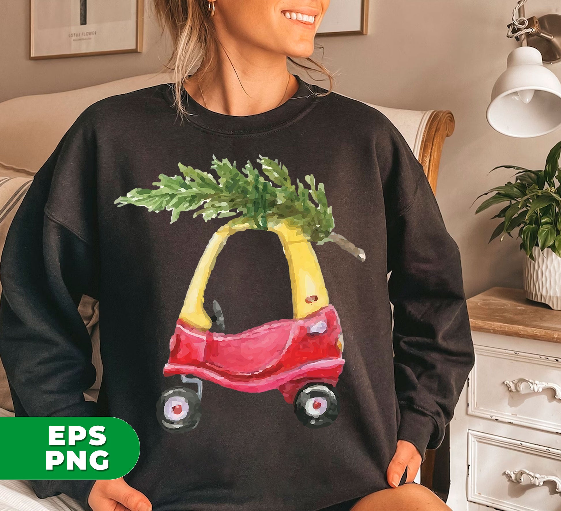Elevate your holiday projects with these charming digital watercolor images. Featuring a cute baby car carrying a Christmas tree, these PNG sublimation files are perfect for adding a festive touch to your designs. With high-quality resolution and versatile formats, these files will bring your Christmas creations to life.