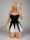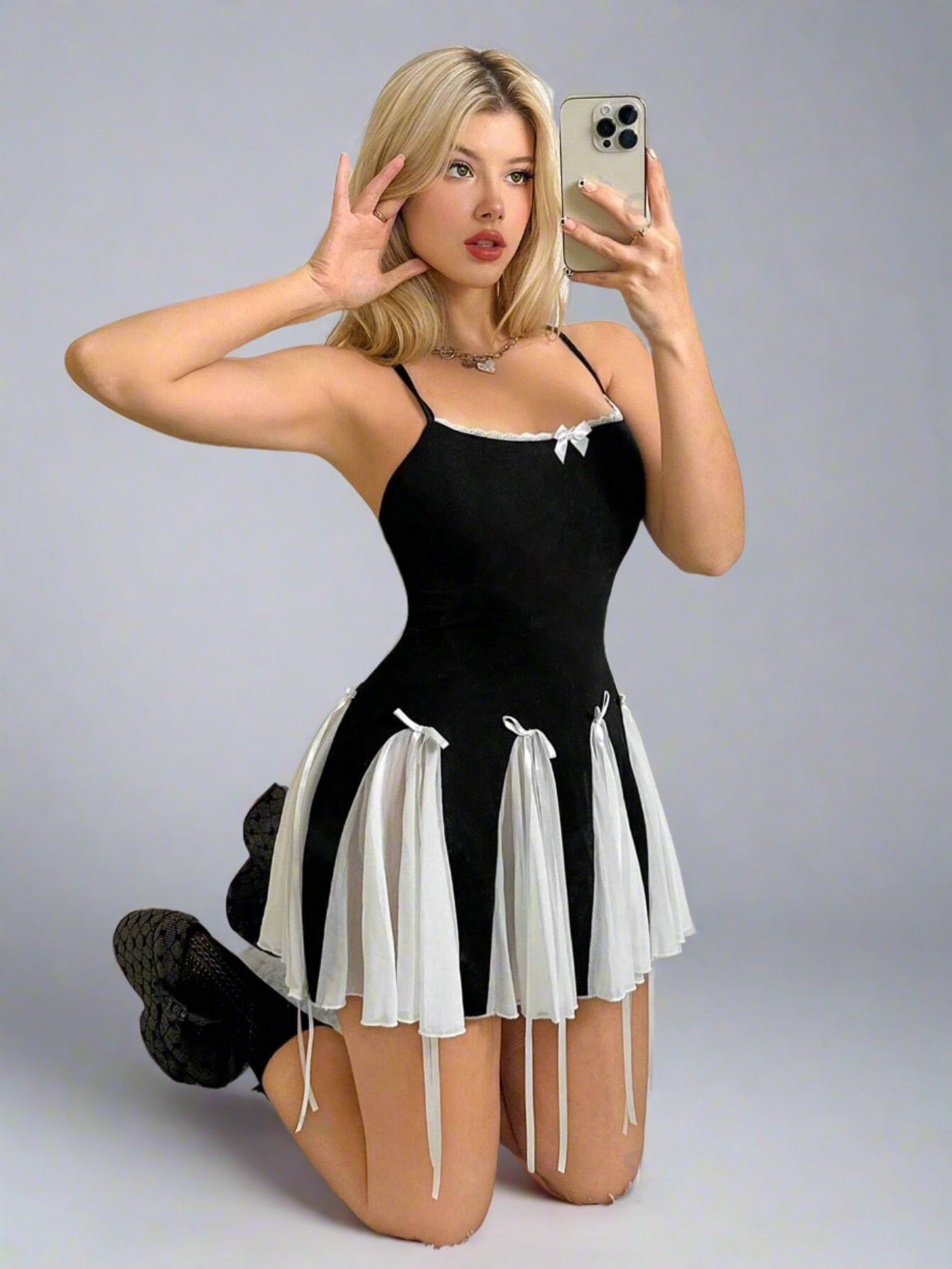Back to School Chic: Homecoming Dress with Black Skirt and Lace Bowknot