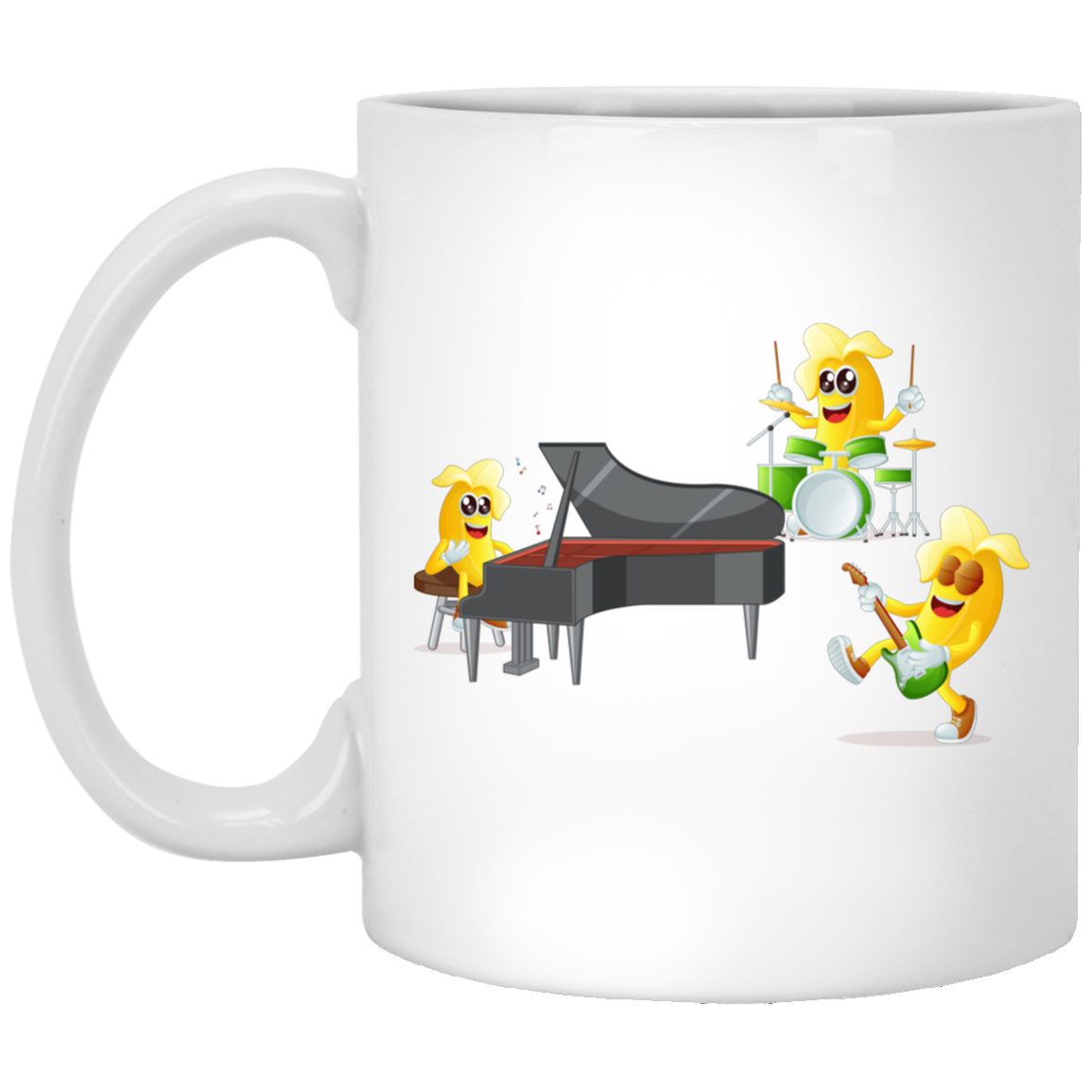 Banana Band, Banana Music Band, Banana Drum, Banana Guitarist, Banana Piano White Mug