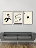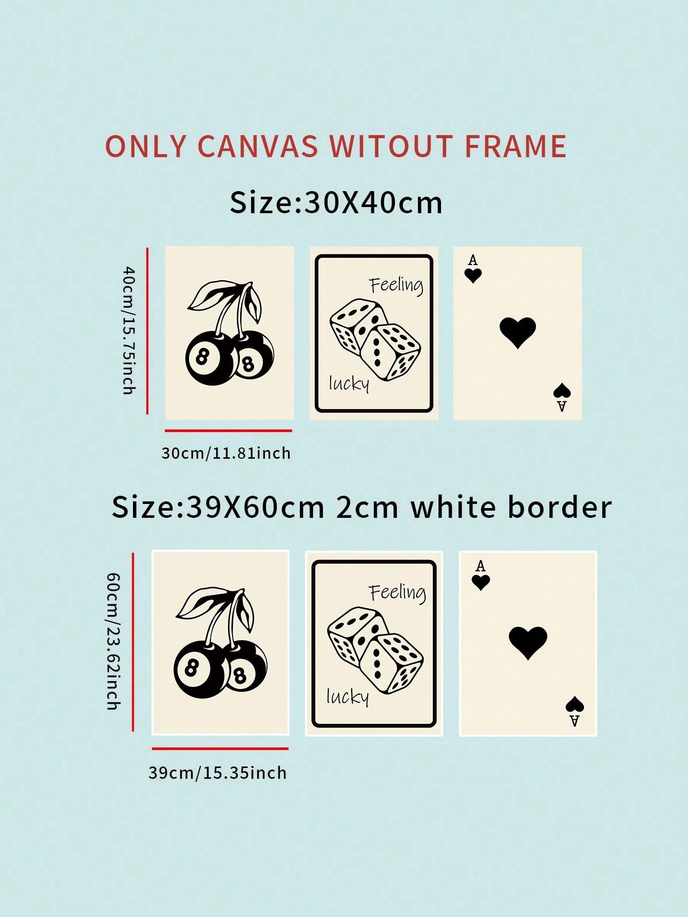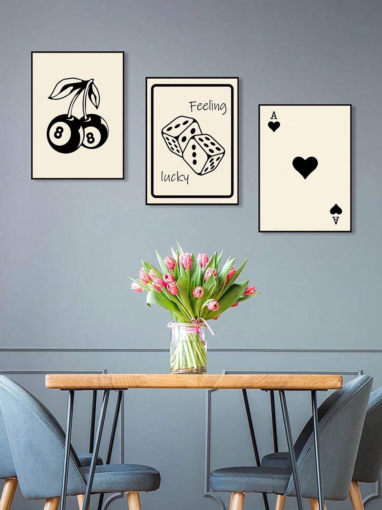Black and White Dice Hearts Cherry Posters: Set of 3 Art Prints on Waterproof Canvas for Living Room Bedroom Wall Decoration