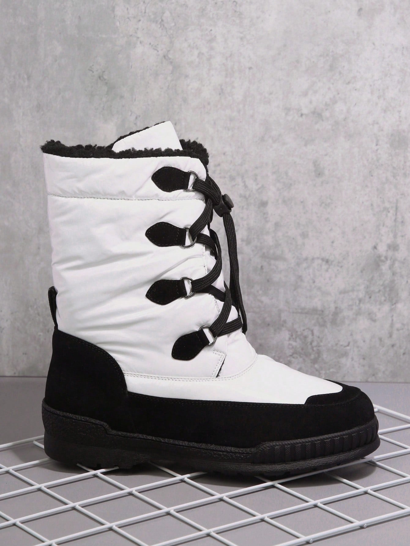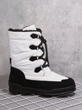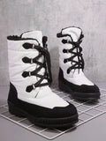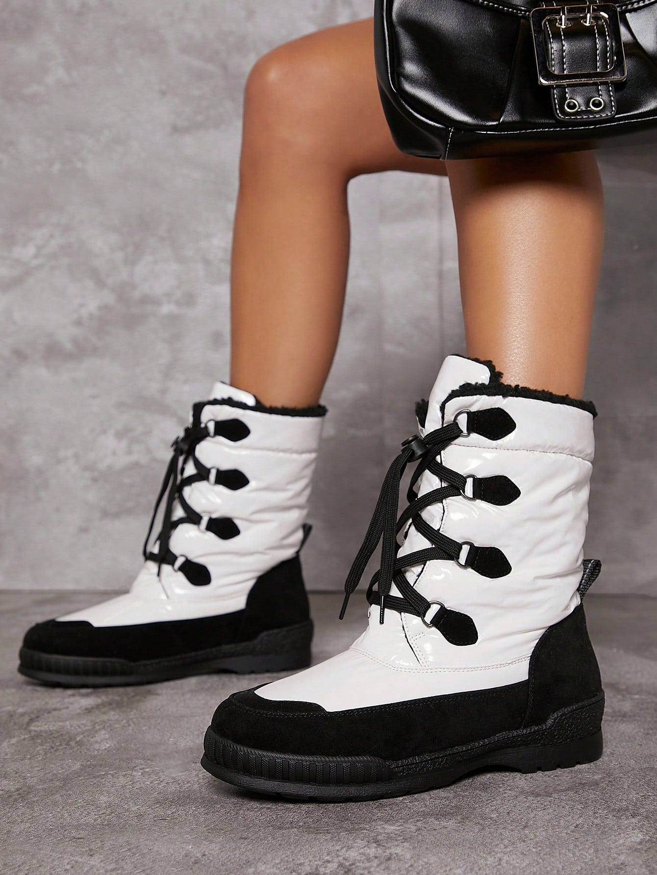 Black and White Faux Leather Lace-Up Lug Sole Boots: Stylish and Sturdy Footwear for Any Occasion