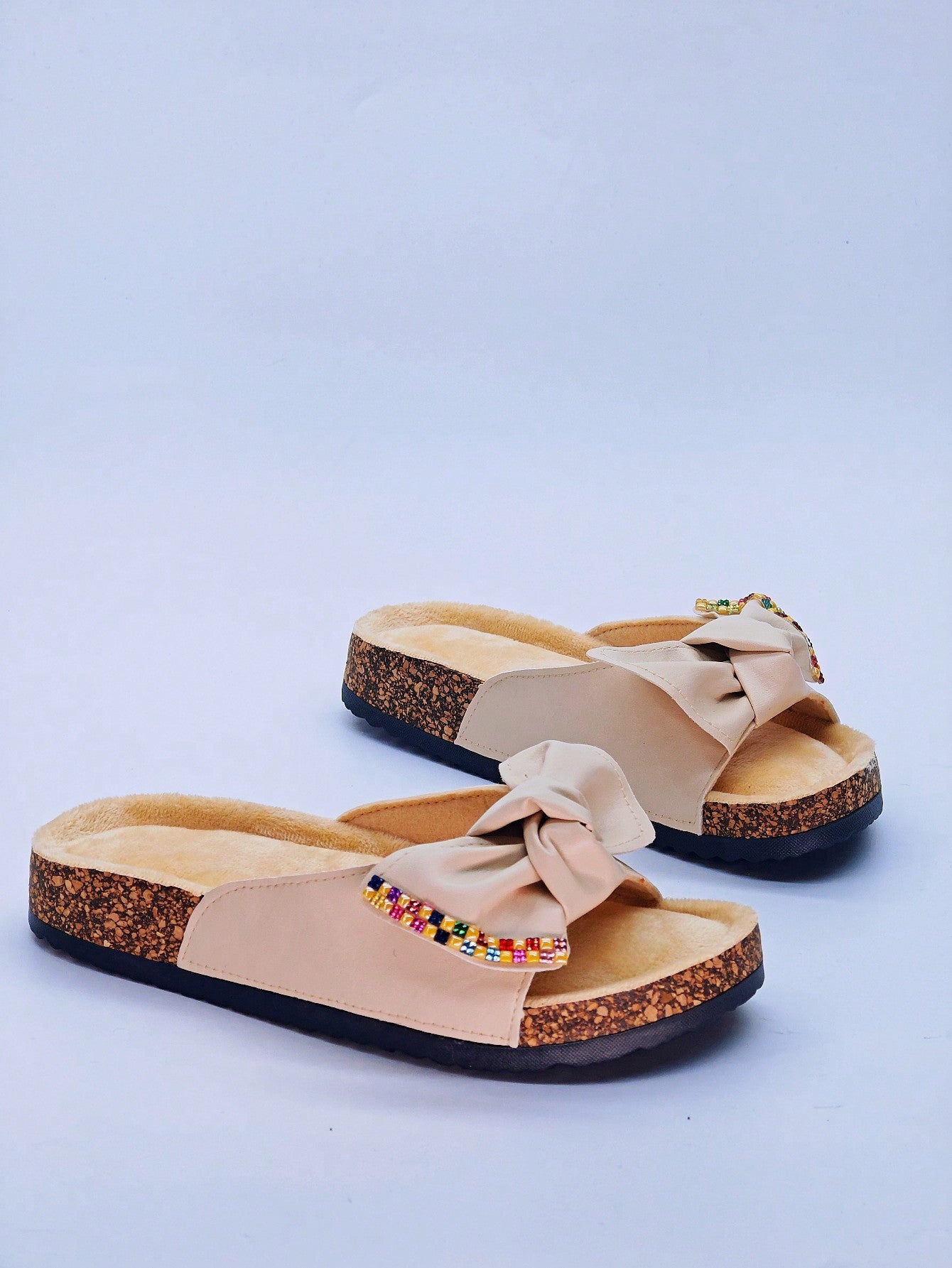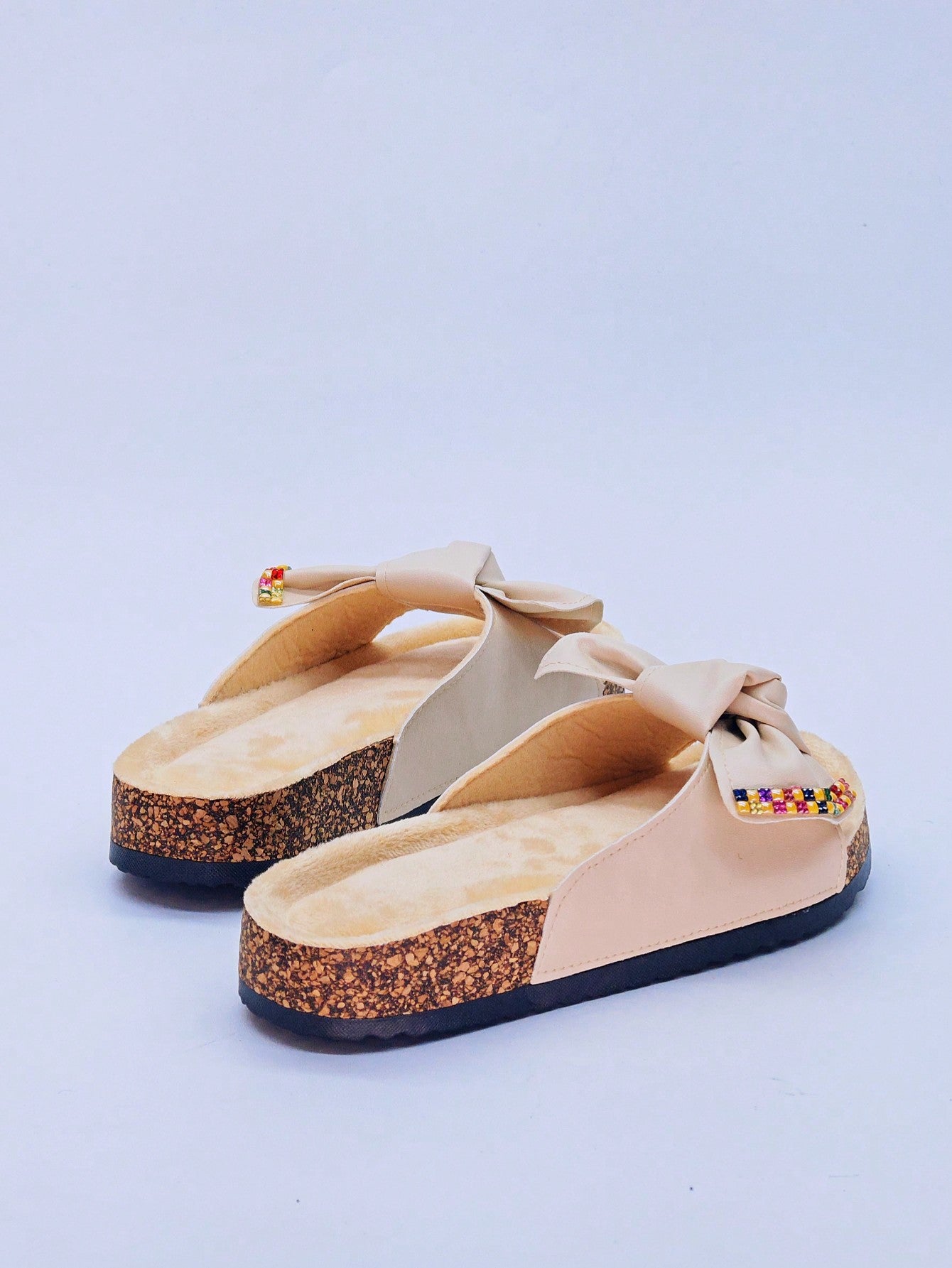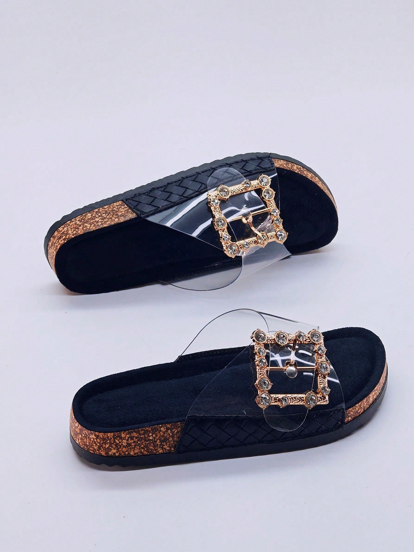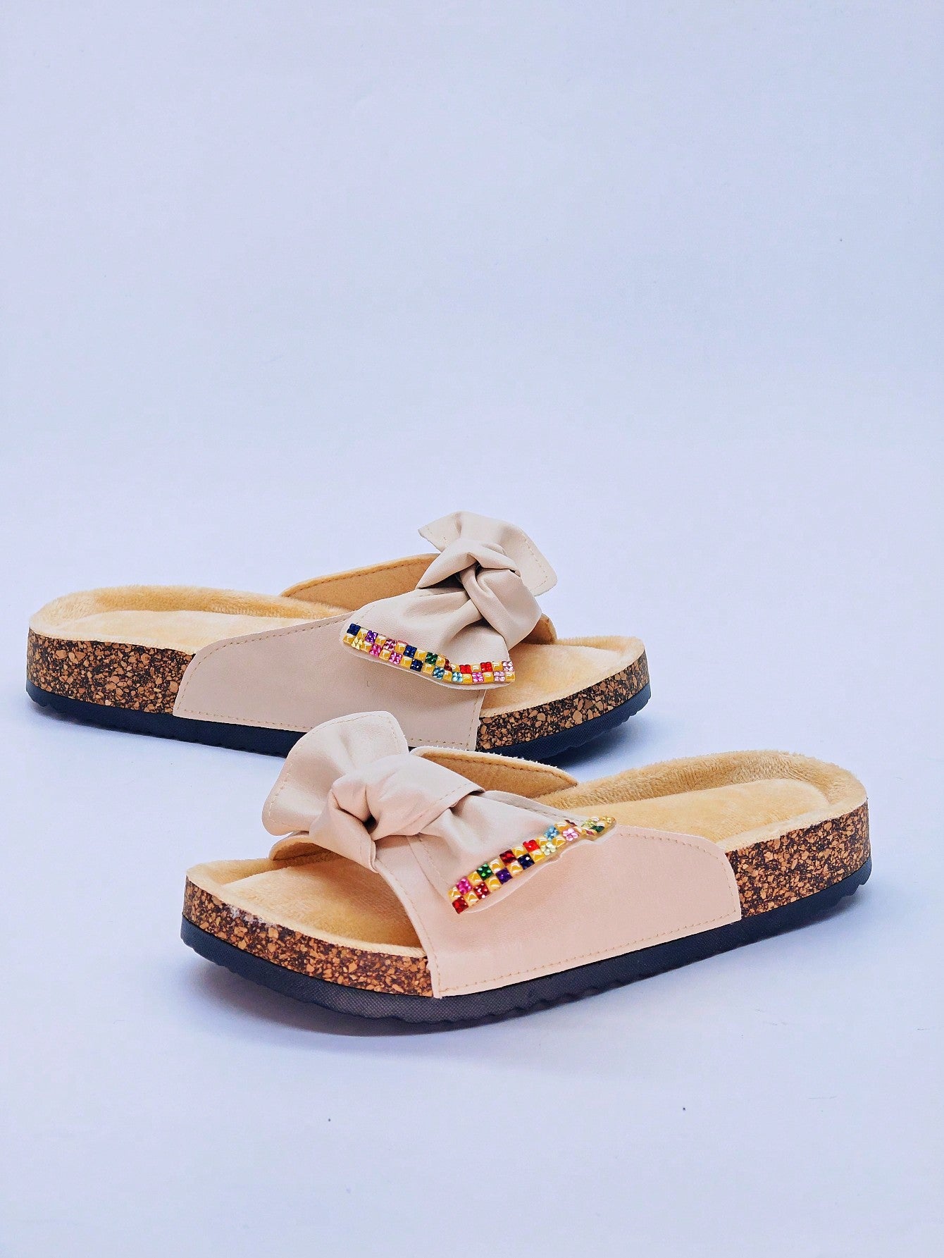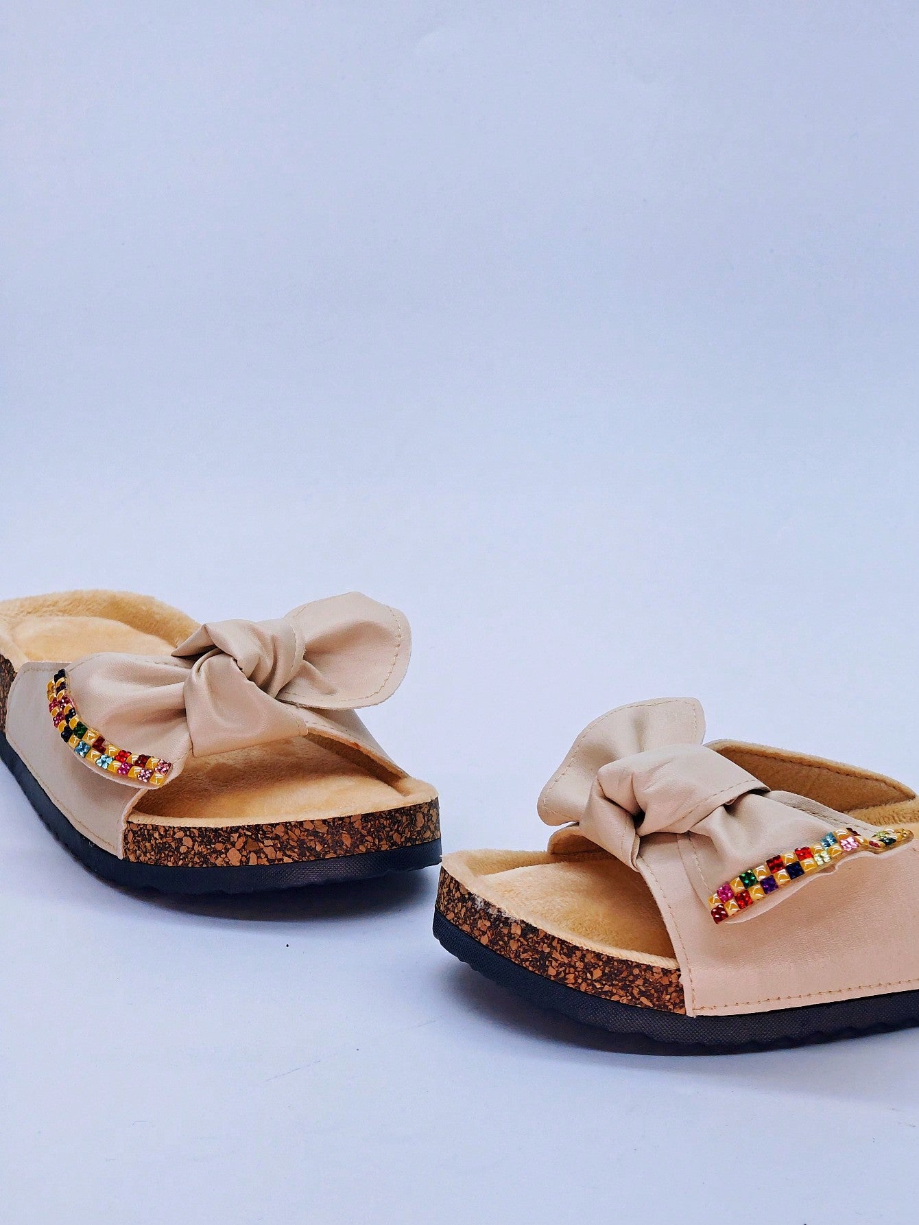 Black Bow Knot Diamond Studded Slide Sandals: Trendy Flats for Beach Vacation