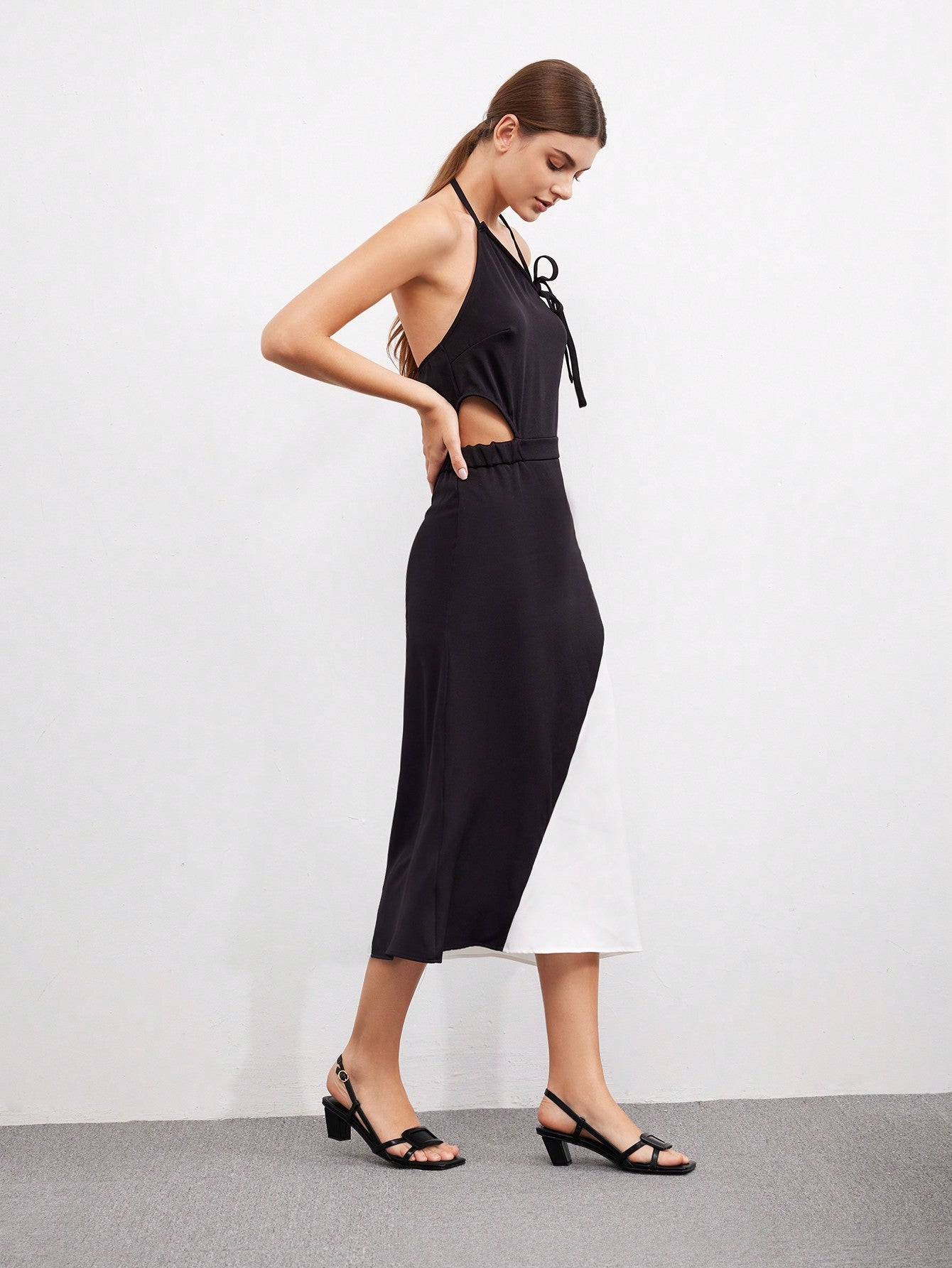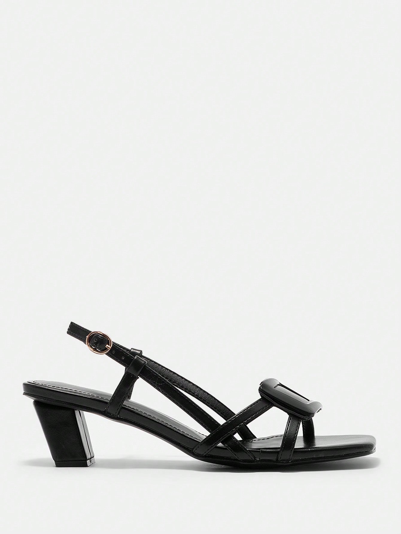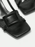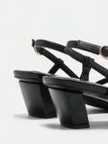 Black Color Contrasting Chunky Heel Sandals: Elegant Business Chic
