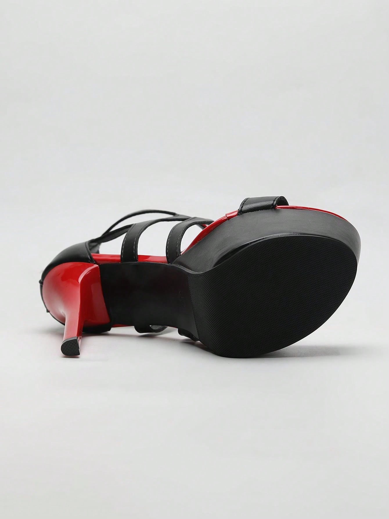 Black Evening Dress Sandals: Waterproof Platform High Heels with Cutout Design and Back Zipper Closure