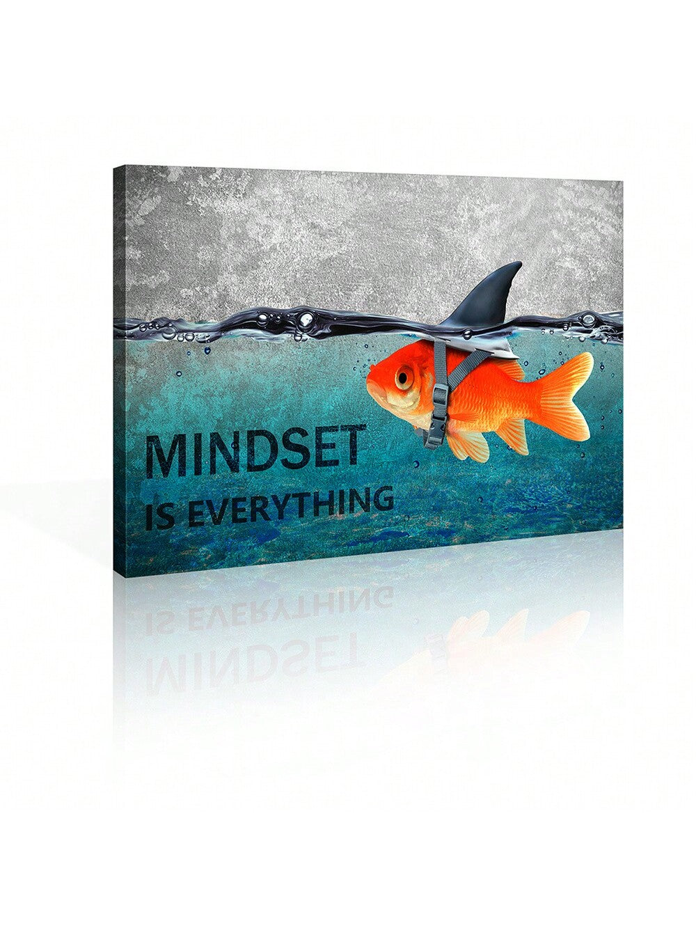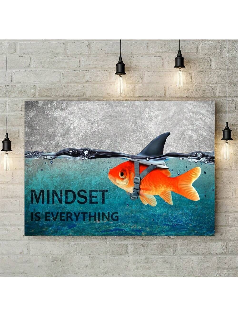 Blue and Goldfish Shark Canvas Wall Art: Inspiring Quotes for Home and Office Decor