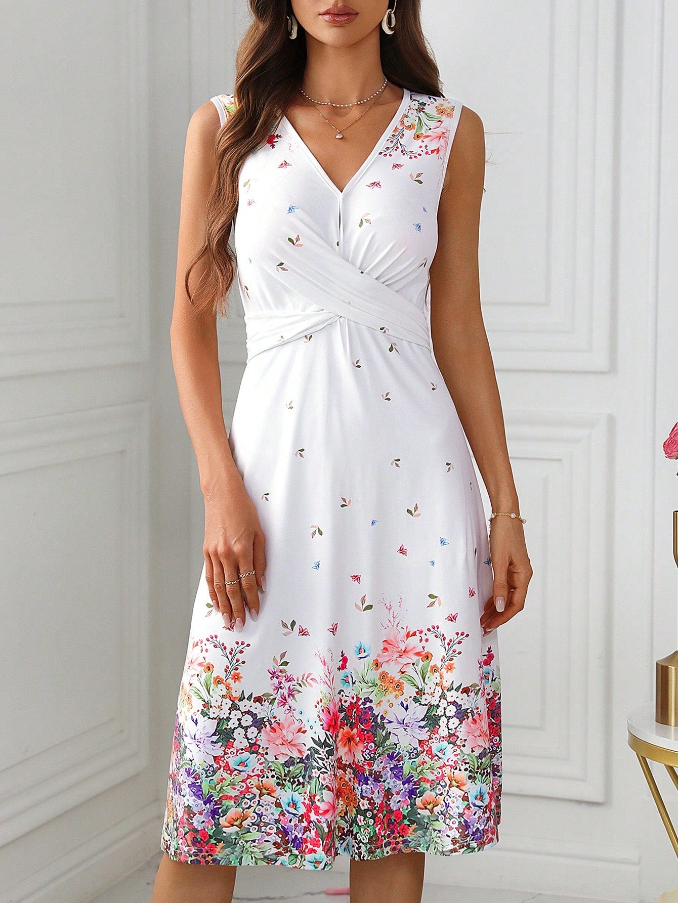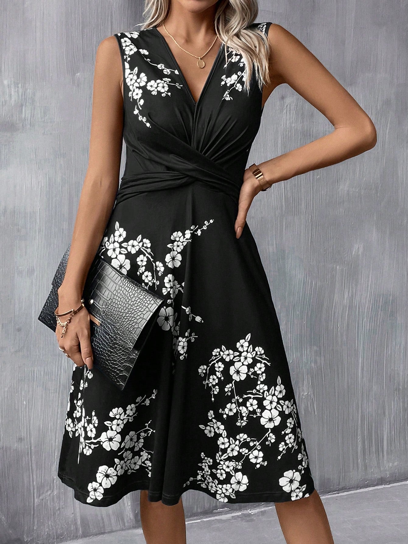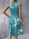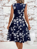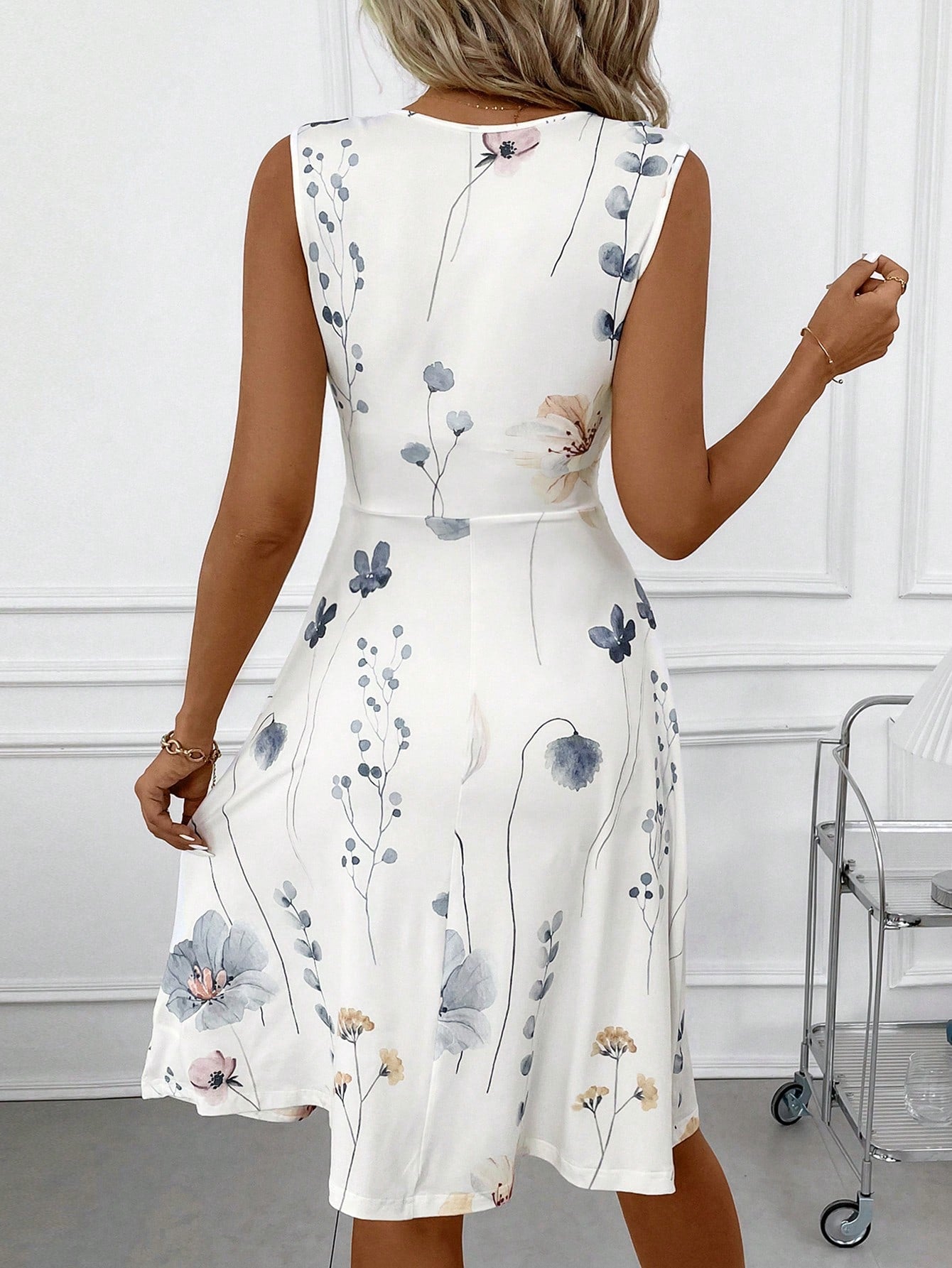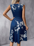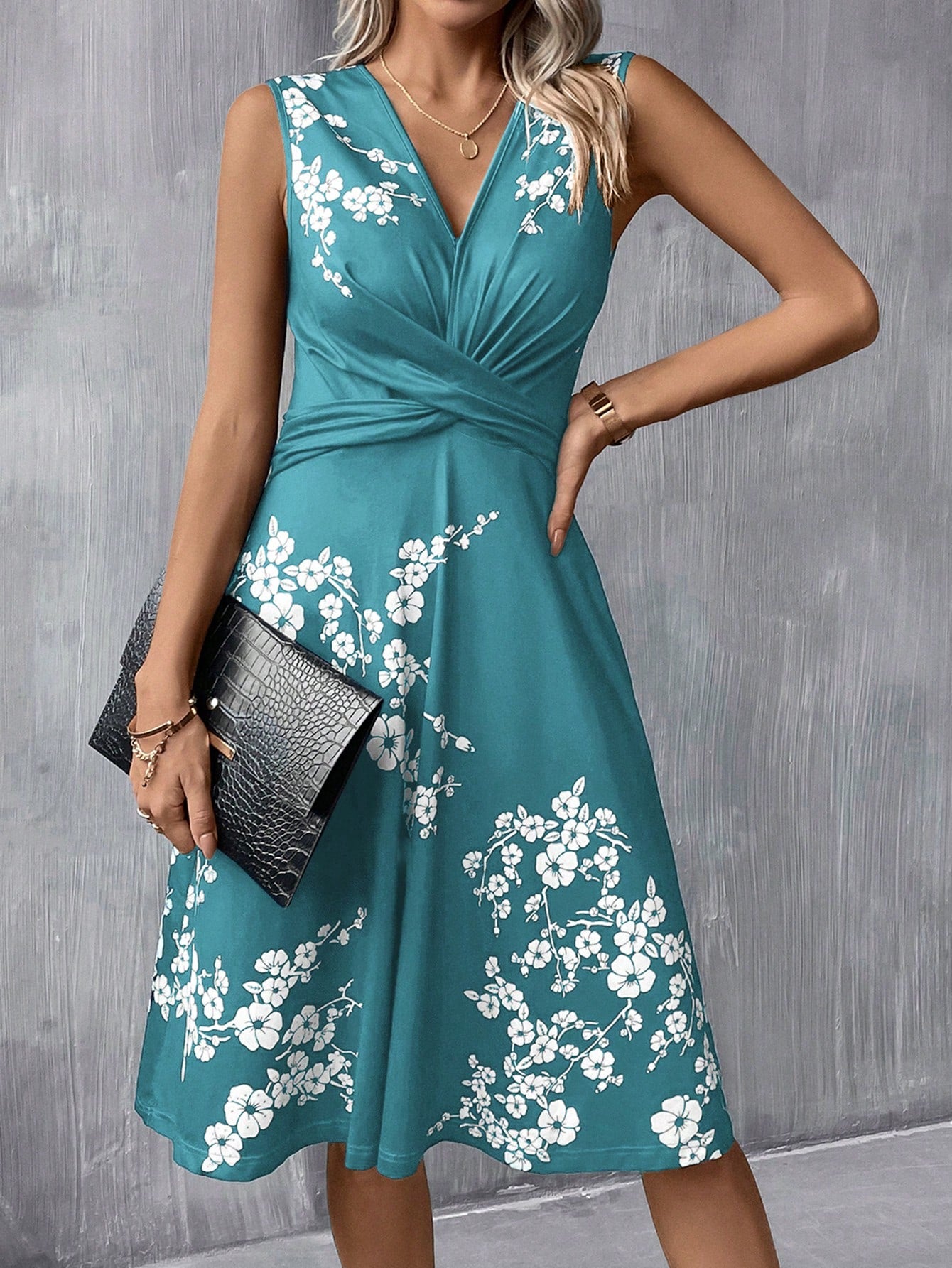 Blue Blossom: Simple Floral Print Twist Front A-Line Dress