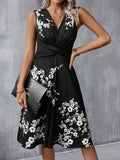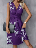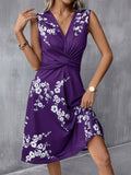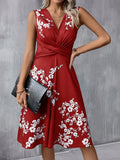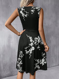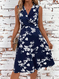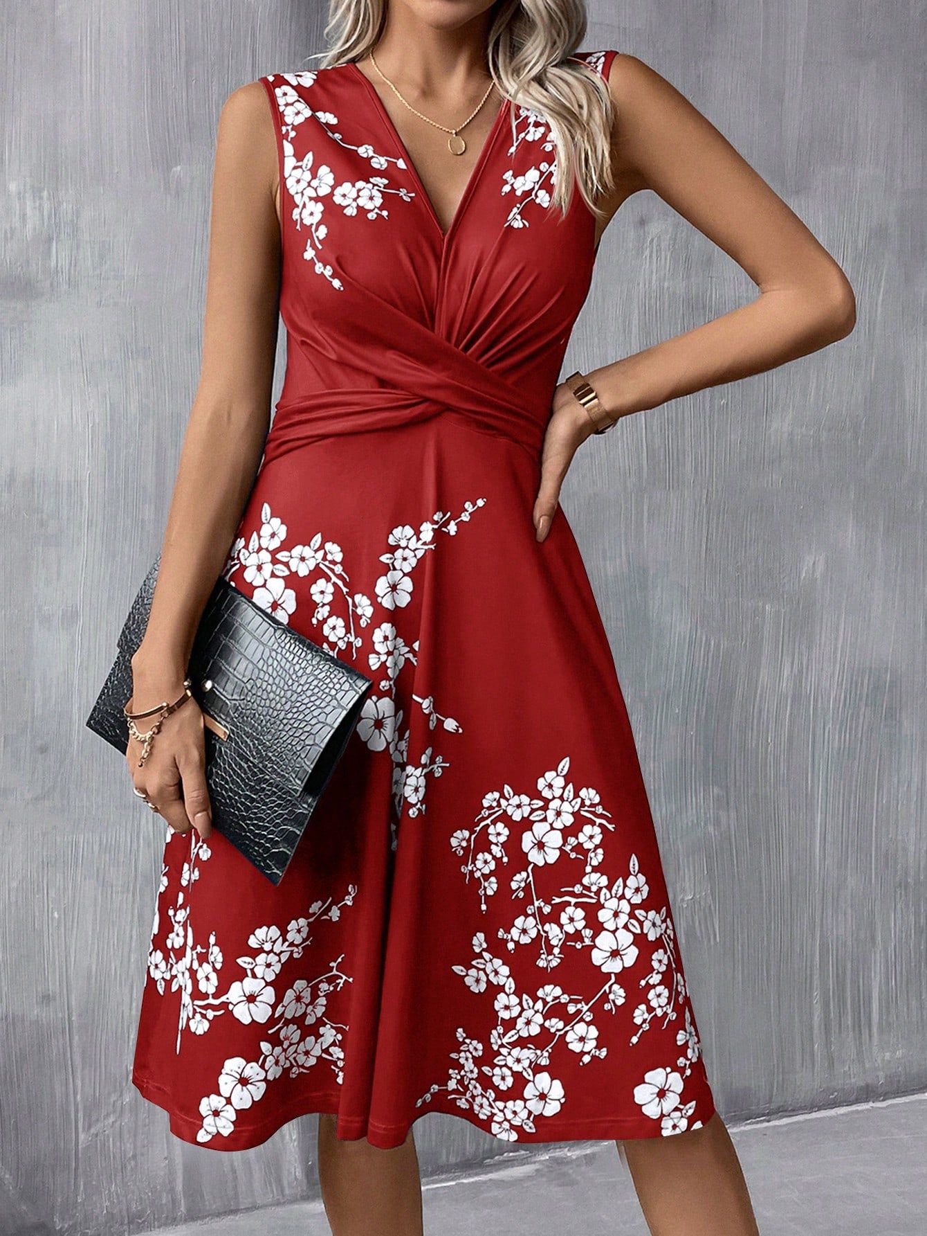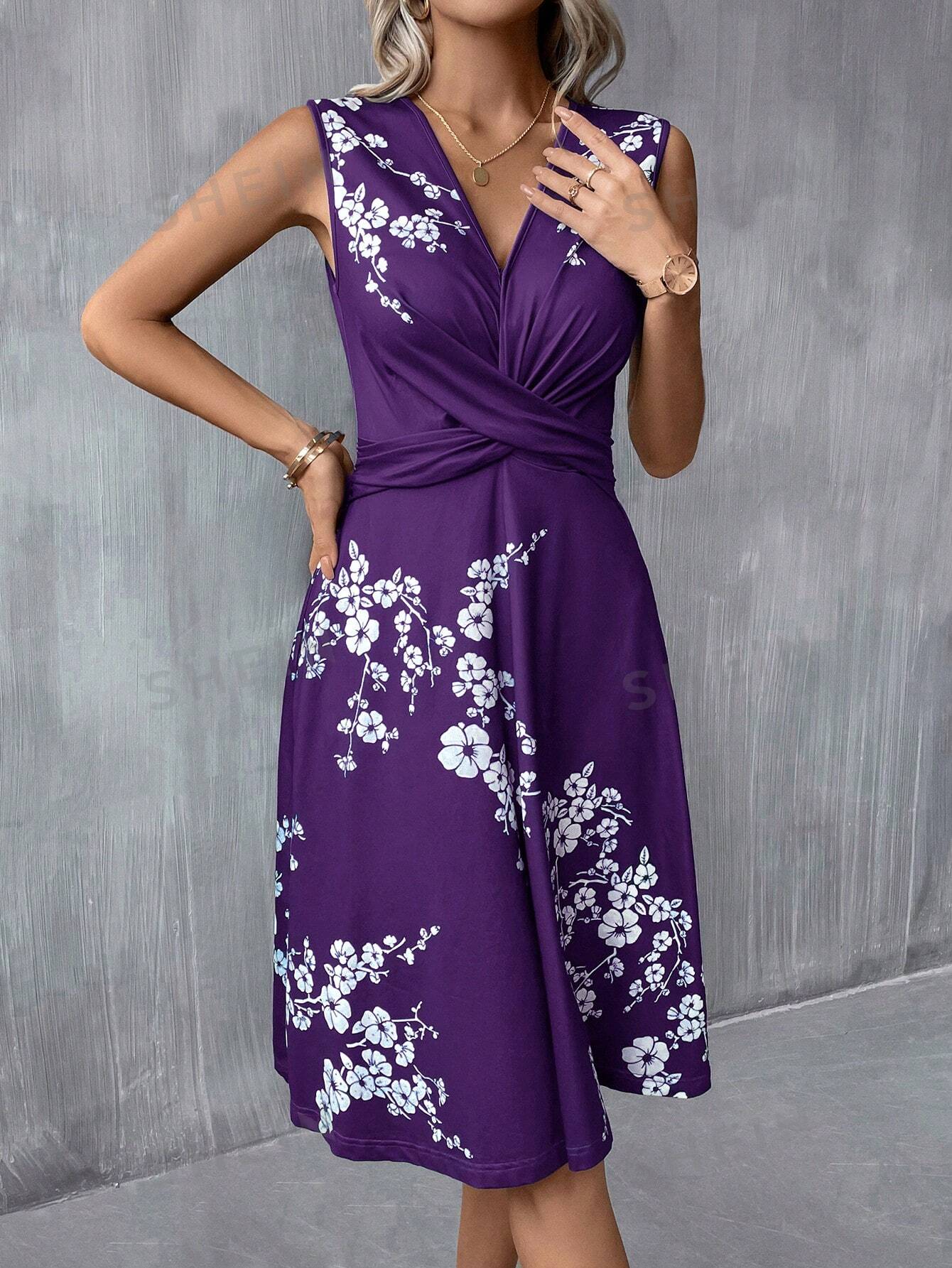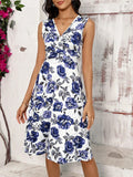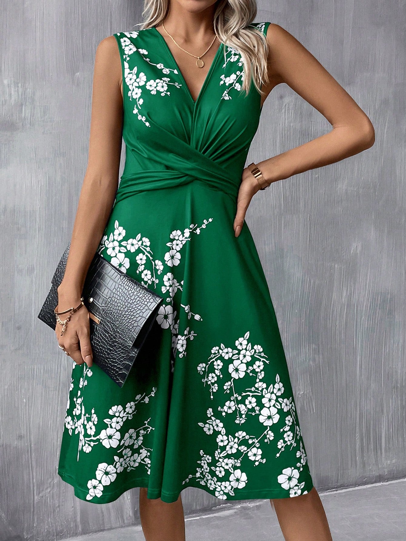 Blue Blossom: Simple Floral Print Twist Front A-Line Dress