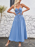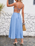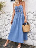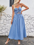 Blue Denim Beauty: Sexy Vacation Dress with Tie Detail for Women