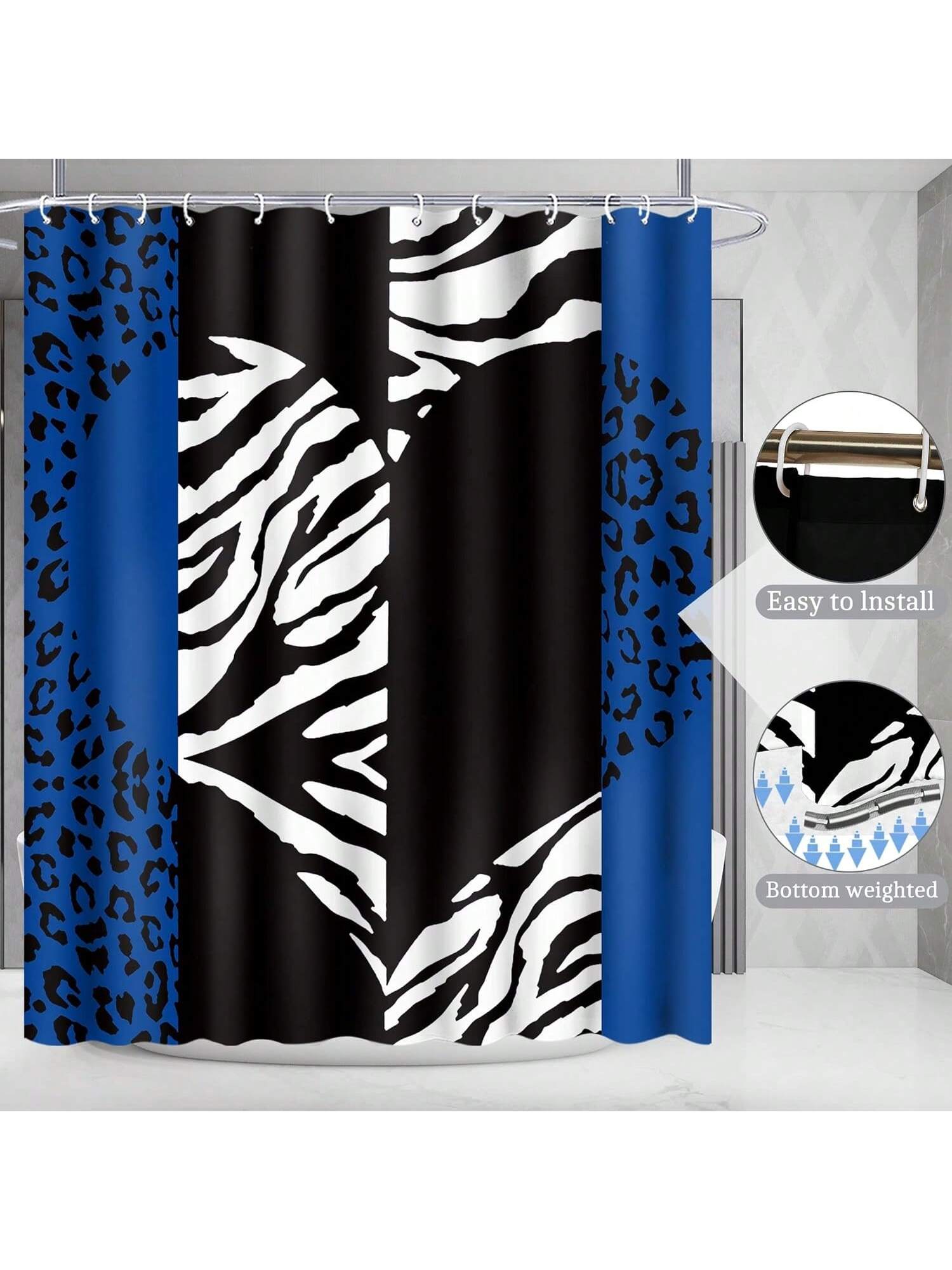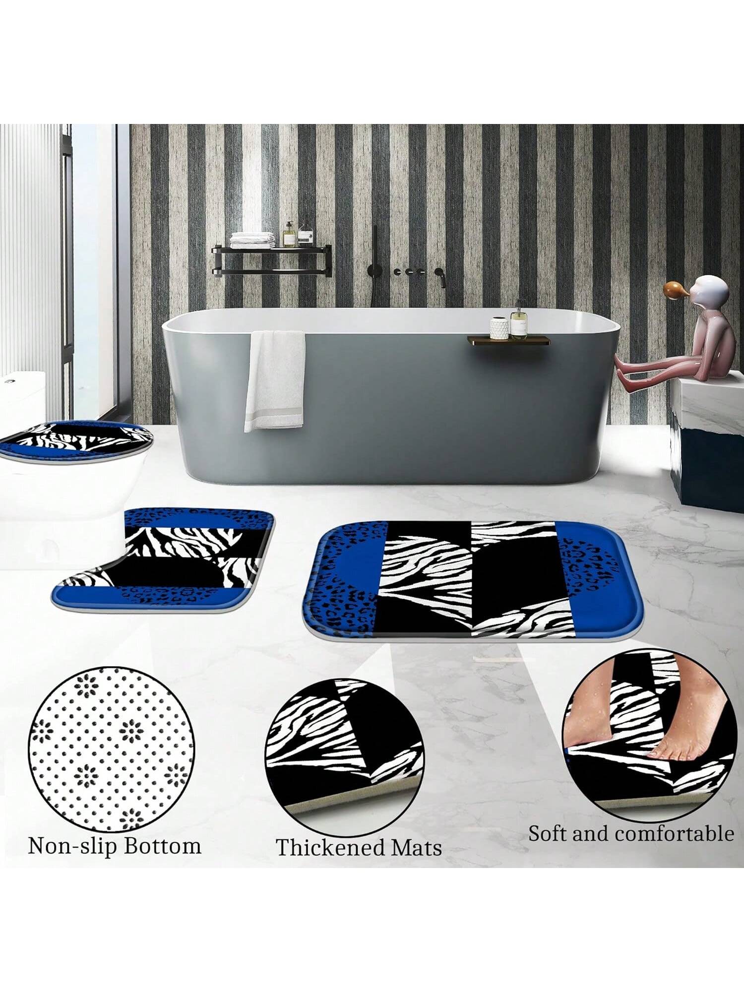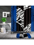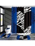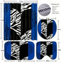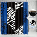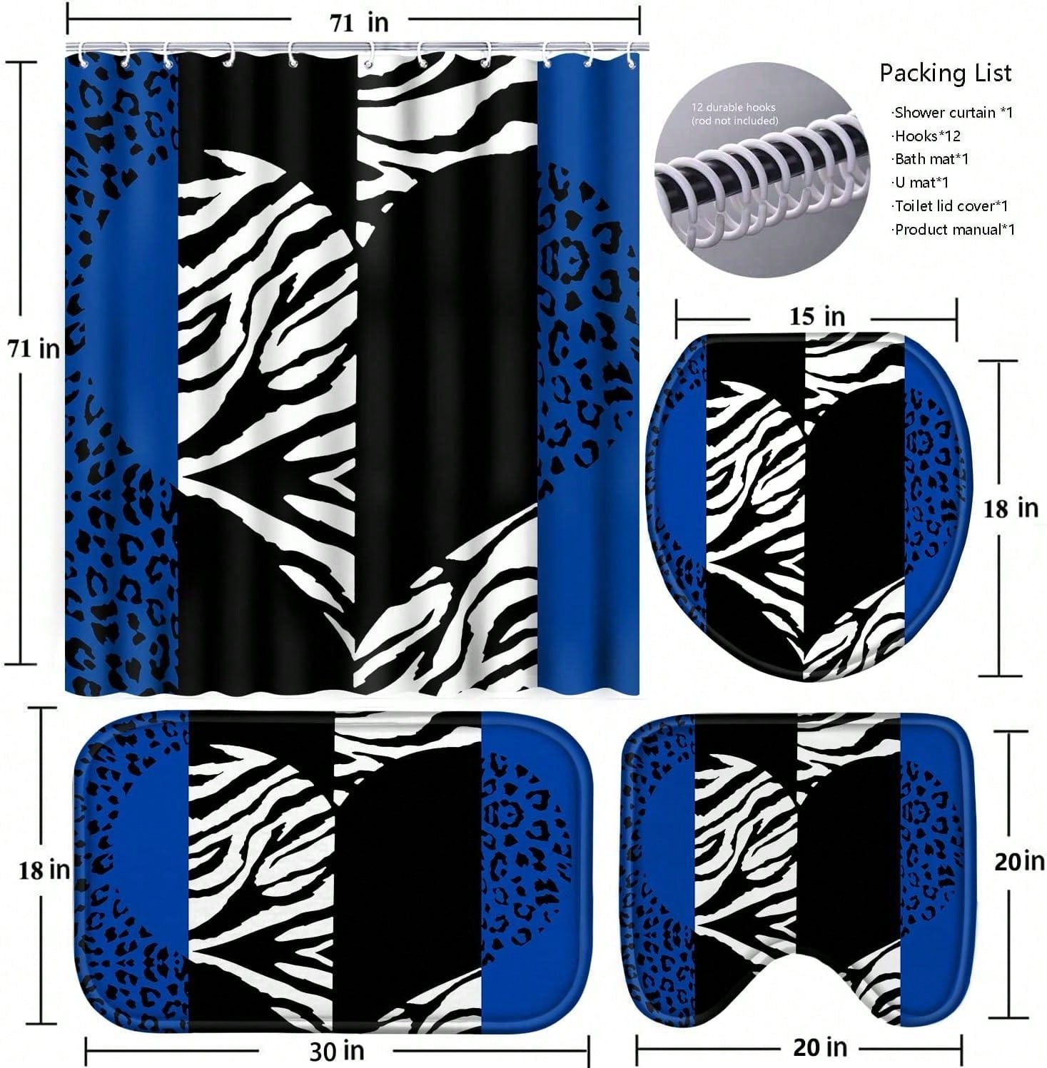 Blue Rose and Leopard Bathroom Set: Bright Style Shower Curtain Sets with Rugs, Bath Mat, U-Shape, and Toilet Lid Cover Mat