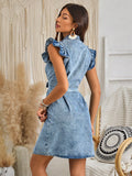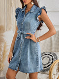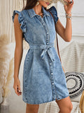 Blue Shirt Style Ruffle Dress: Perfect for Back to School and Beyond