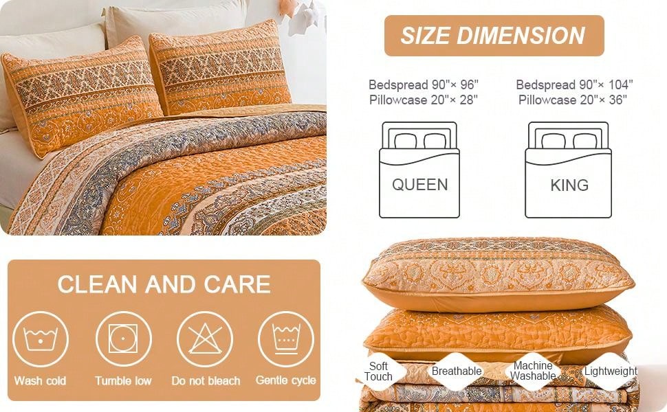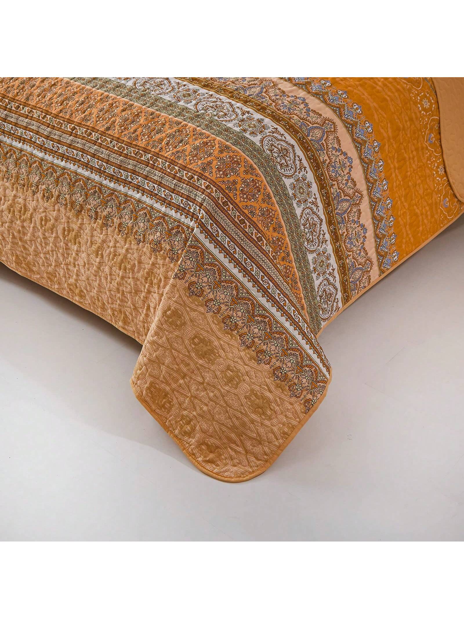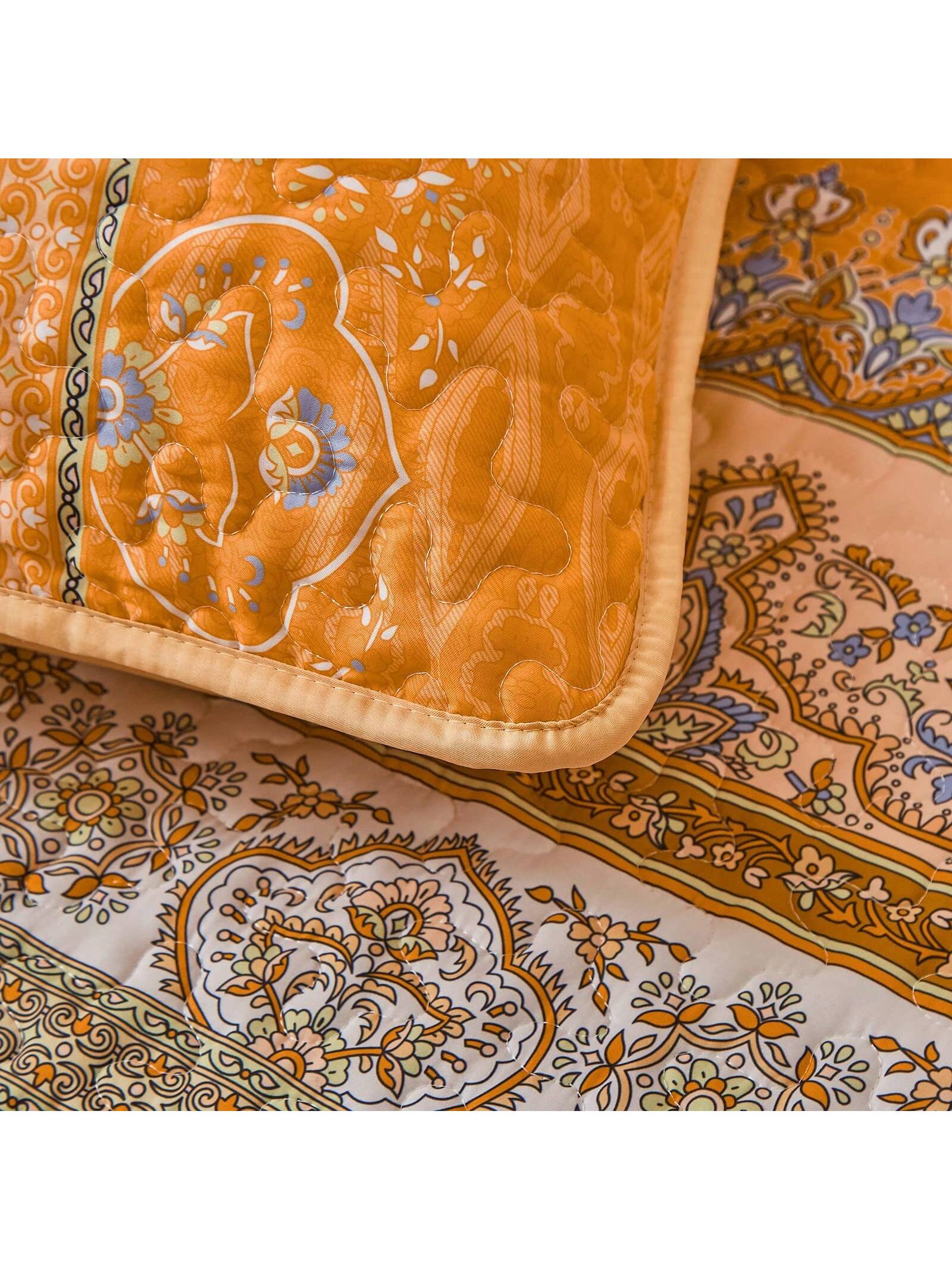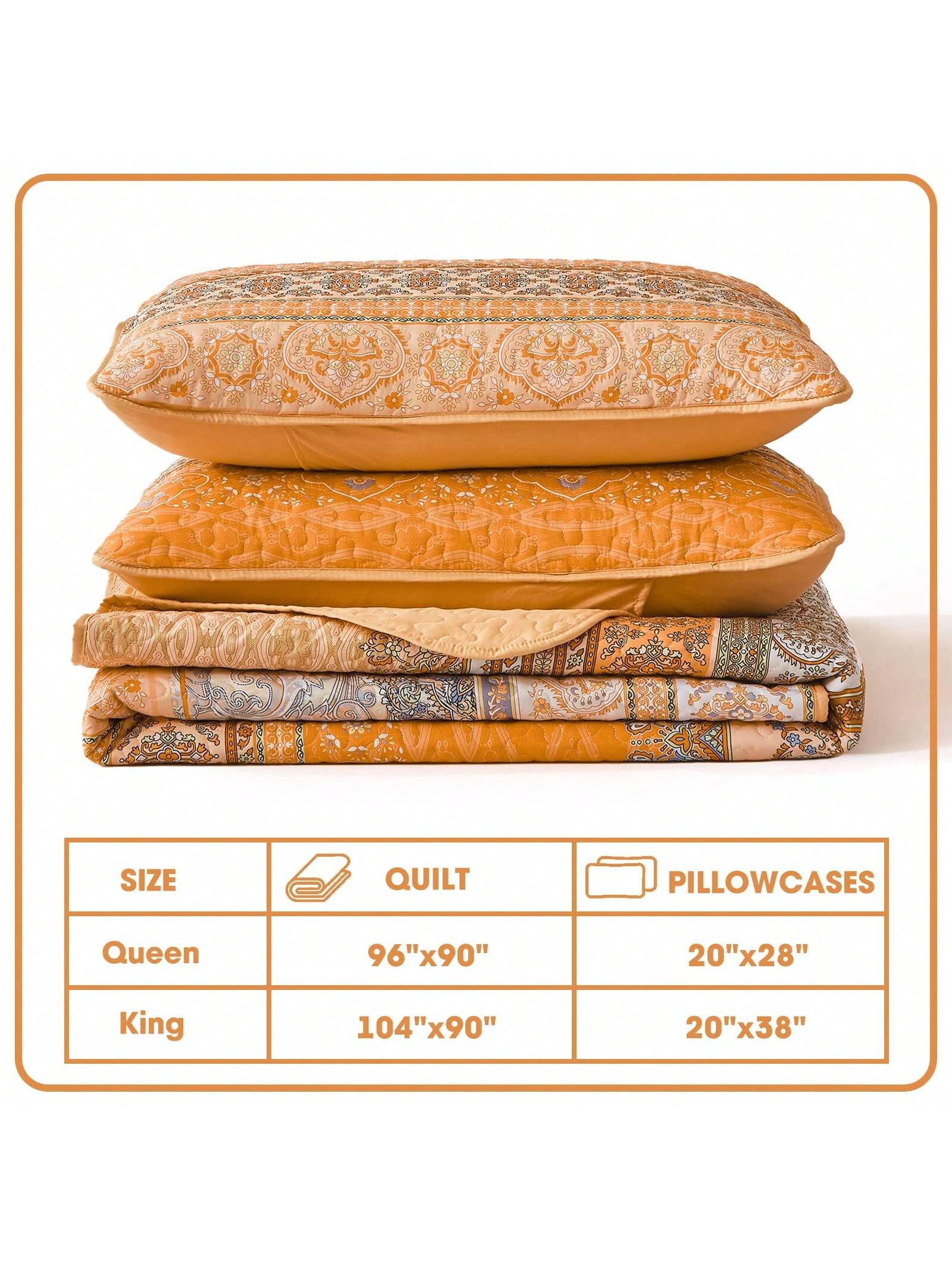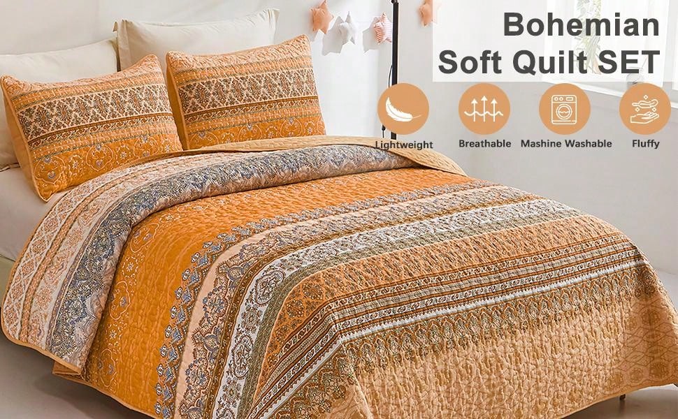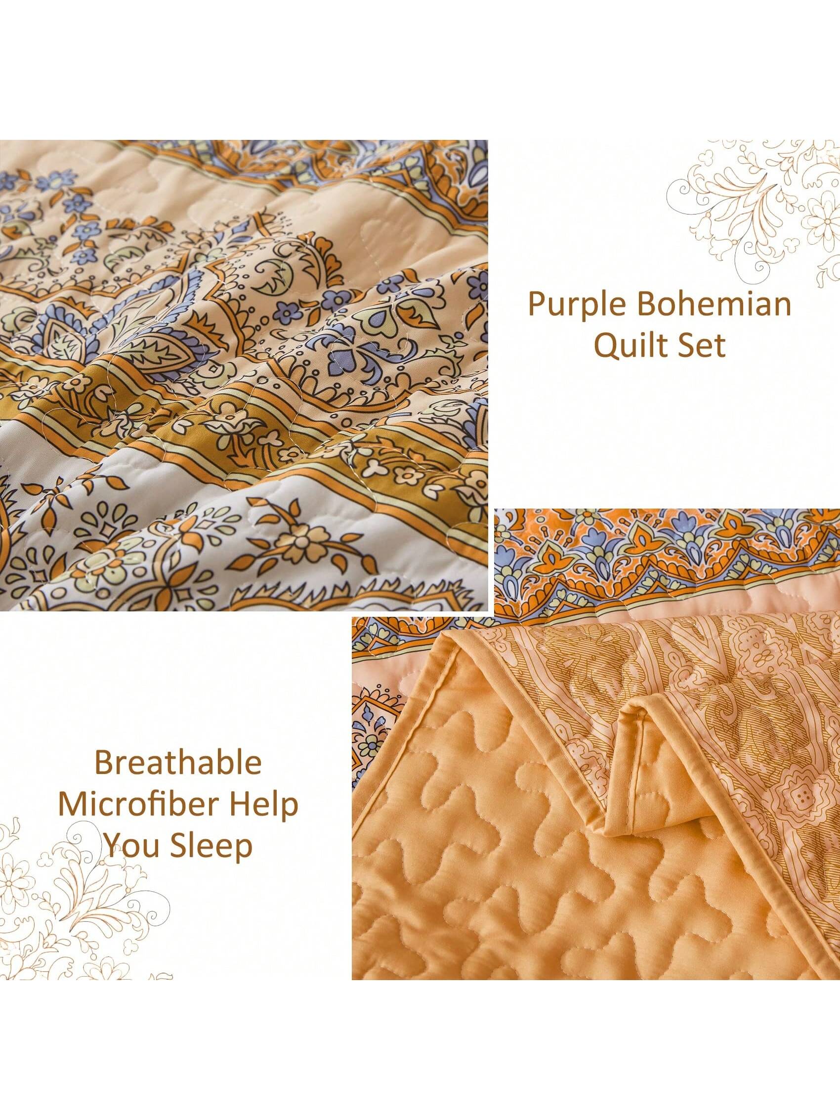 Bohemian Bliss 3-Piece Yellow Queen Size Quilt Set: Soft Microfiber Bedding for All Seasons