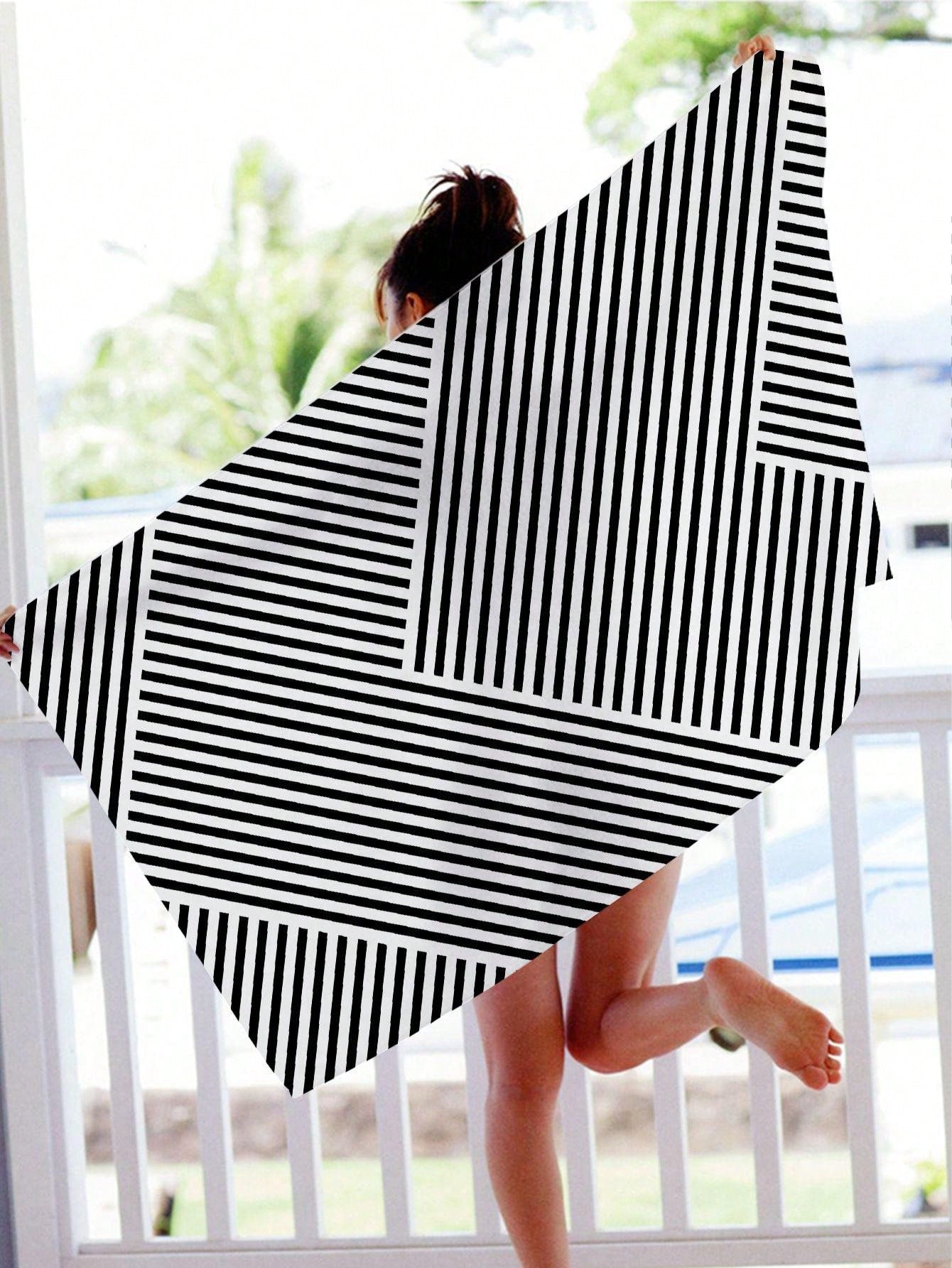 Bohemian Bliss: Stripe Printed Beach Towel for Swimming, Camping, Yoga, Diving, and Travel