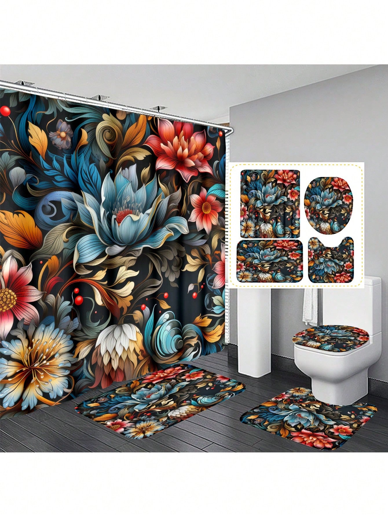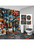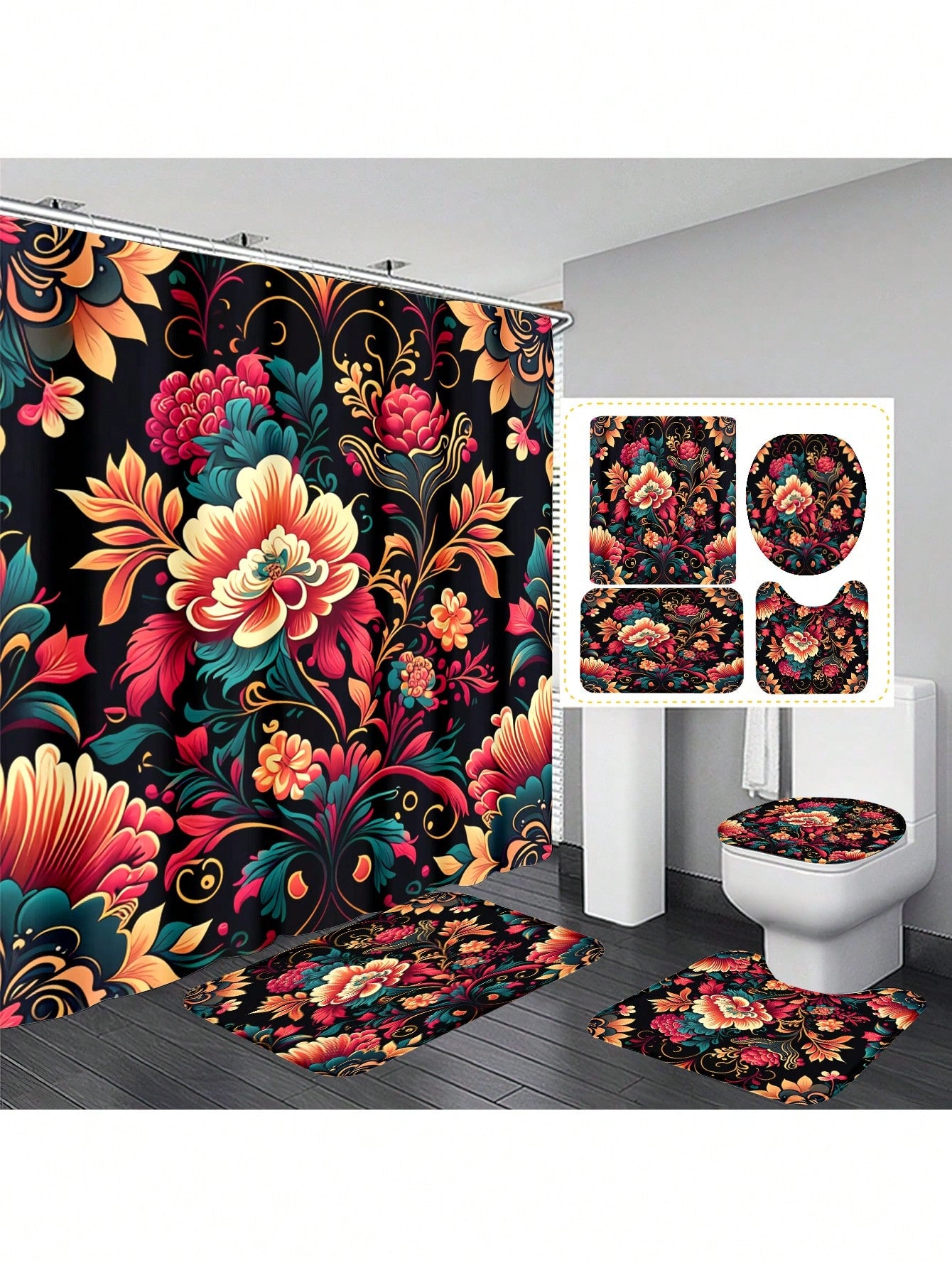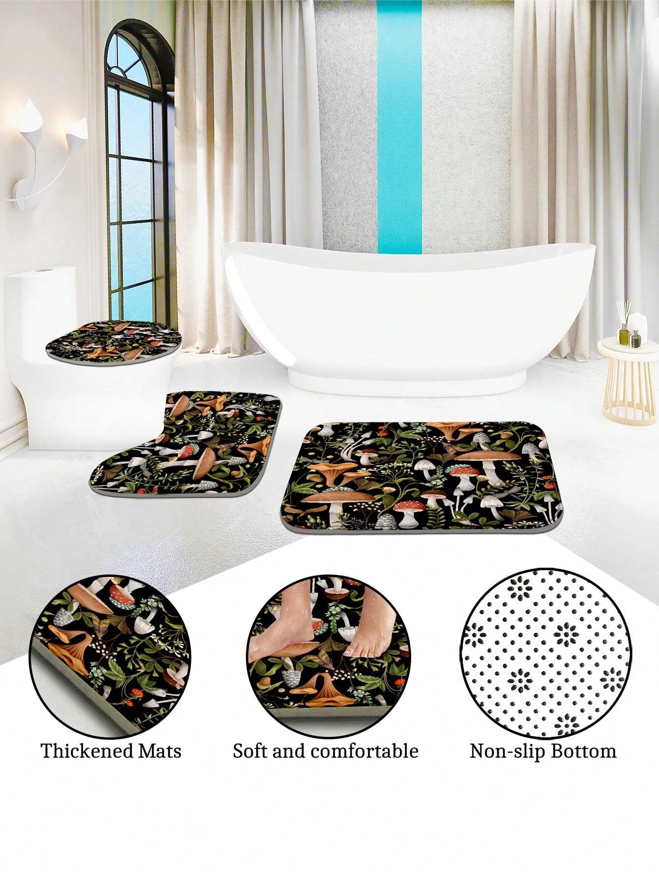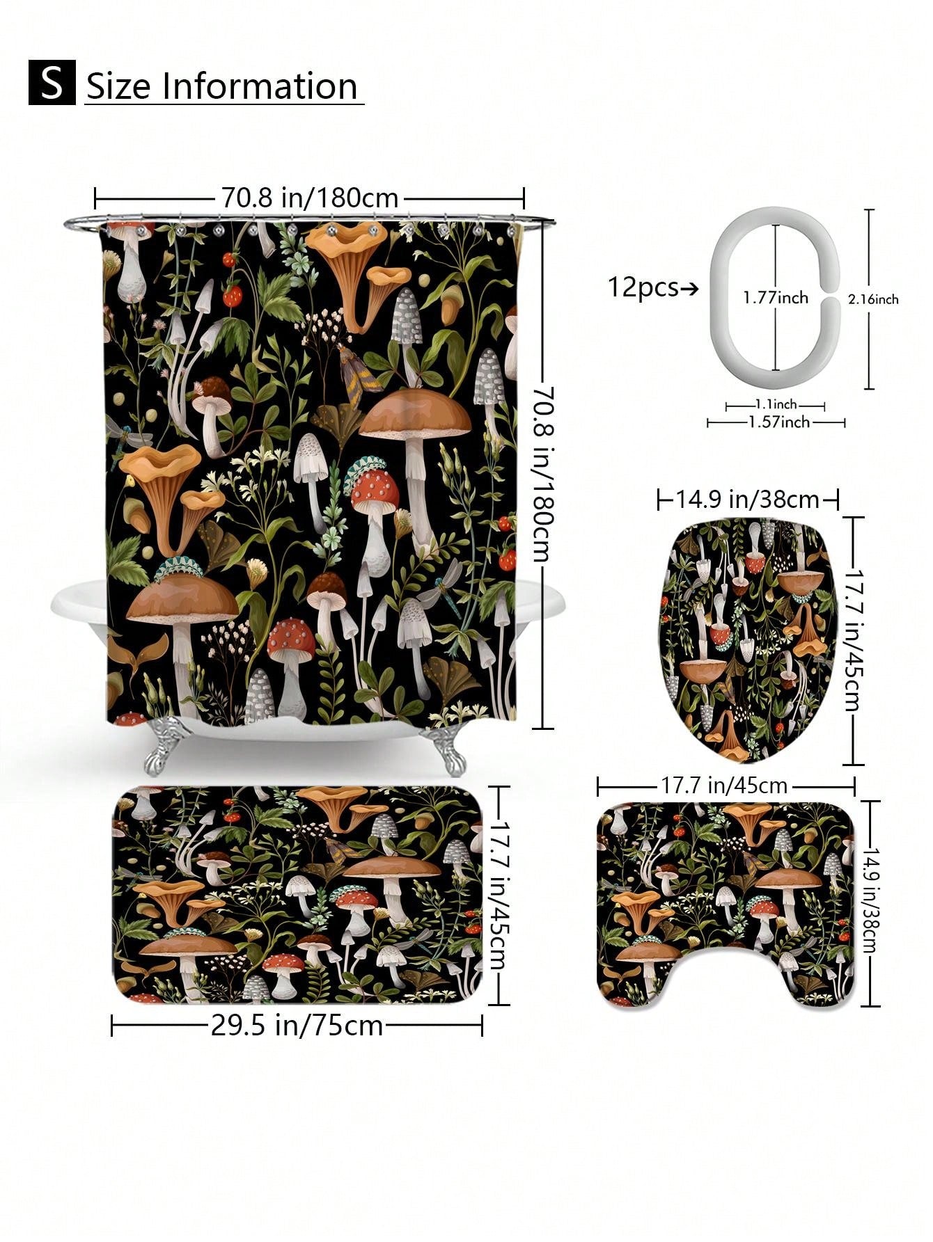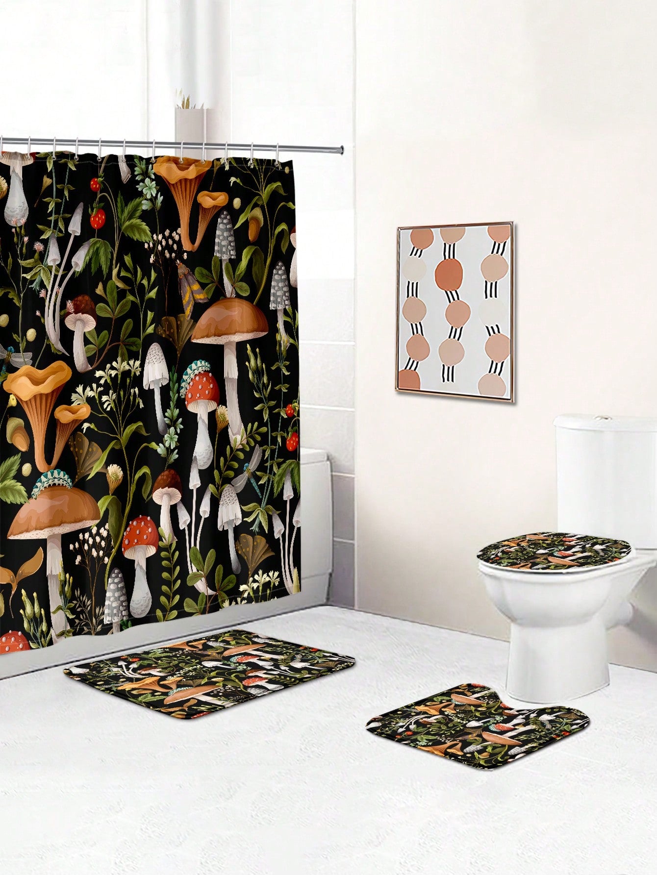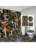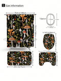 shower curtain, bath mat, and toilet cover featuring a bohemian mushroom design. Made with high-quality materials, this set adds a touch of style and functionality to your bathroom. Transform your daily routine into a peaceful escape with our exclusive set"
