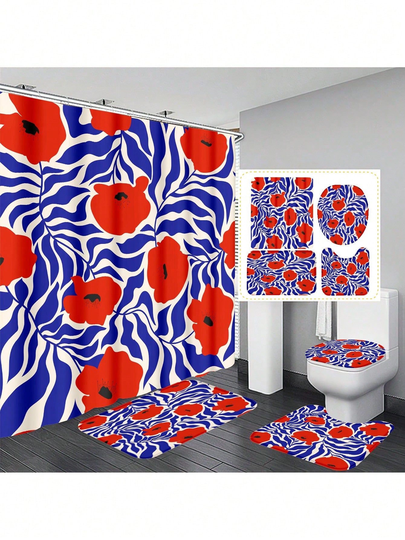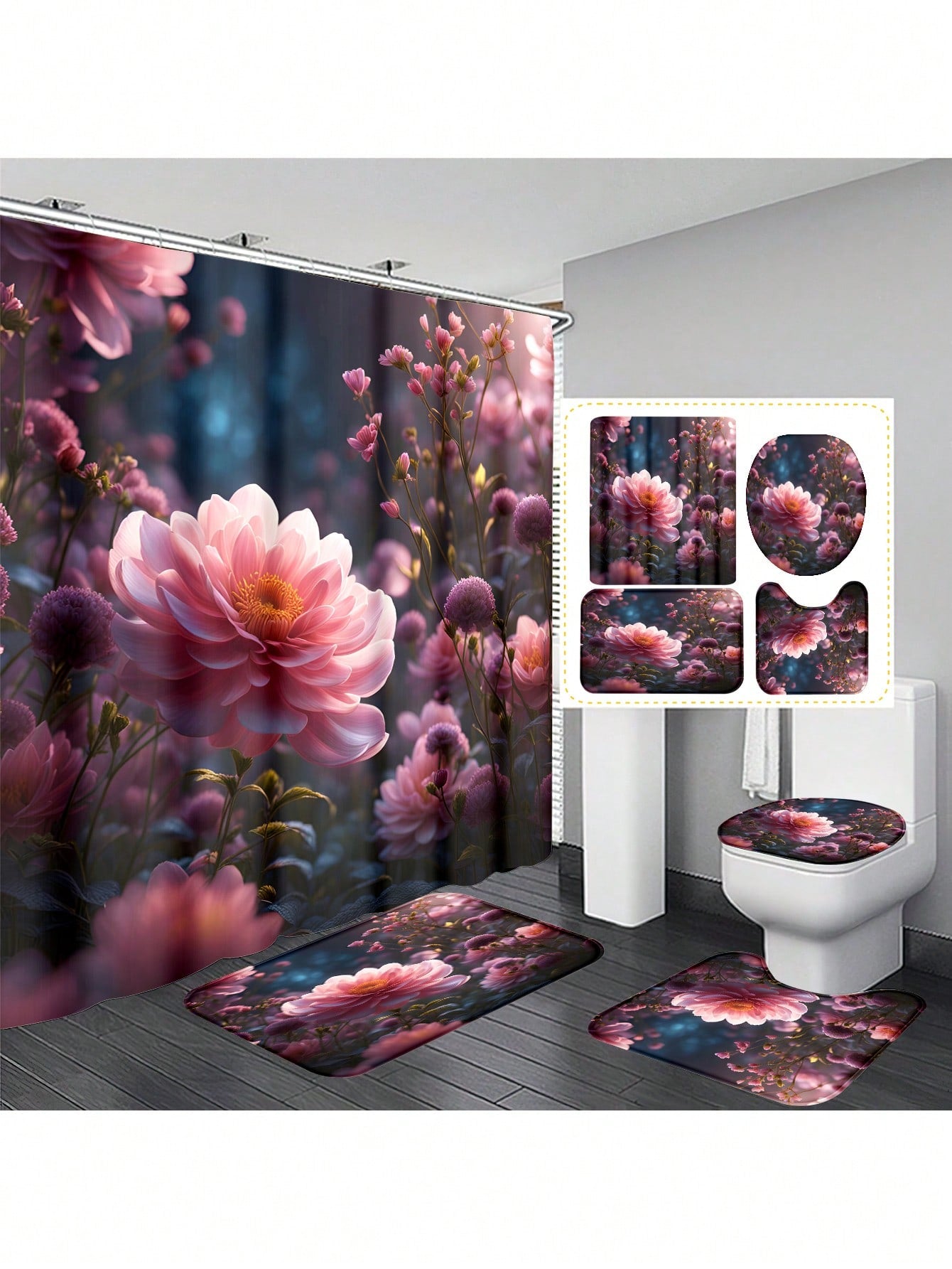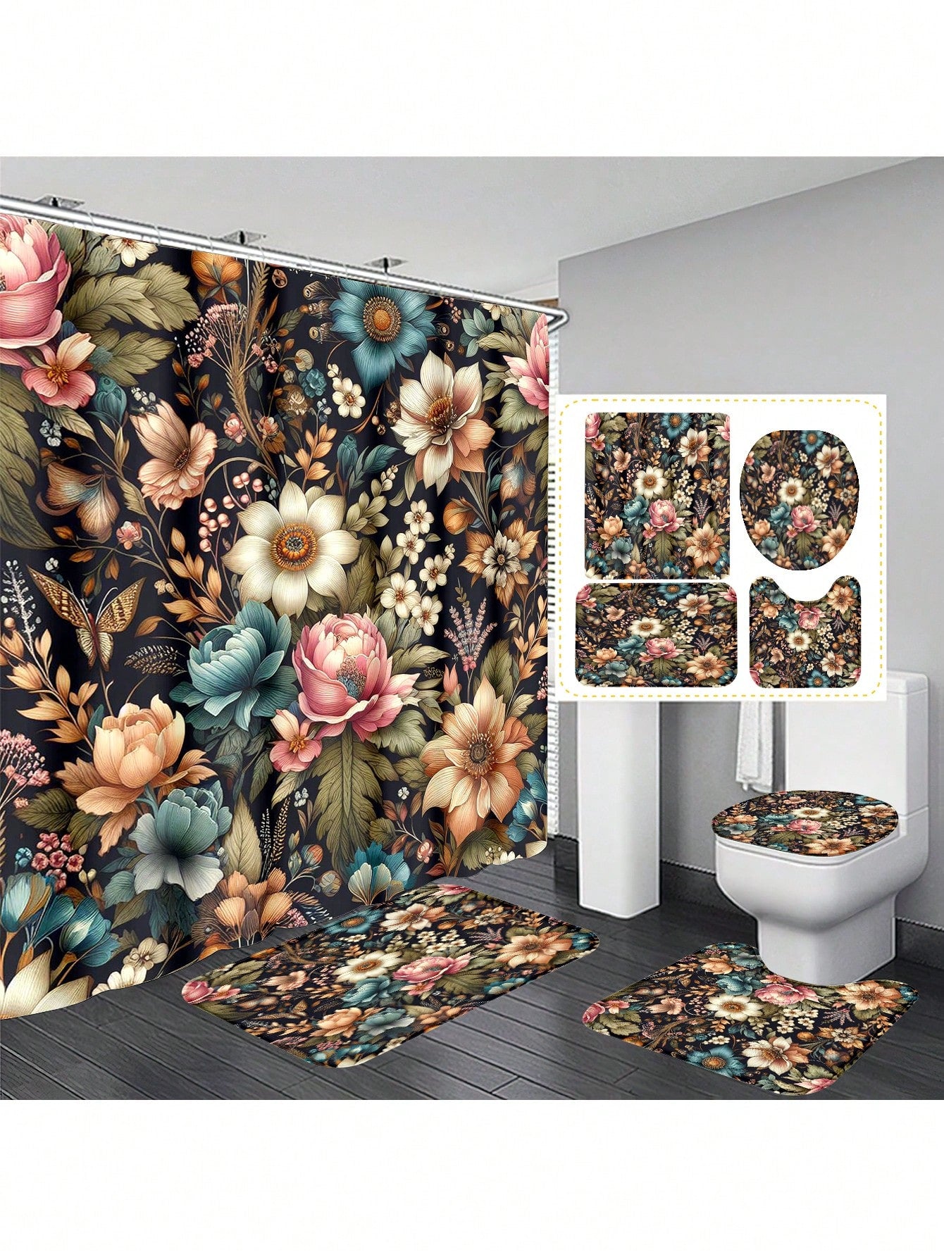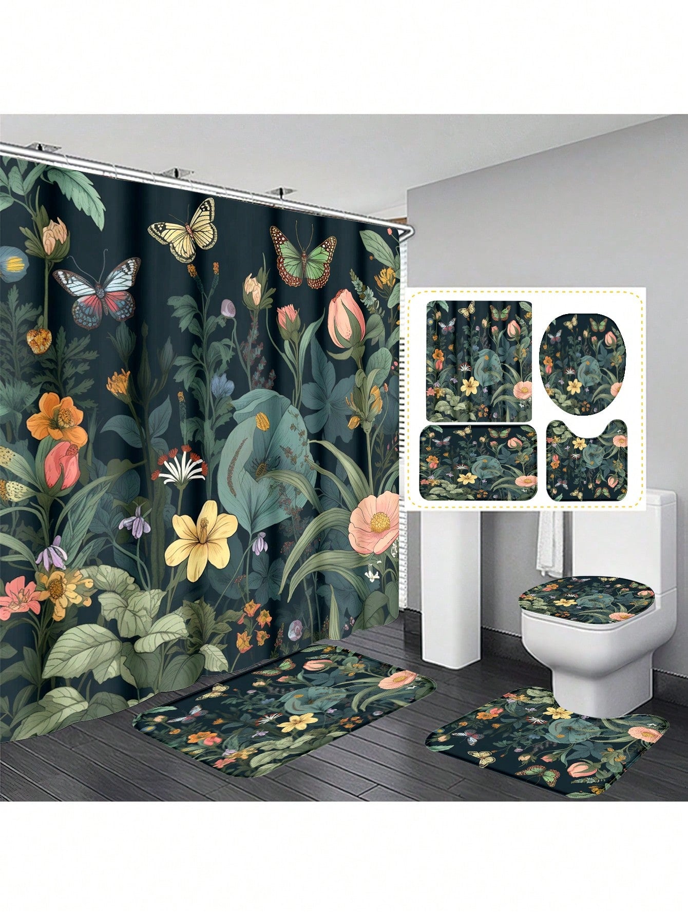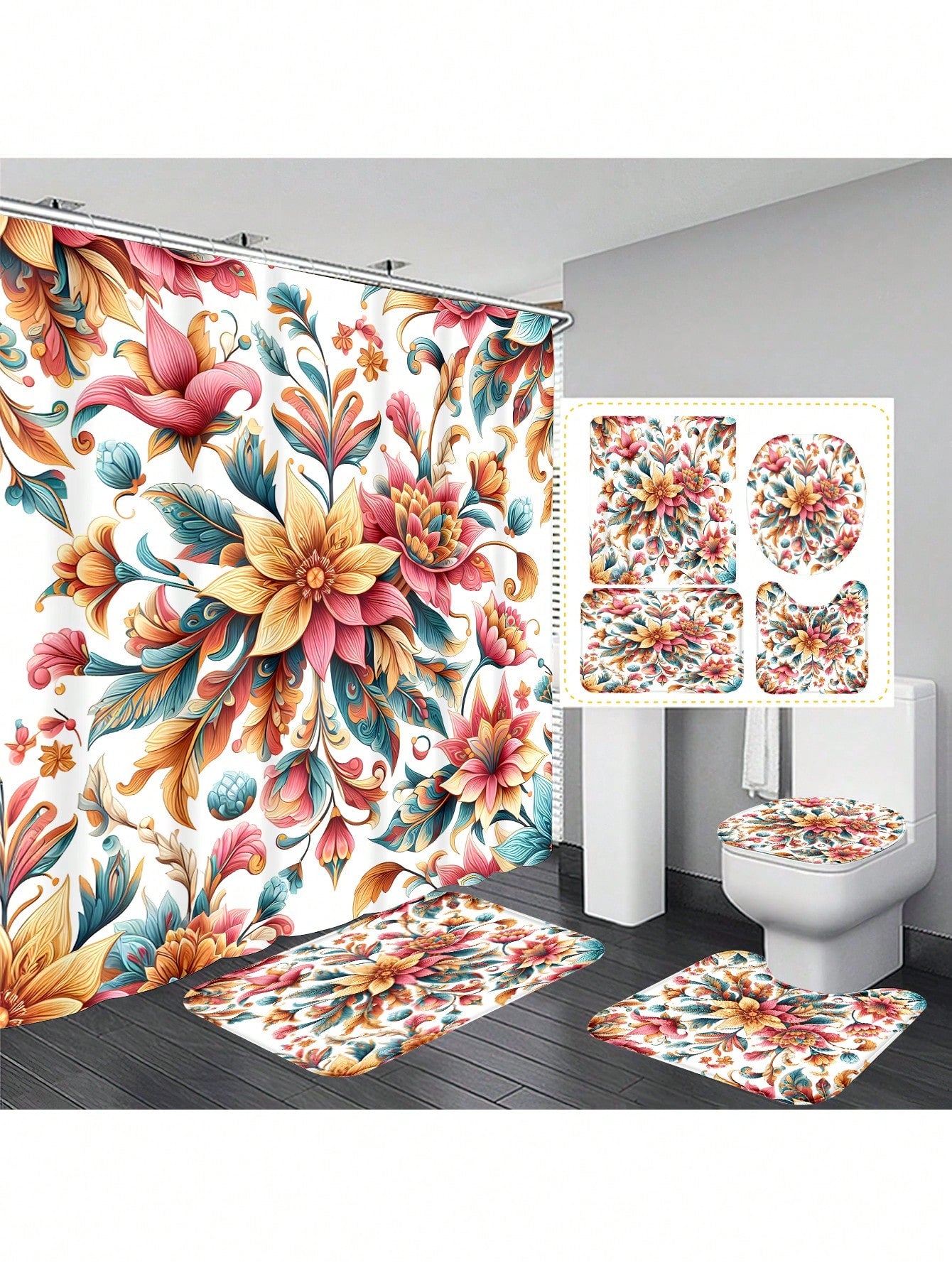 shower curtain, bath mat, and toilet cover featuring a bohemian mushroom design. Made with high-quality materials, this set adds a touch of style and functionality to your bathroom. Transform your daily routine into a peaceful escape with our exclusive set"