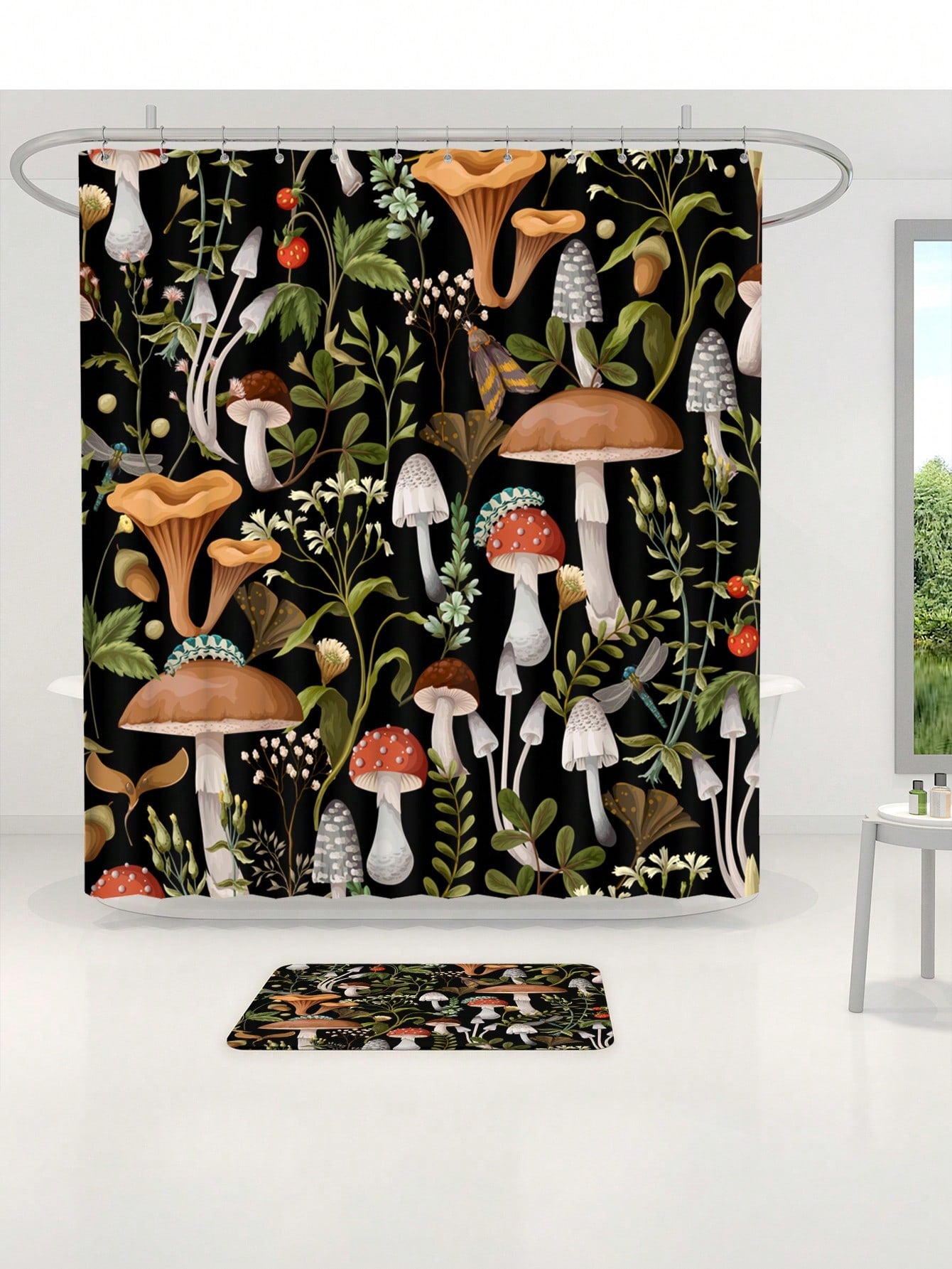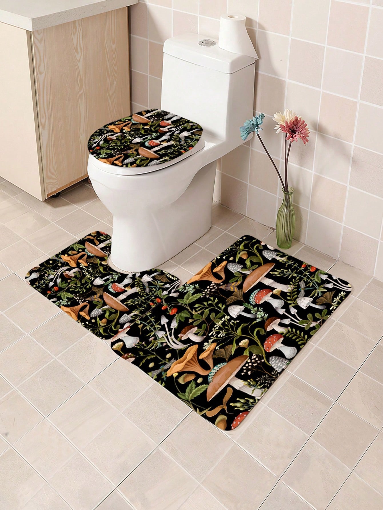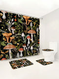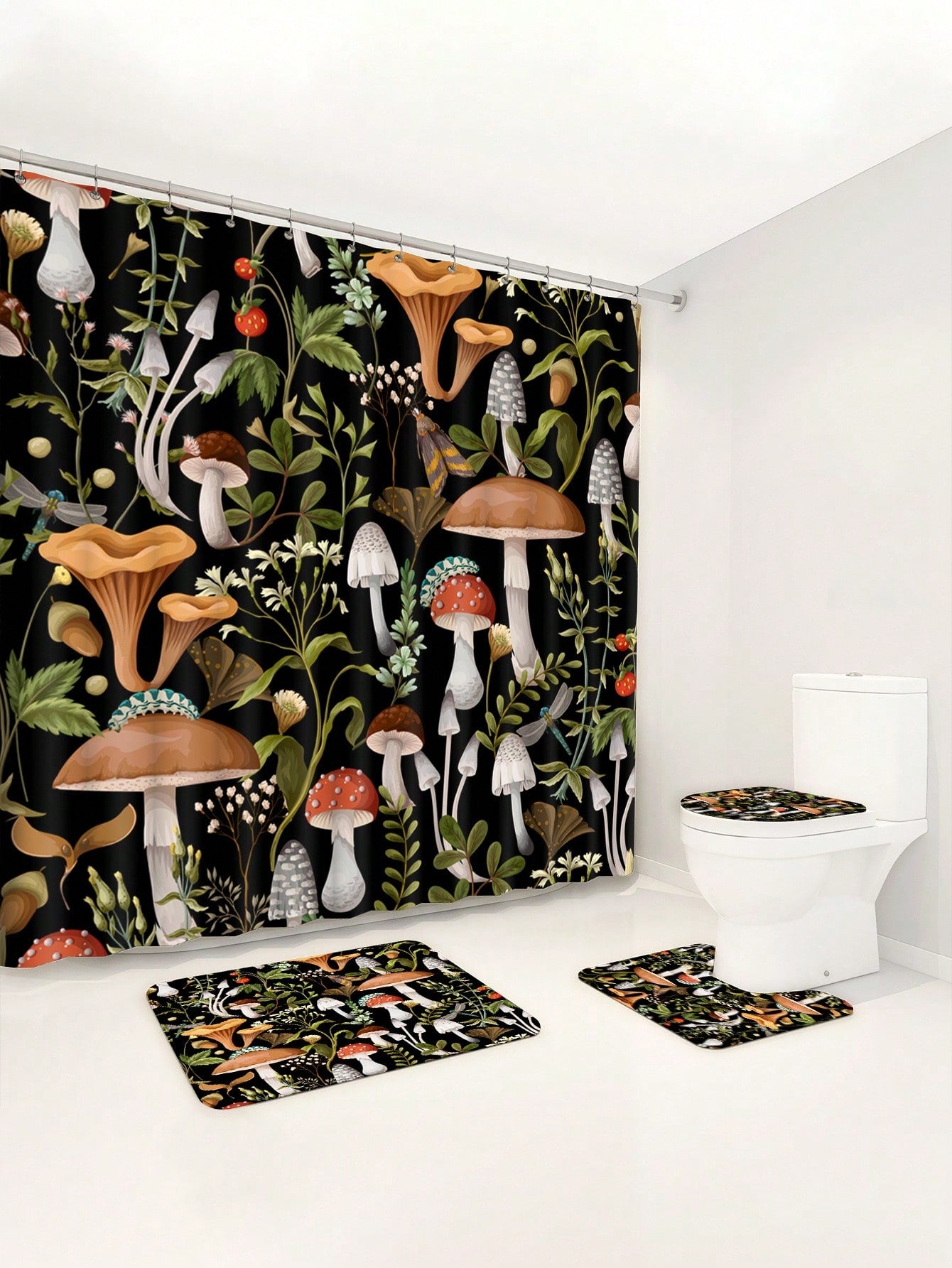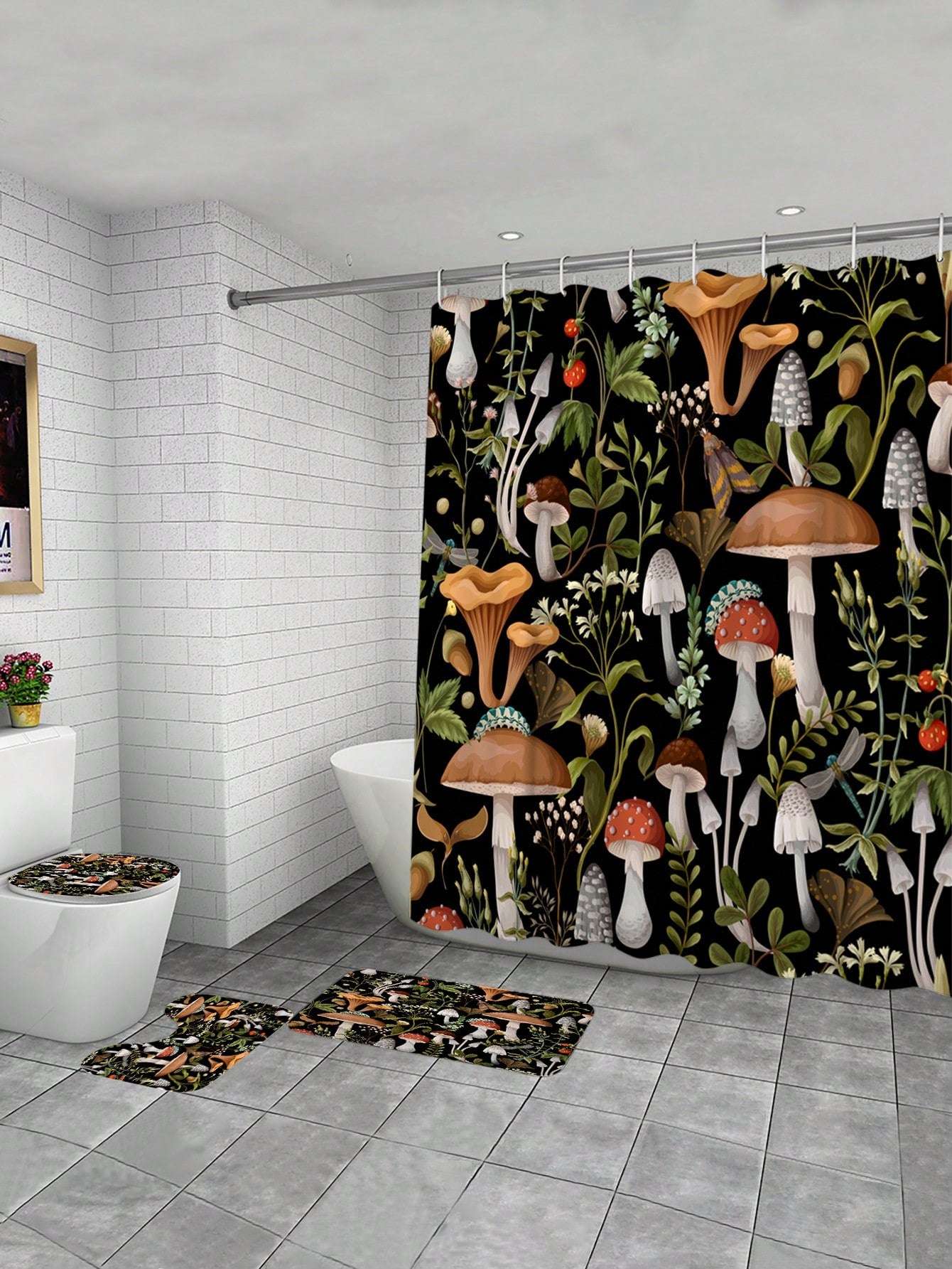 Bohemian Mushroom Bathroom Set: Shower Curtain, Bath Mat, and Toilet Cover