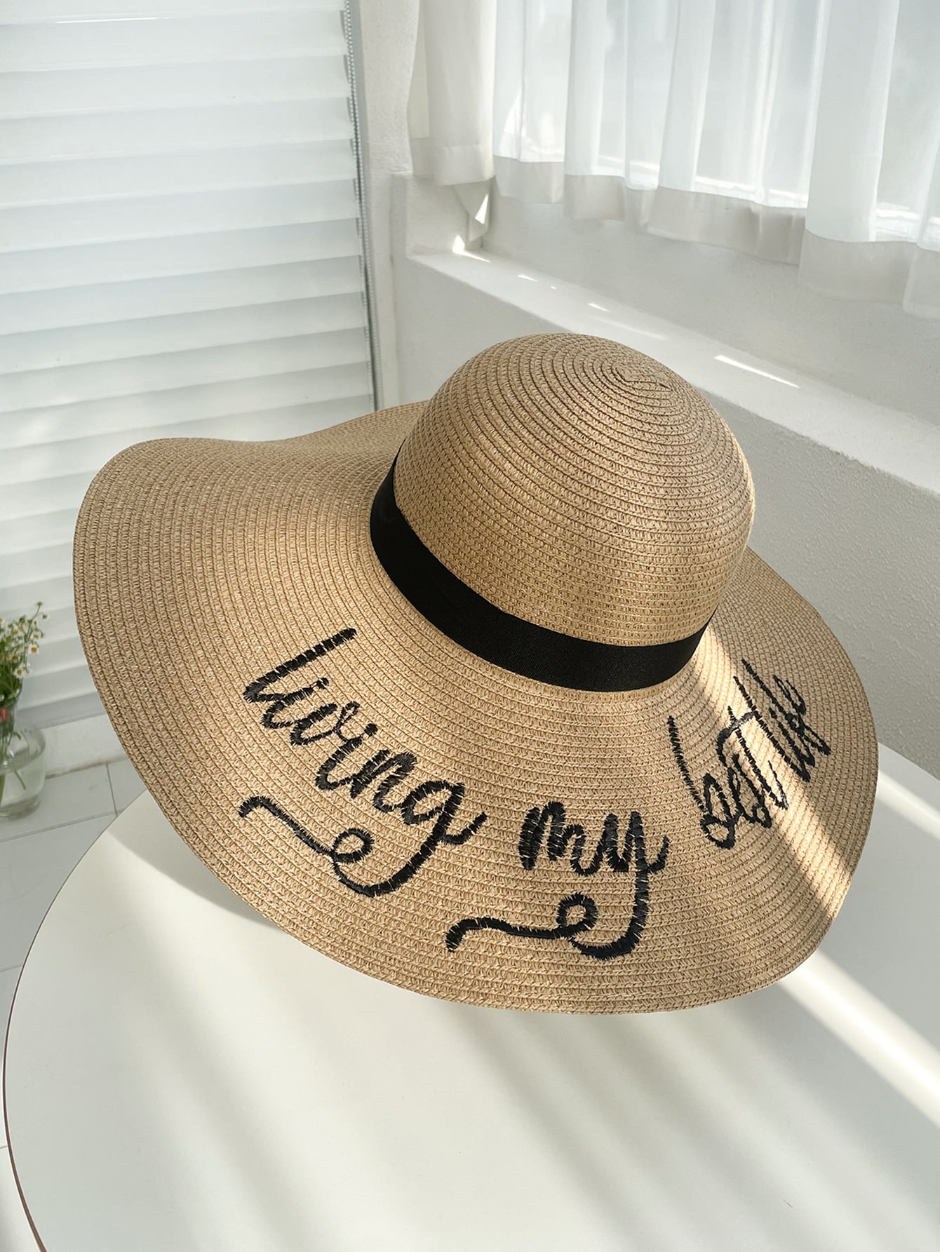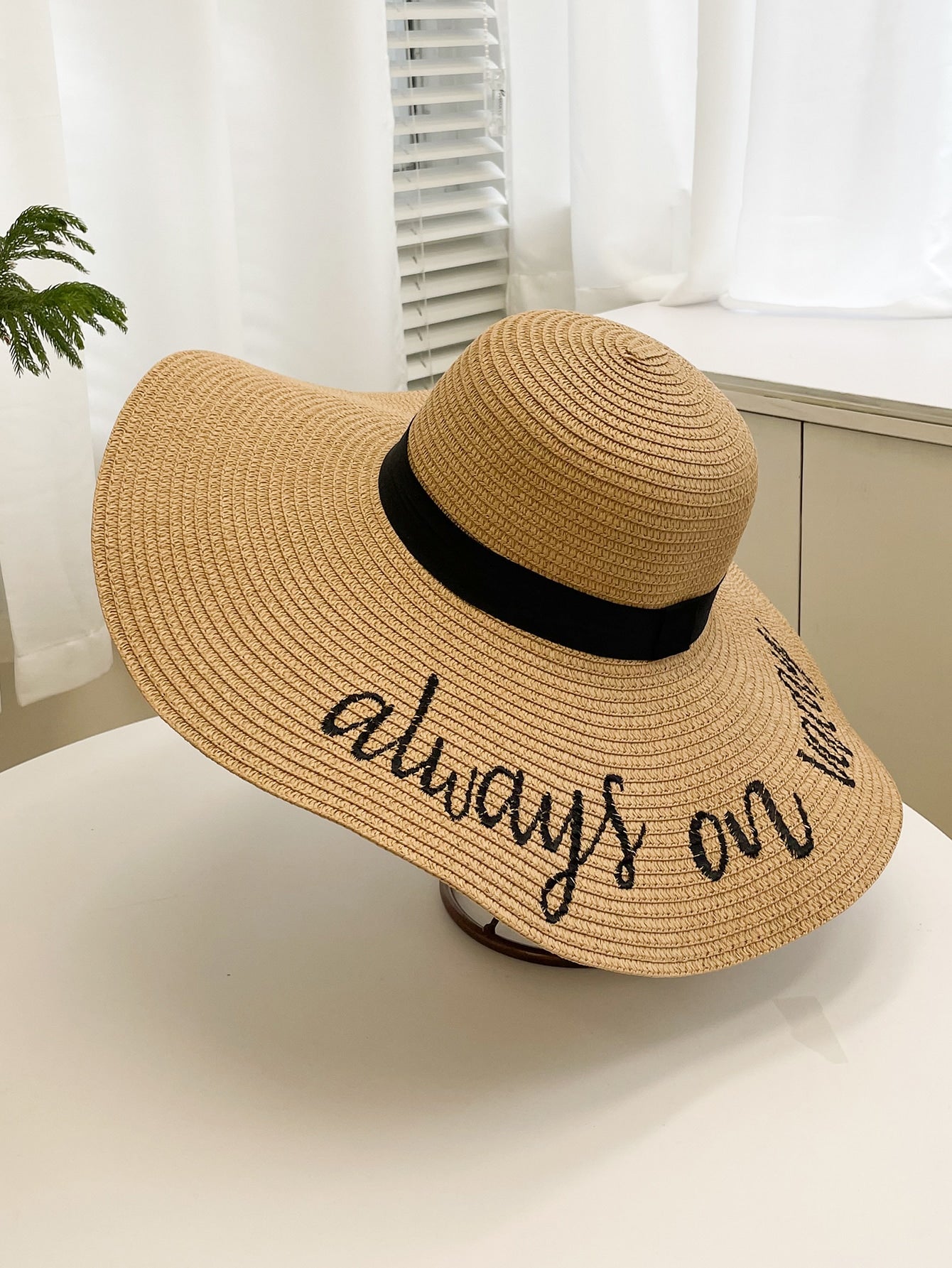 Boho Babe Straw Hat: Stay Stylish Outdoors with Letter Embroidery
