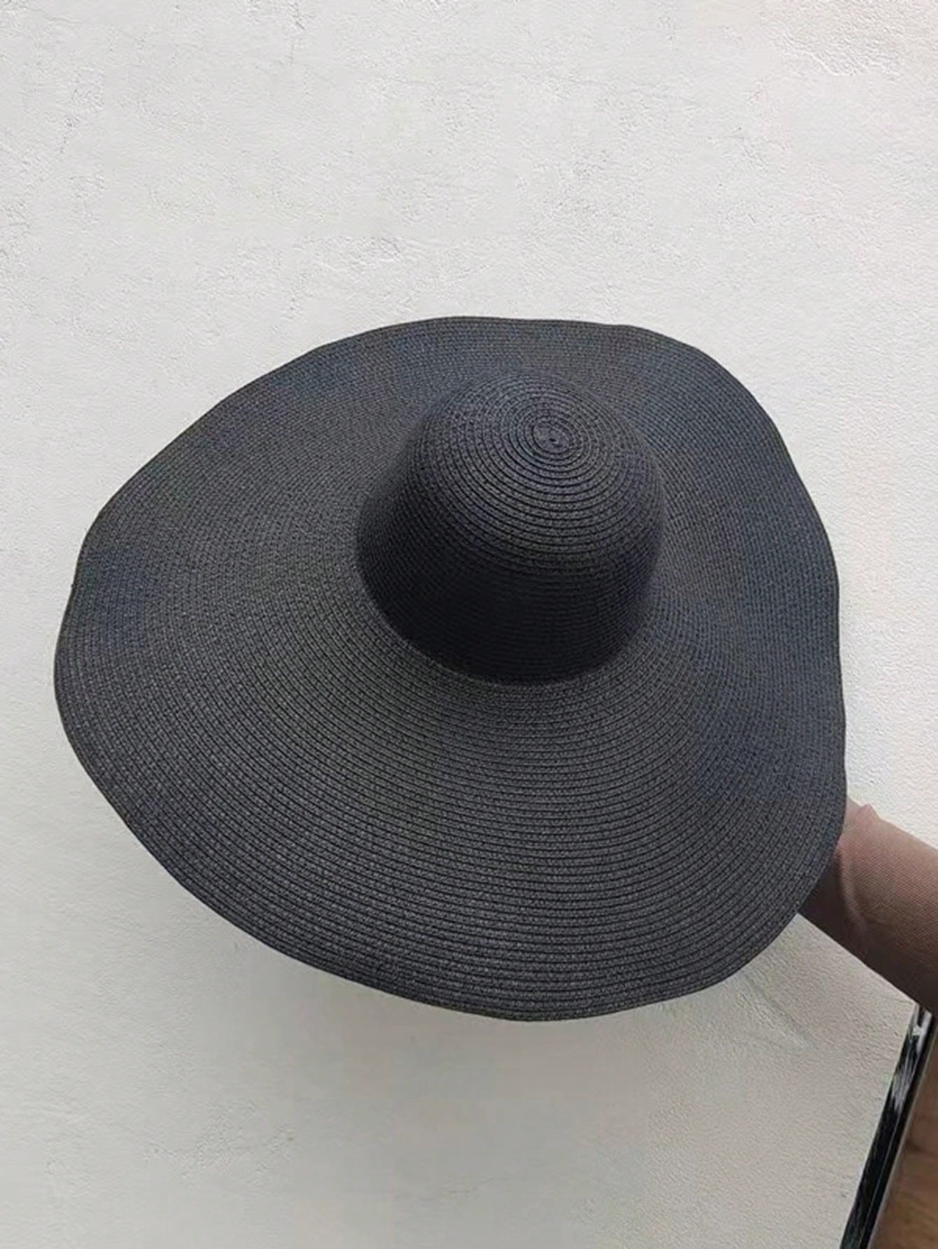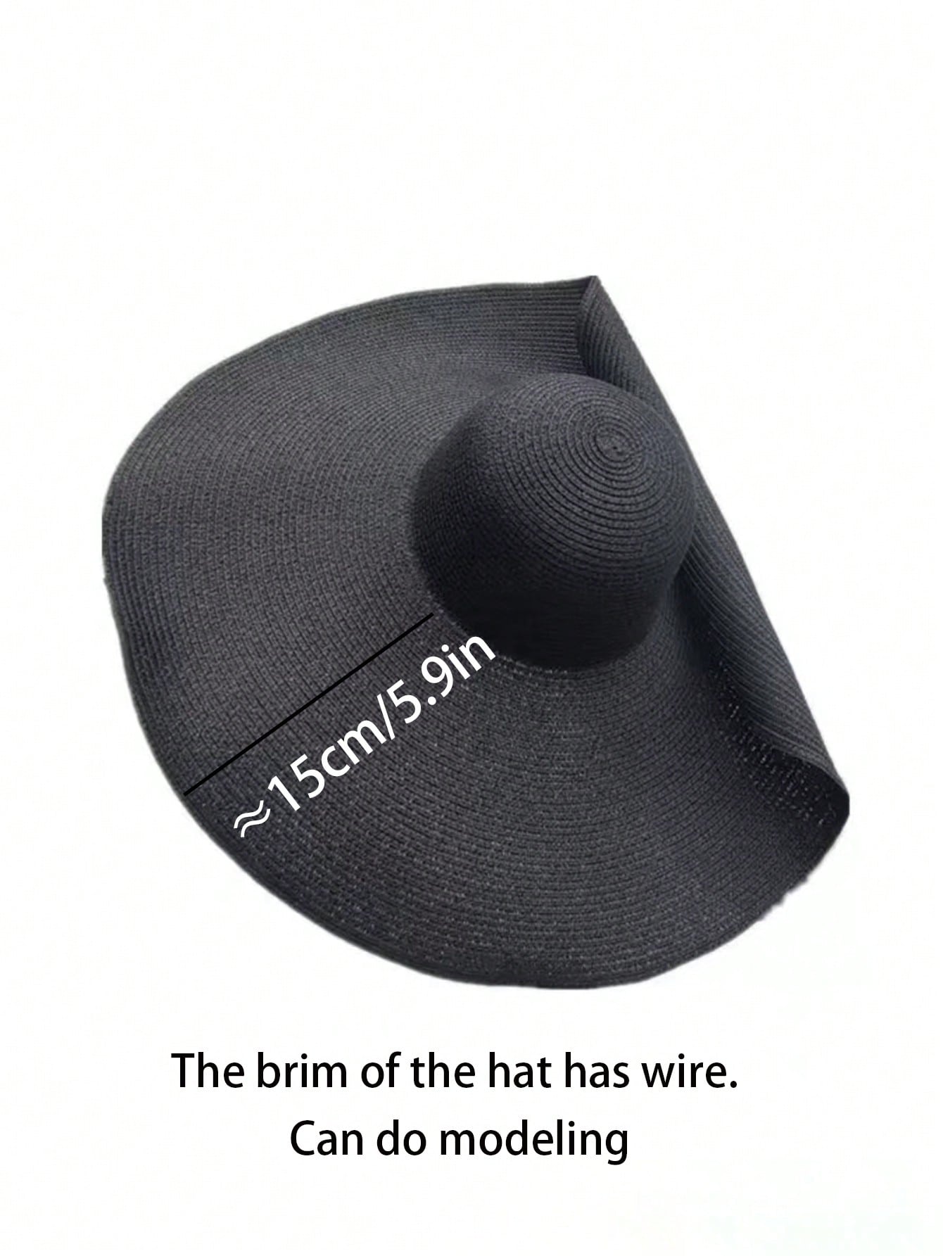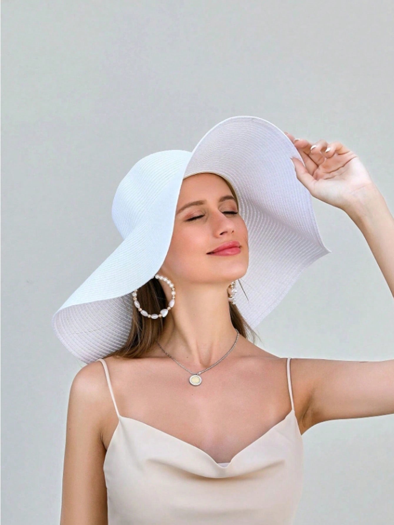 Boho Beach Chic: Women's Solid Wide Brim Straw Hat for Holiday Vibes