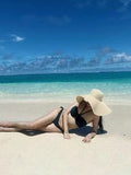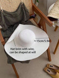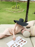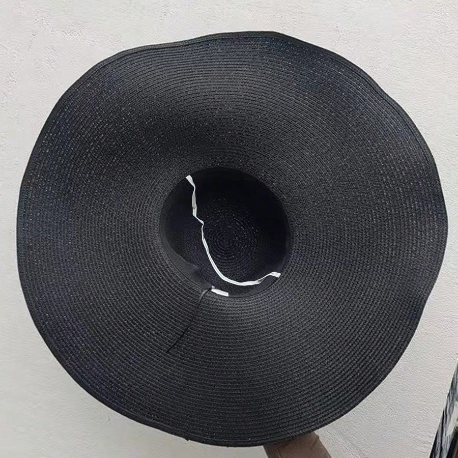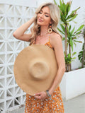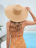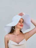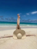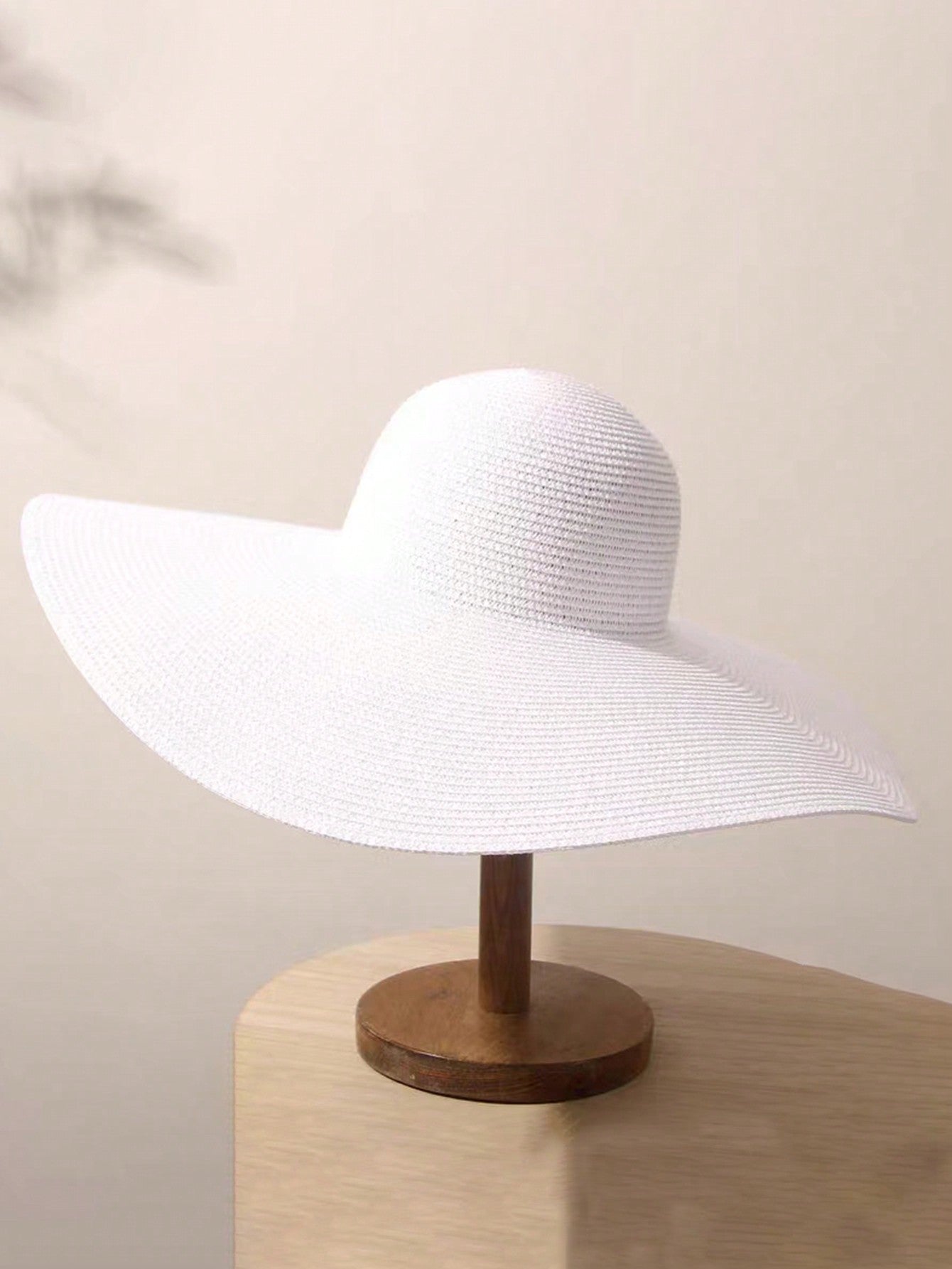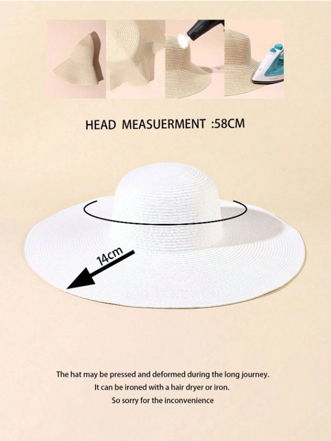 Boho Beach Chic: Women's Solid Wide Brim Straw Hat for Holiday Vibes