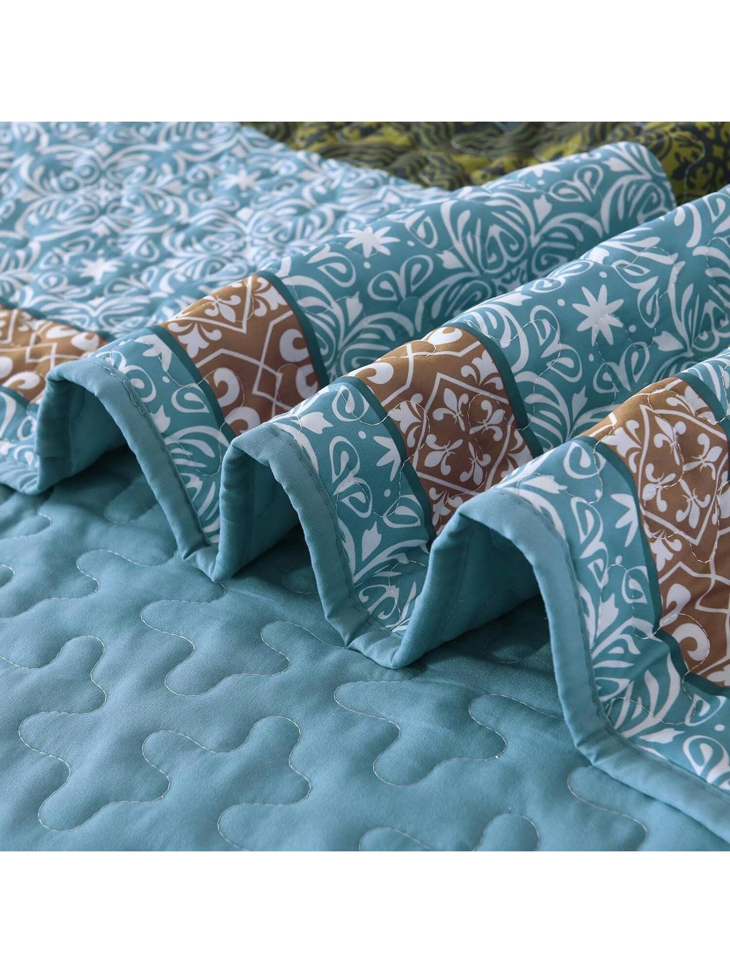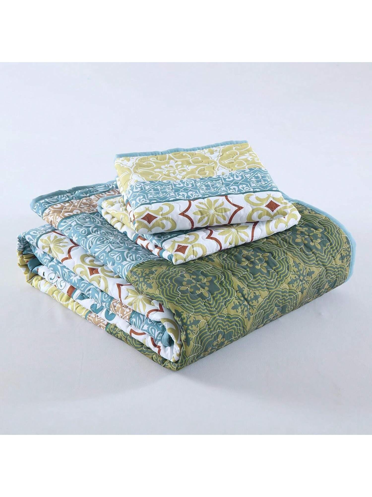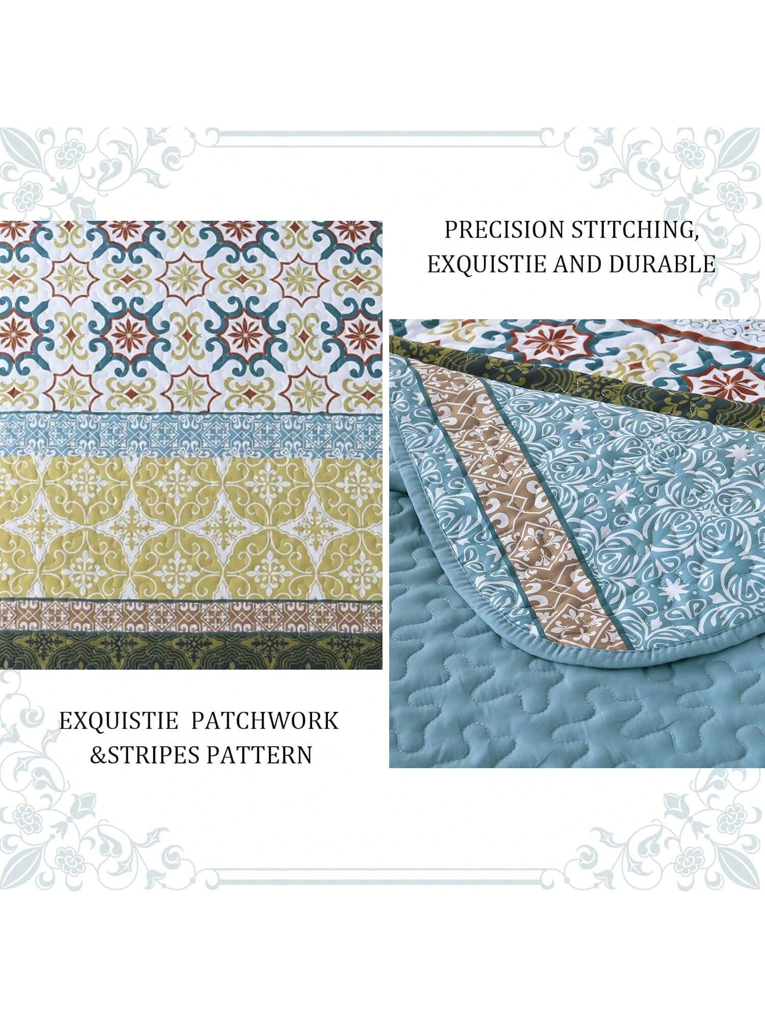 Boho Bliss: Green Bohemian Patchwork Quilt Set - Queen/King Size