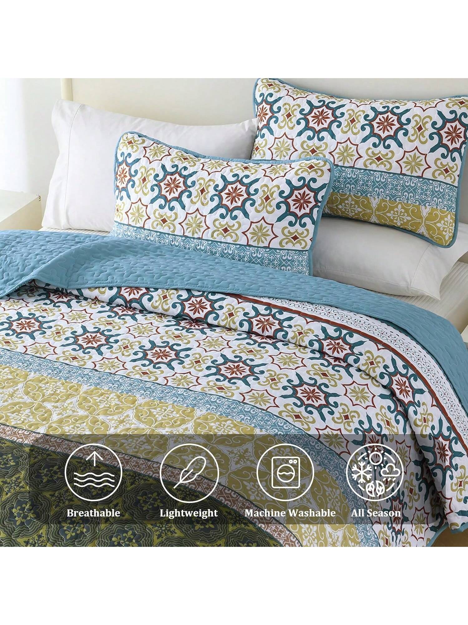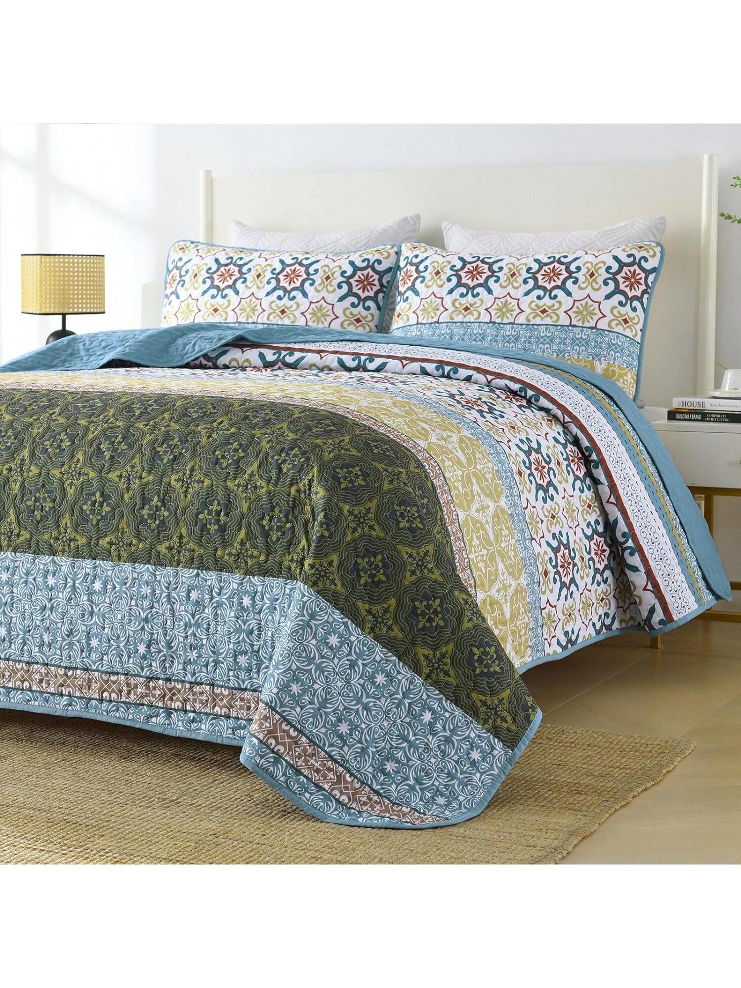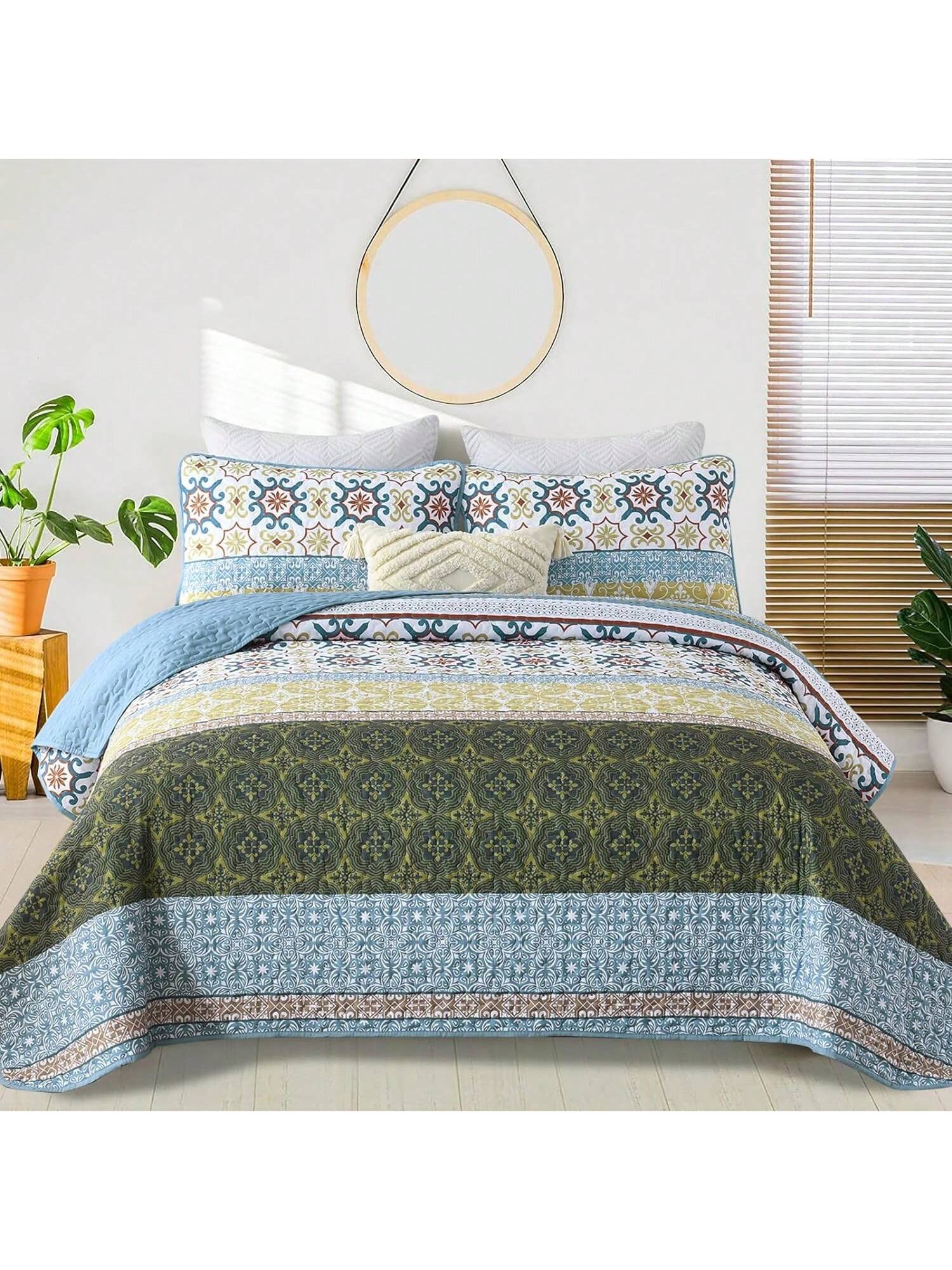 Boho Bliss: Green Bohemian Patchwork Quilt Set - Queen/King Size