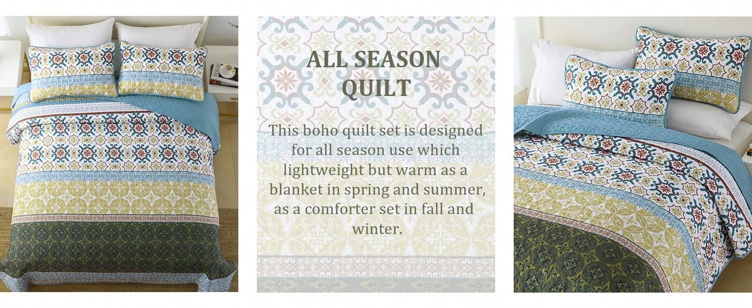 Introducing Boho Bliss: Green Bohemian Patchwork Quilt Set - available in Queen and King sizes! Experience the comfort and style of our handcrafted, unique patchwork design. Made with high-quality materials, this set is both durable and cozy. Add a touch of bohemian flair to your bedroom with Boho Bliss.