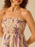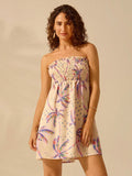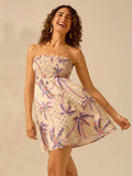 Boho Bliss: Purple Tropical Coconut Tree Print Ruffled Mini Dress for Summer Vacations