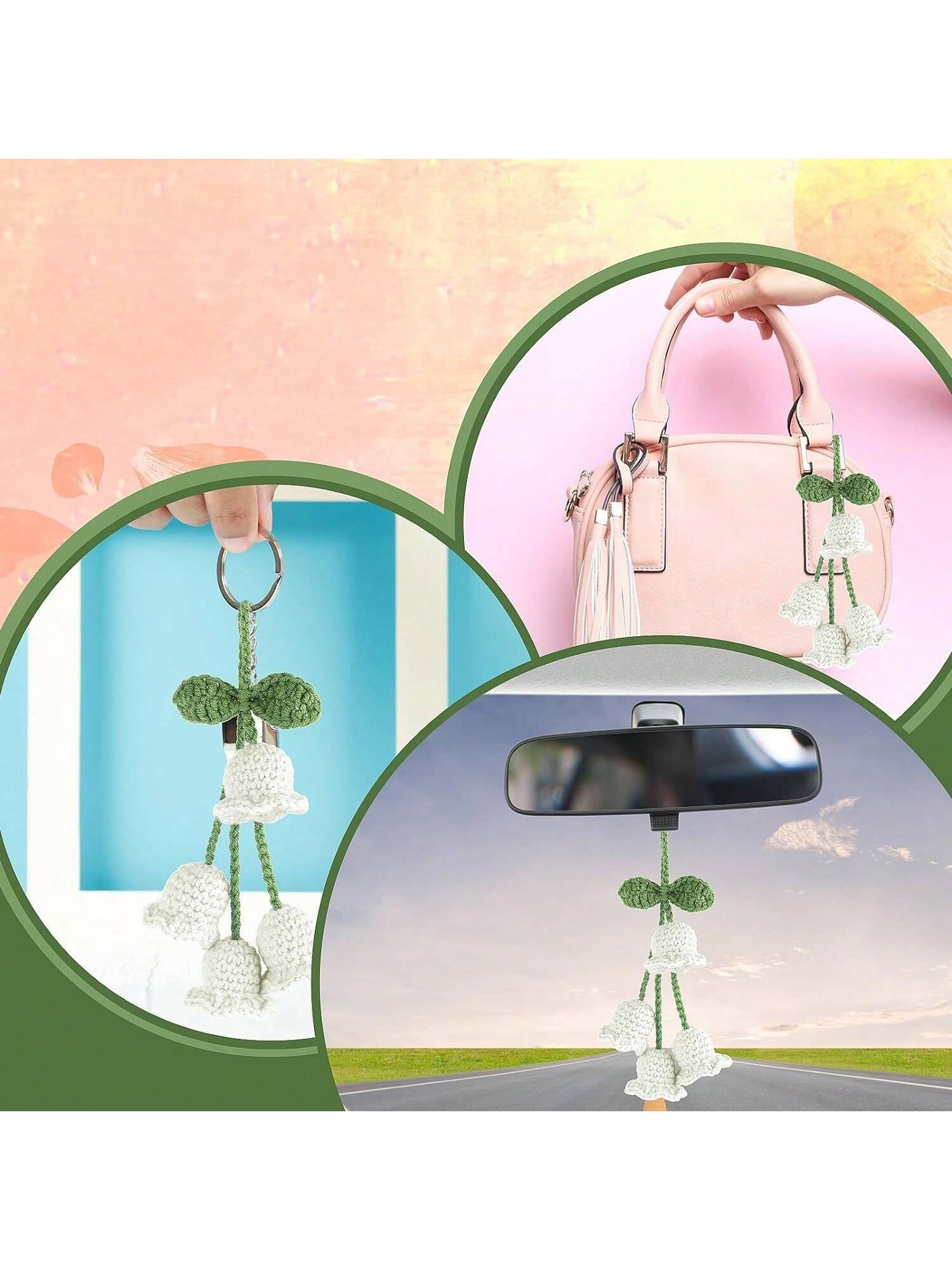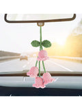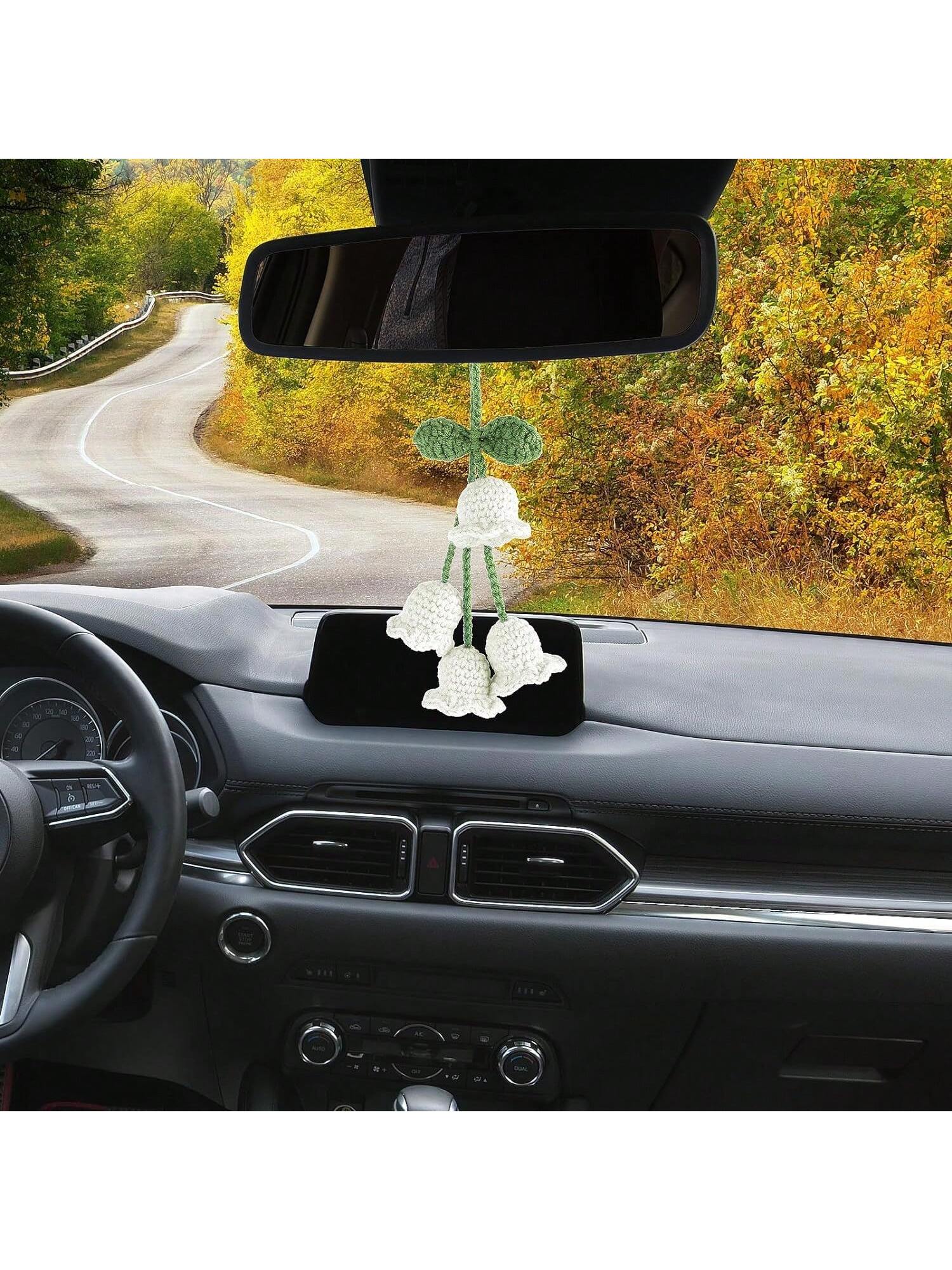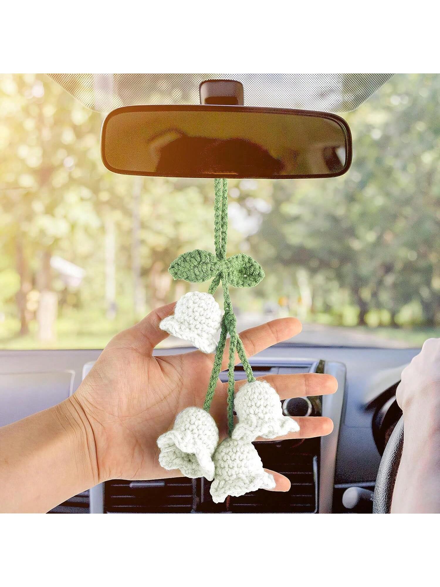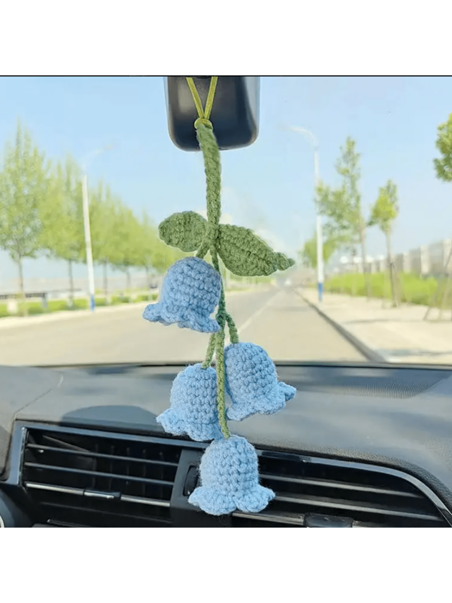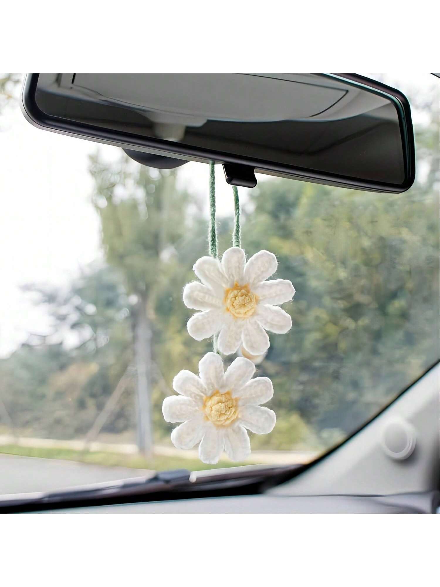 Boho Chic Blossom Drive: Woven Flower Car Hanging Ornament