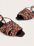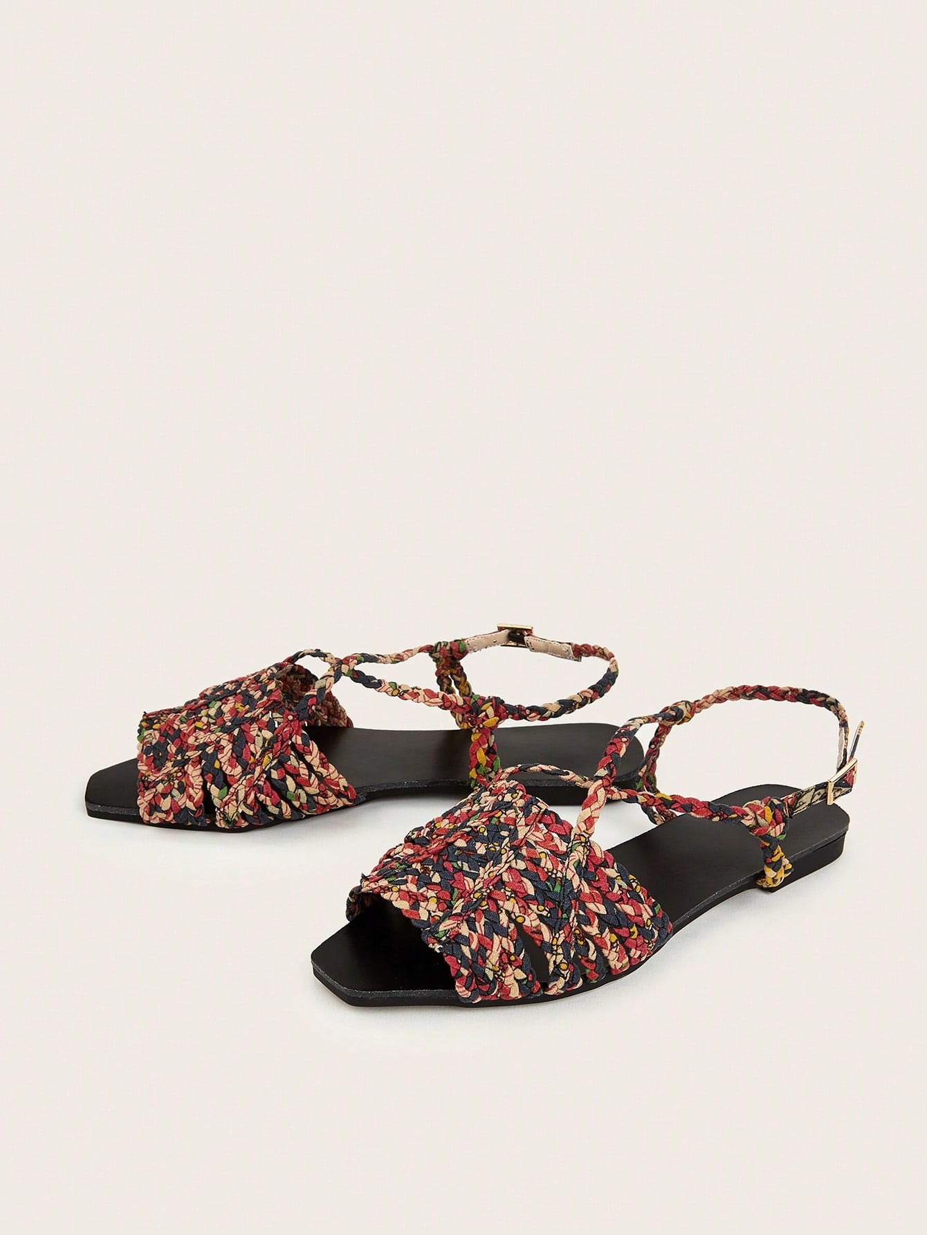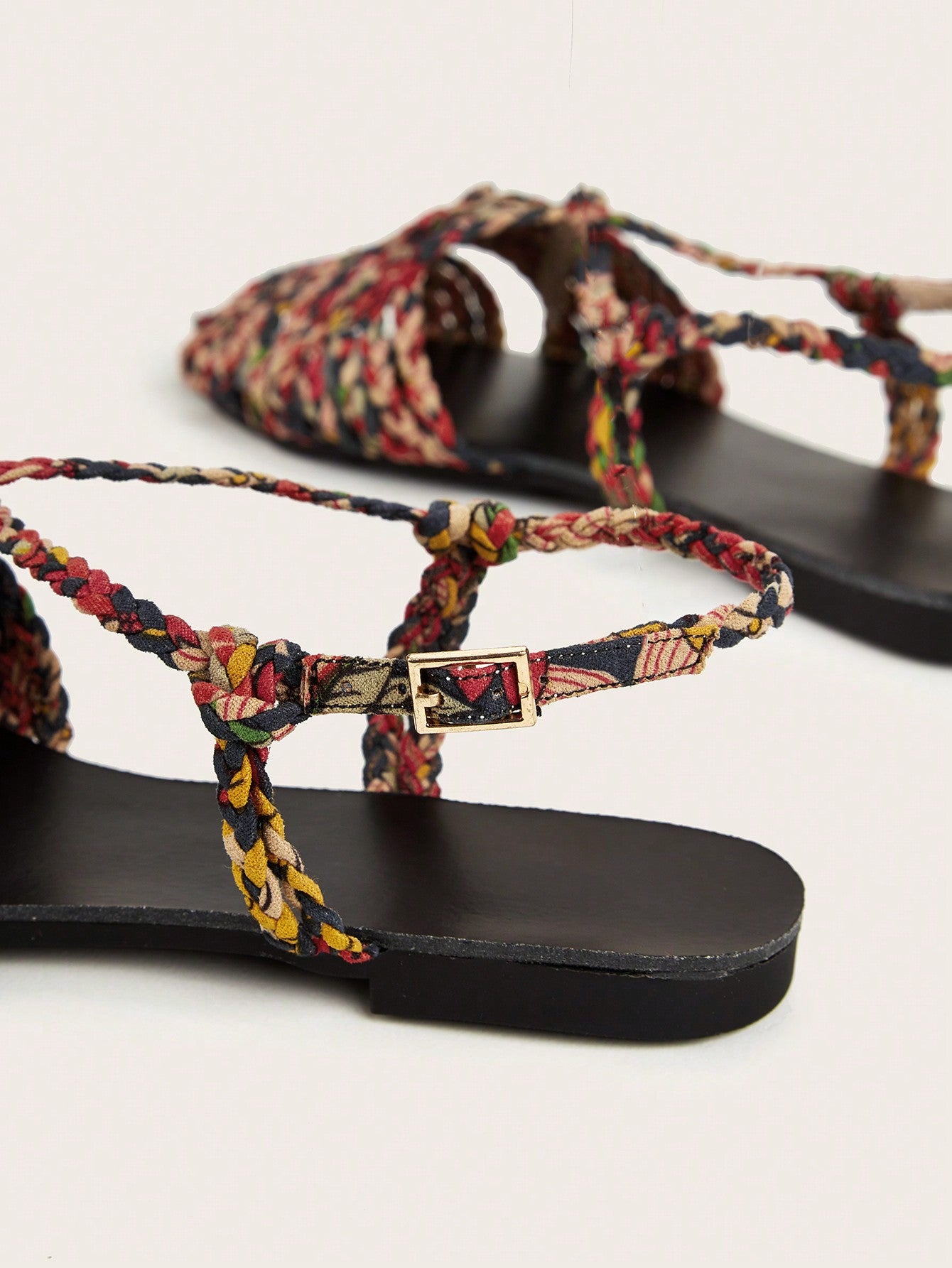 Boho Chic Faux Suede Braided Strap Flat Sandals with Flower Detail