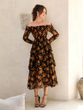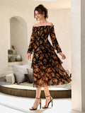 Boho Chic Floral Off-Shoulder Maxi Dress with Flounce Sleeves
