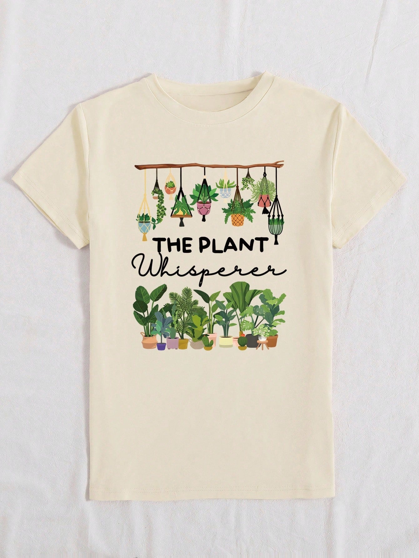 Boho Chic Plant Graphic Casual Tee for Effortless Style