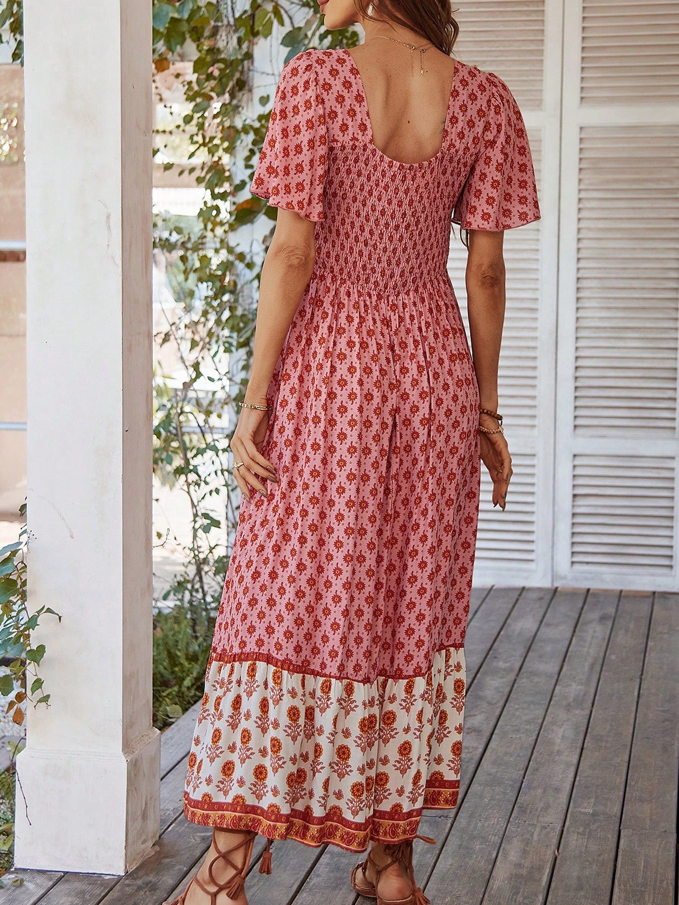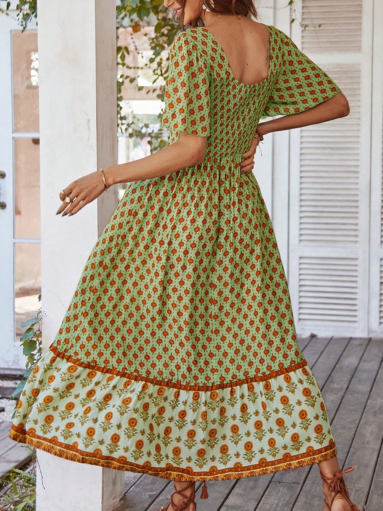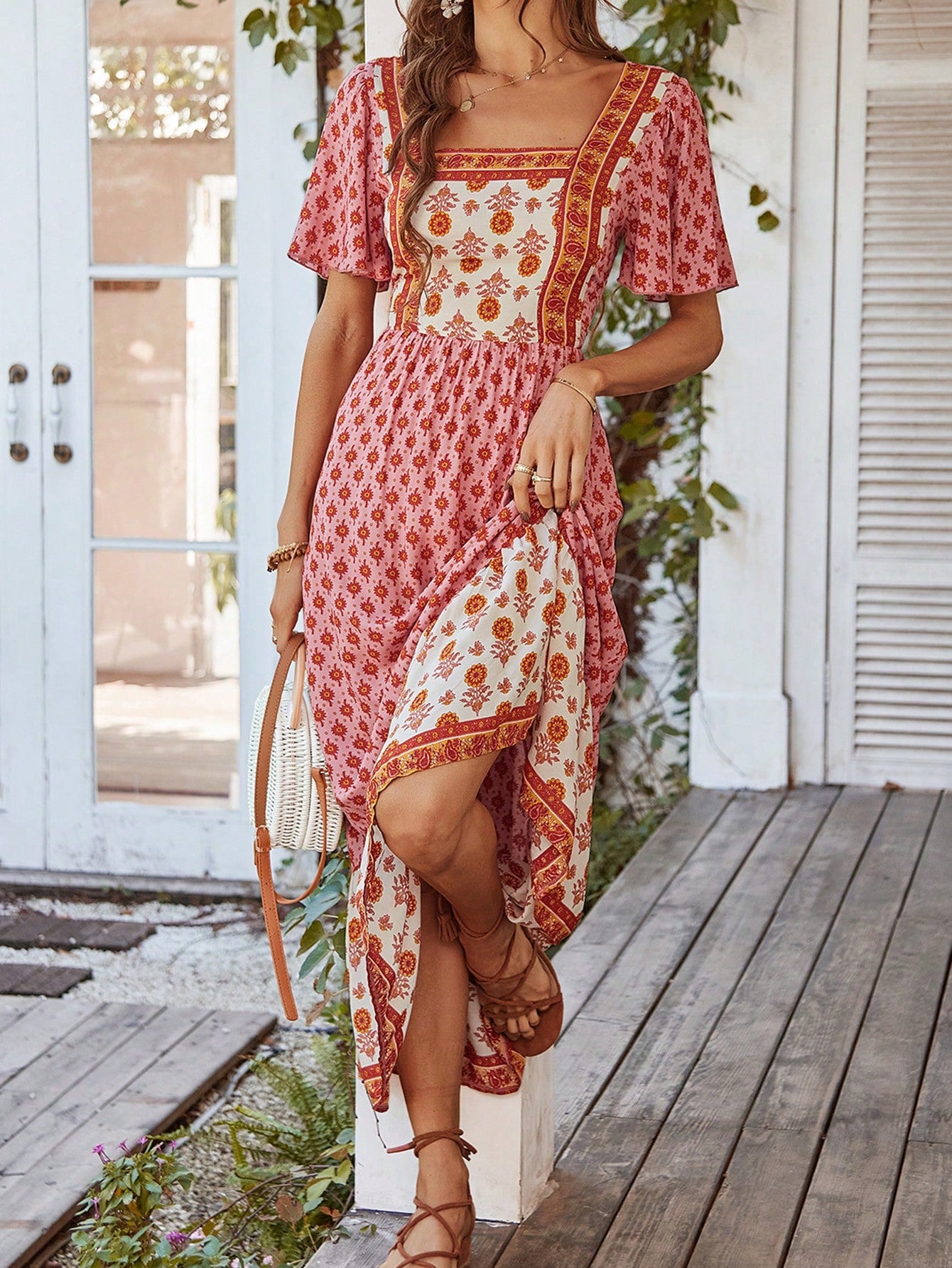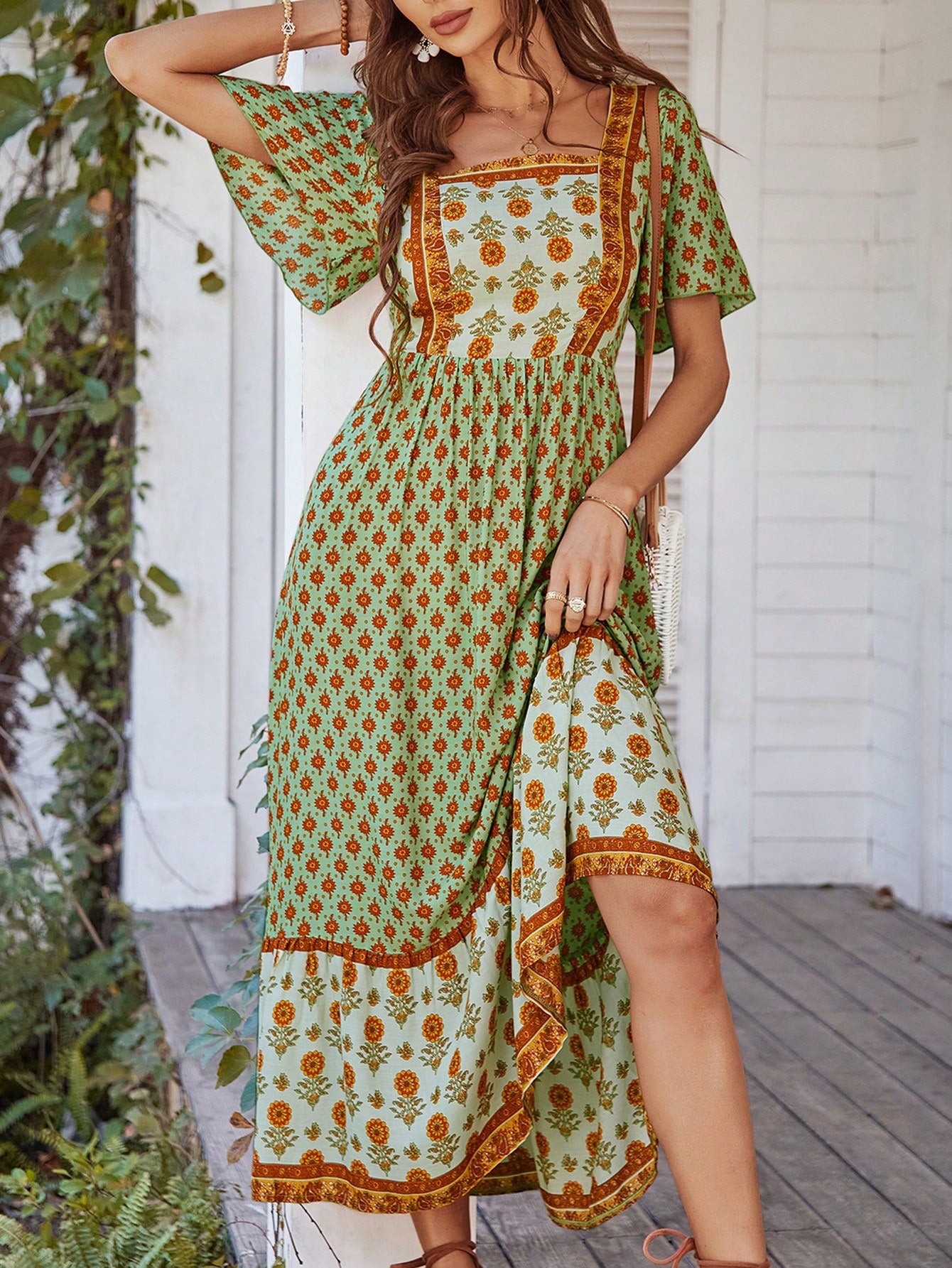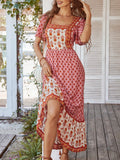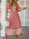 Boho Chic Printed Patchwork Square Neck Long Dress