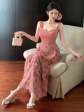 Boho Chic: Women's Sweetheart Neckline Patchwork Fringed Hem Spaghetti Strap Dress
