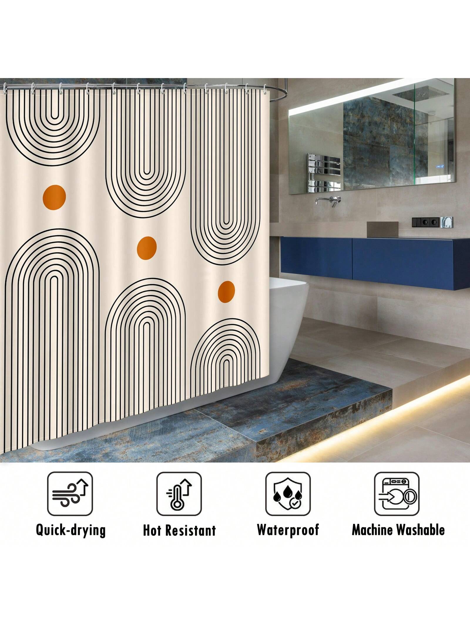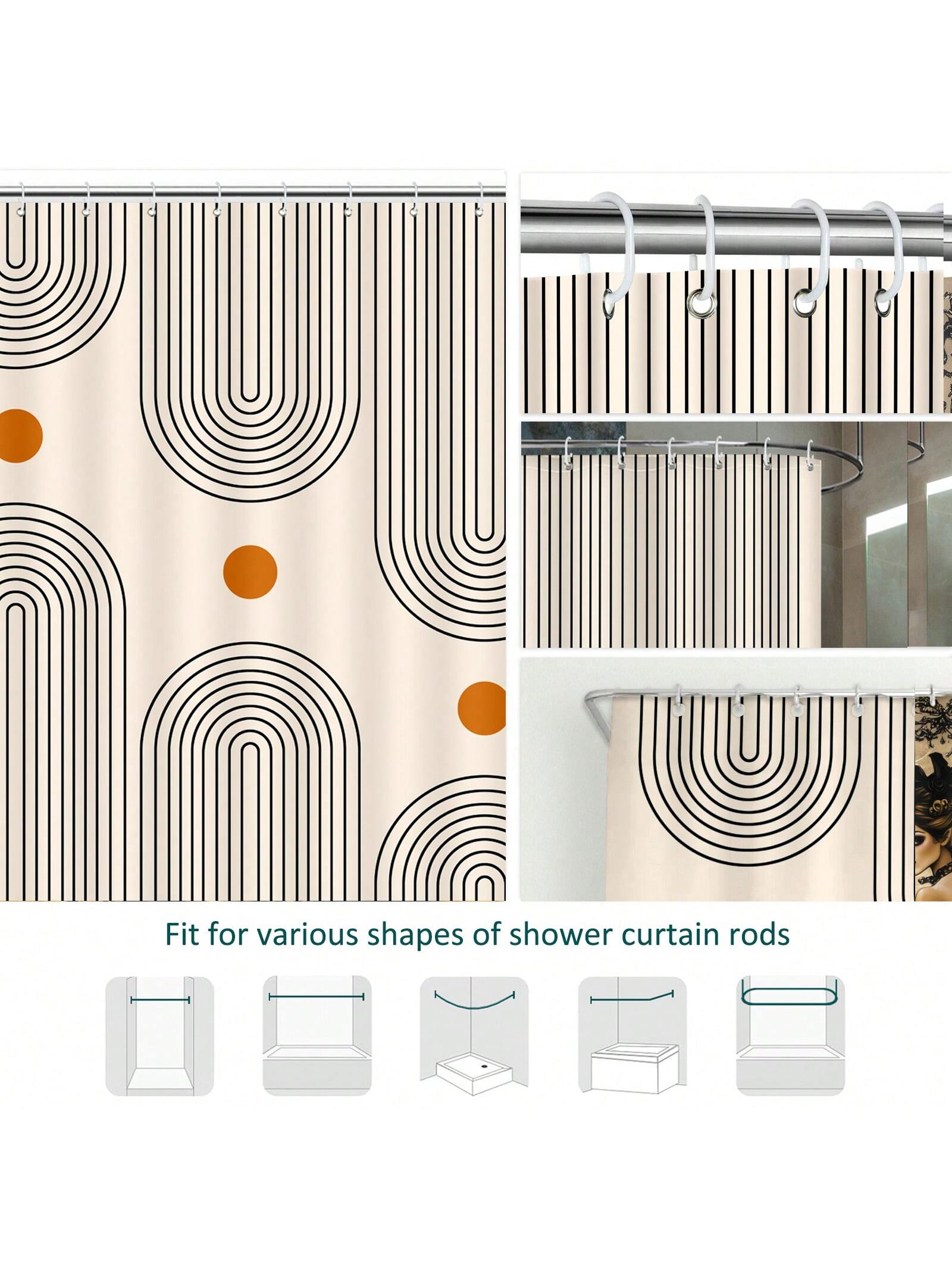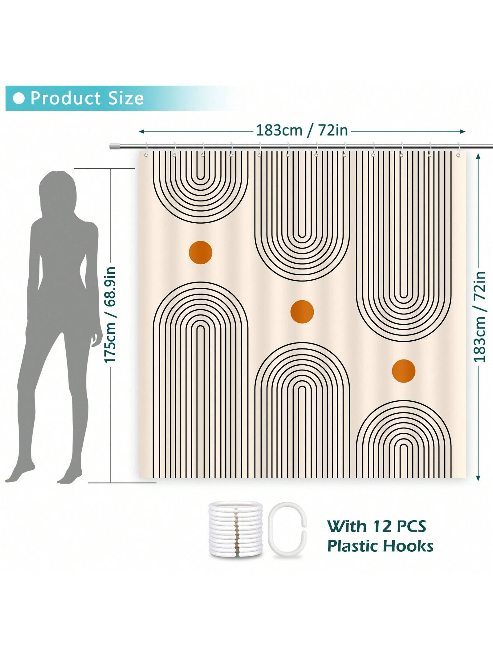 Boho Mid-Century Abstract Shower Curtain - 72x72 Inch Waterproof Design with Hooks