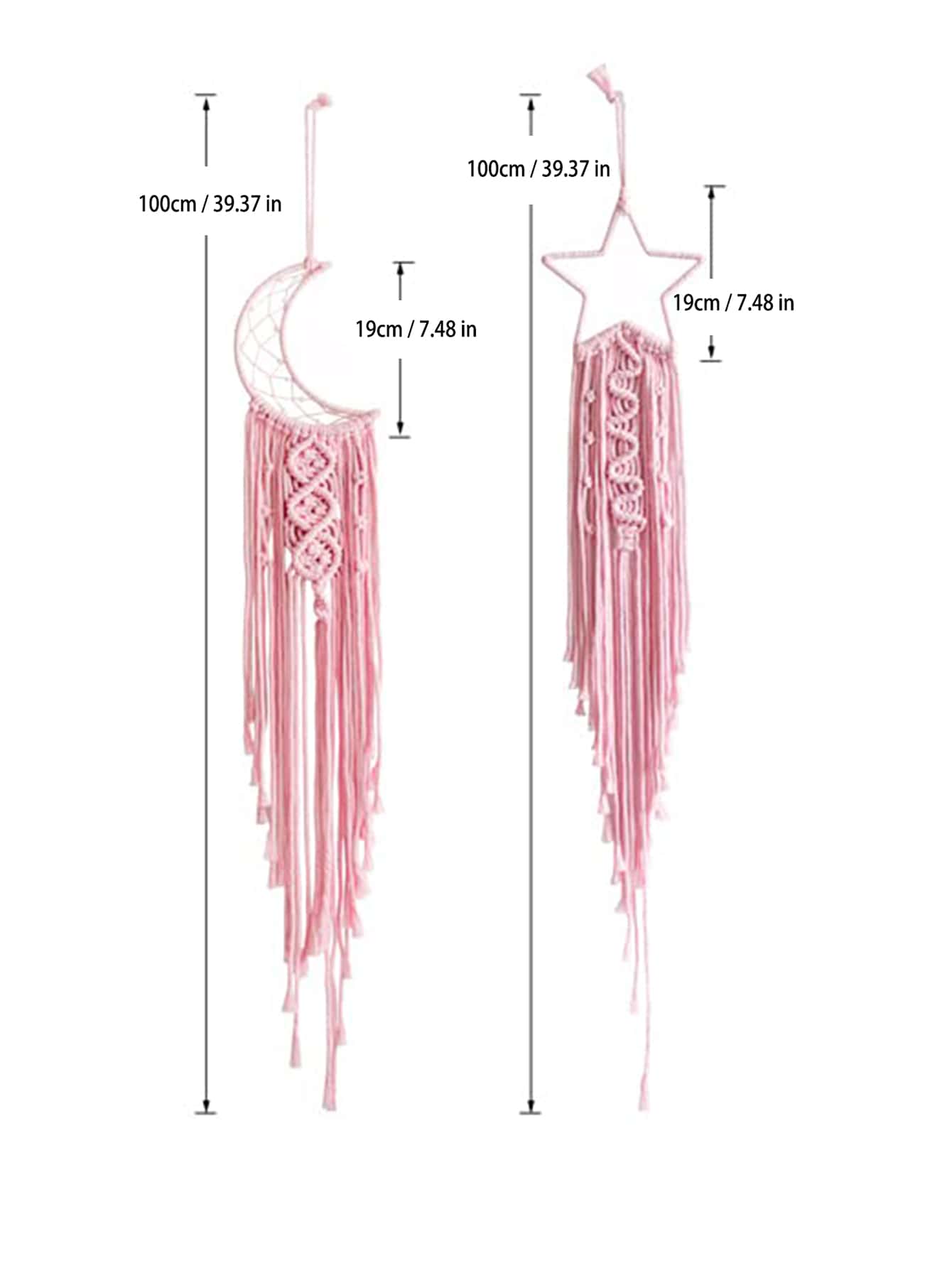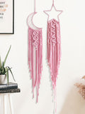 Boho Pink Moon & Star Polyester Wall Hanging Set - Home Decor