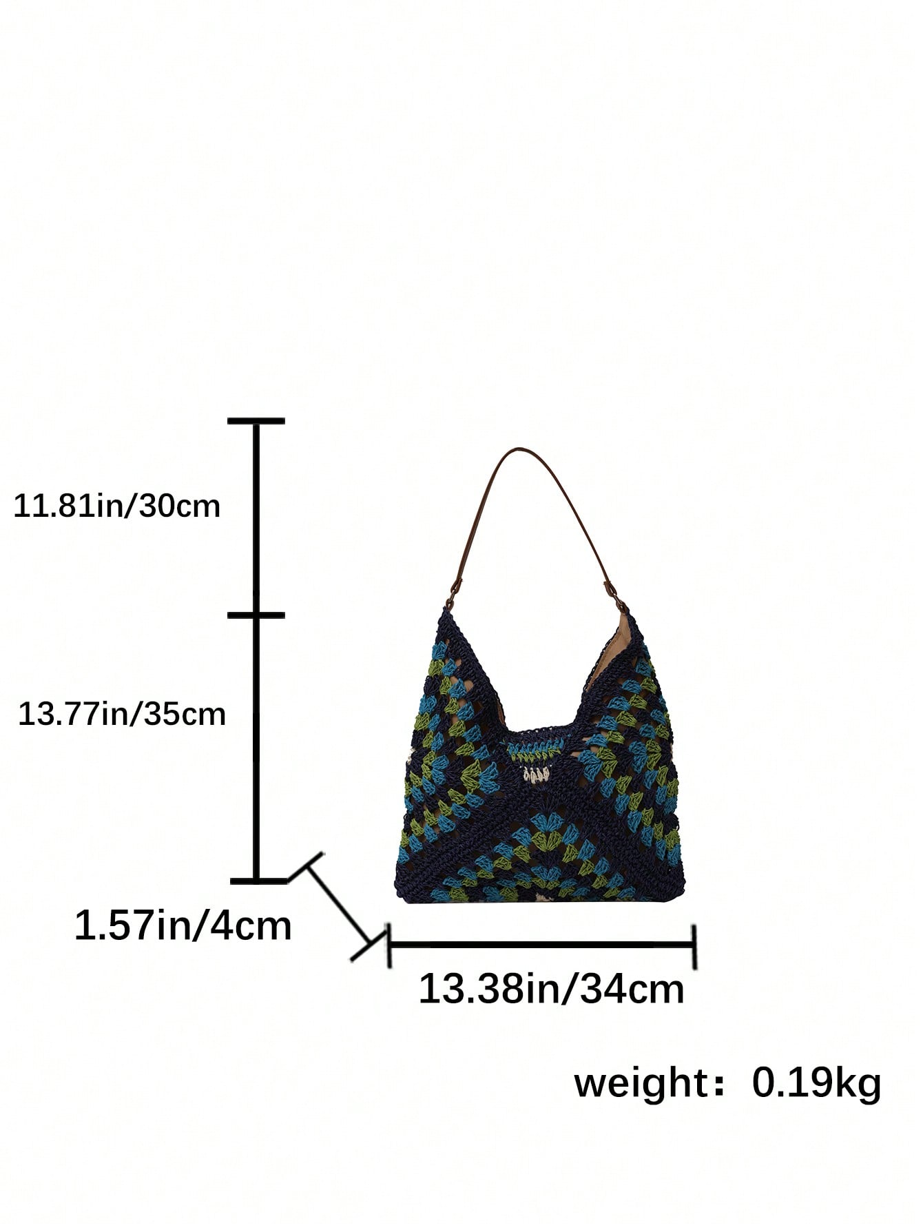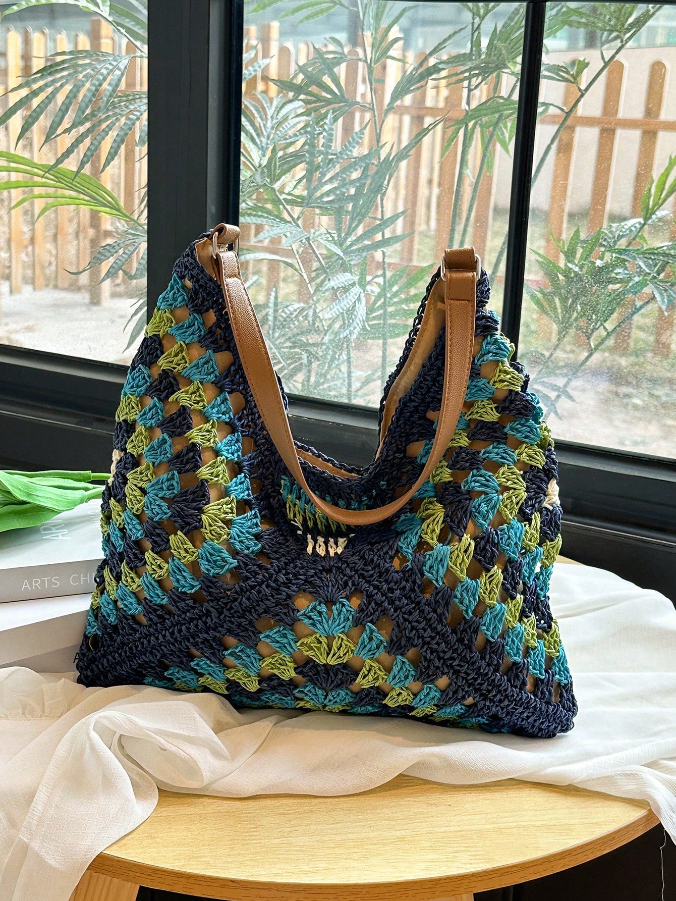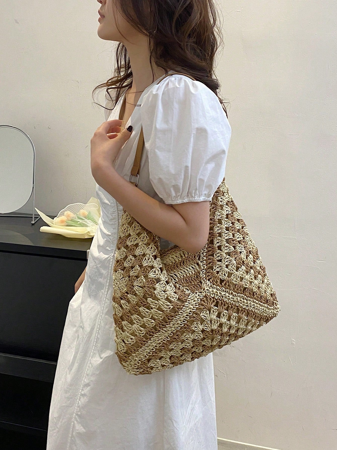 Boho Style Woven Straw Shoulder Bag: Large Capacity Tote for Teen Girls, College Girls & Beach Vacation
