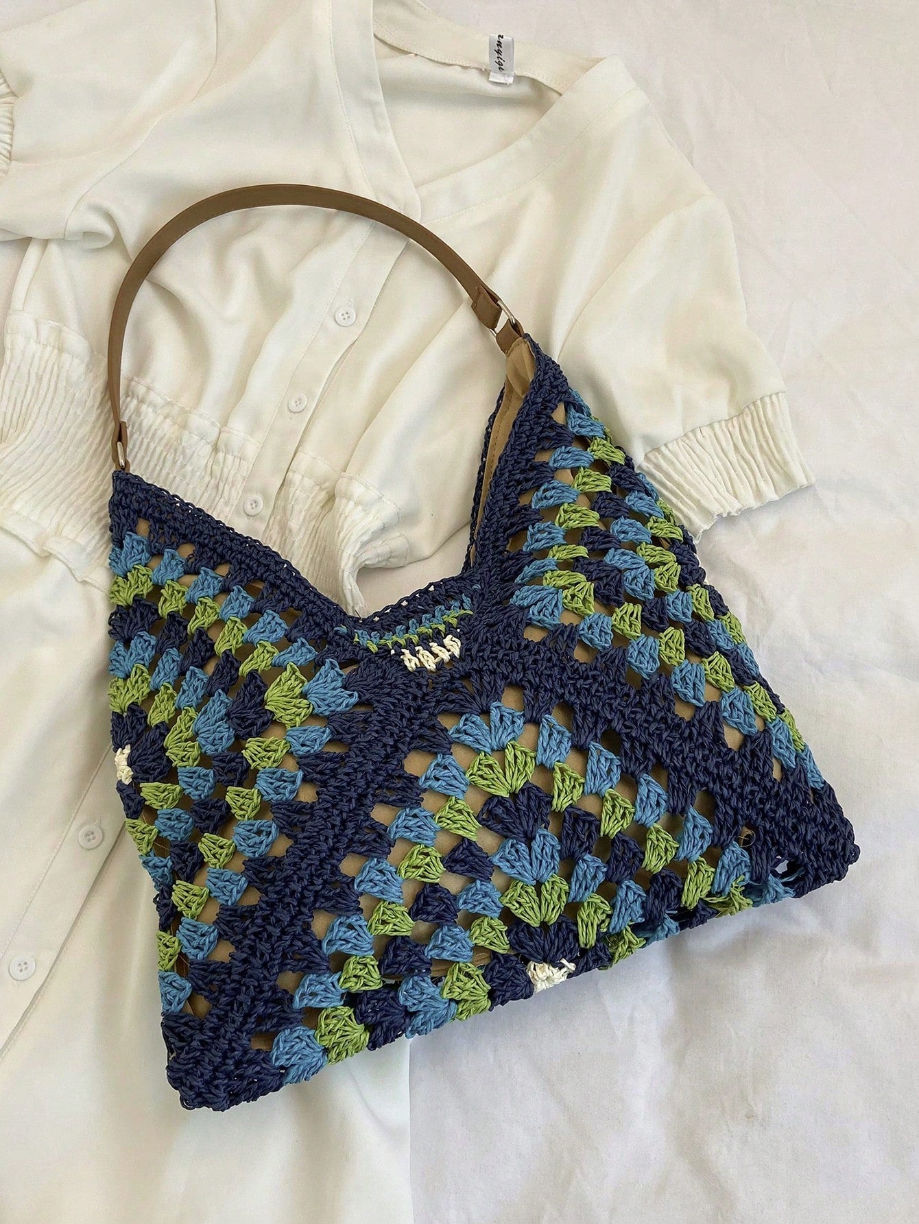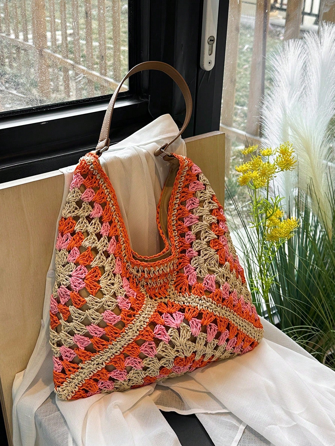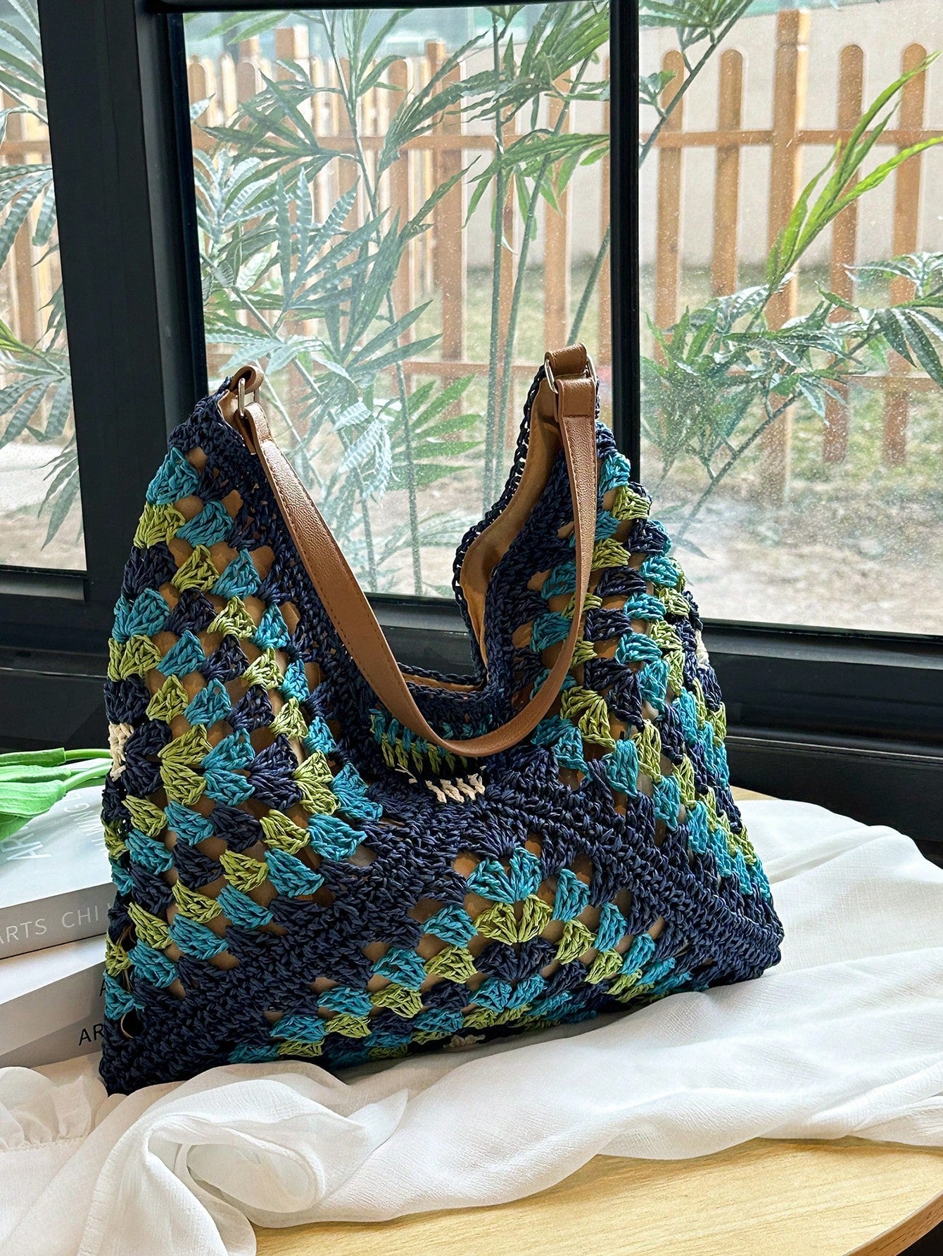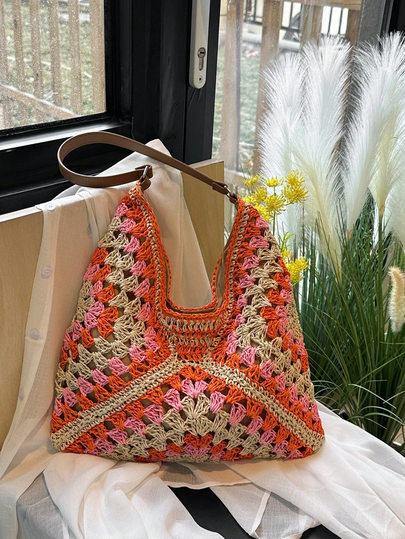 Boho Style Woven Straw Shoulder Bag: Large Capacity Tote for Teen Girls, College Girls & Beach Vacation