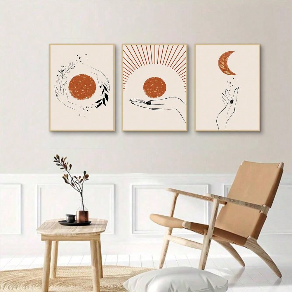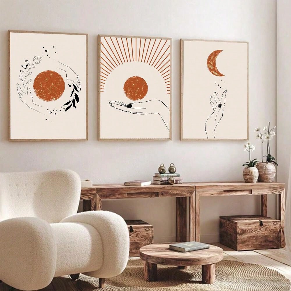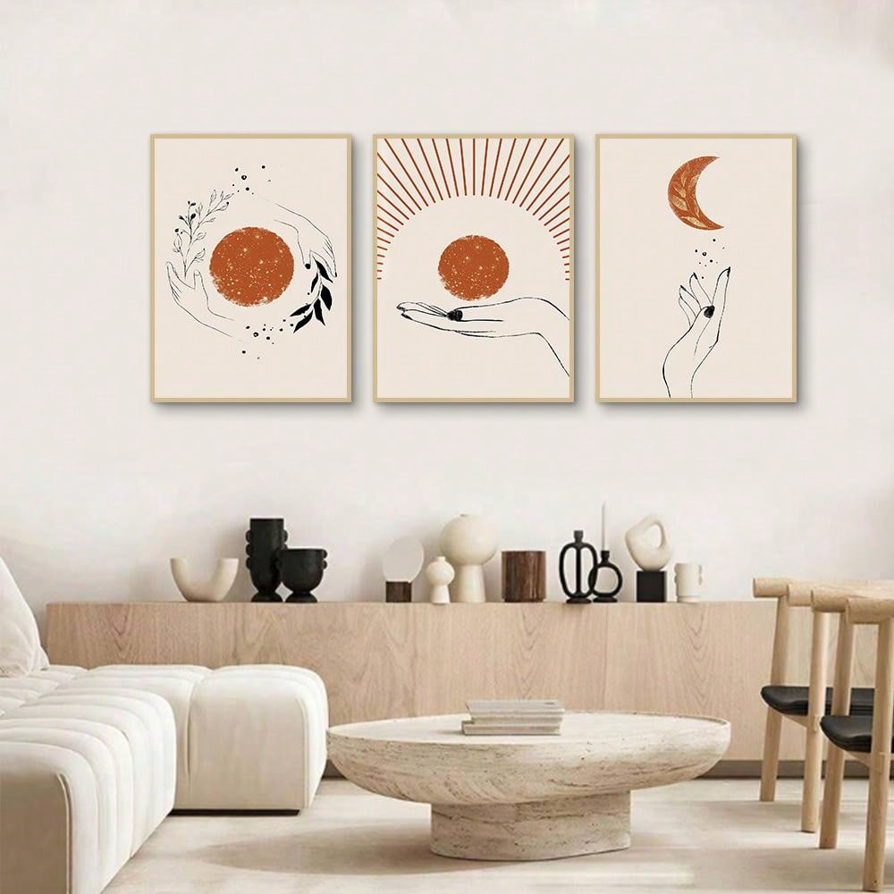 Boho Sun and Moon Line Pattern Wall Art Set - Vibrant Home Decor for Living Room and Bedroom