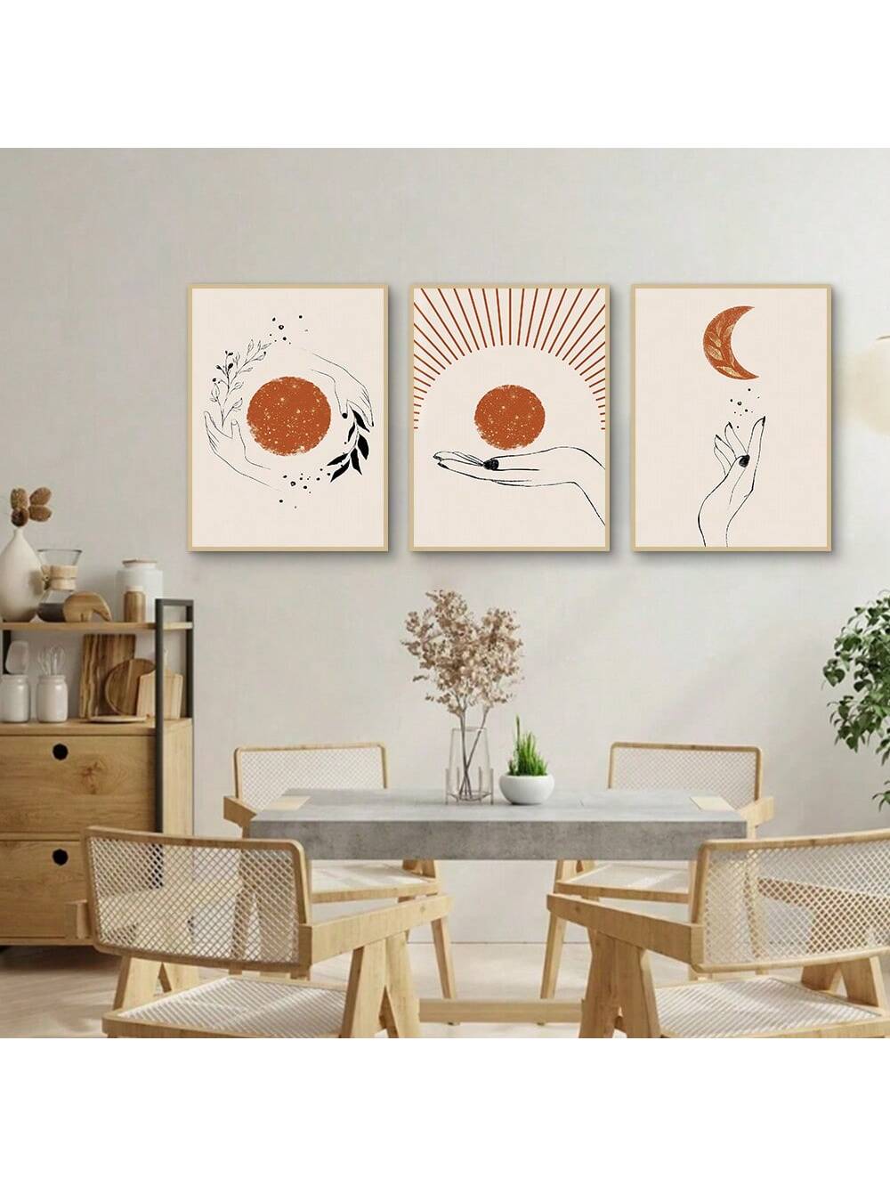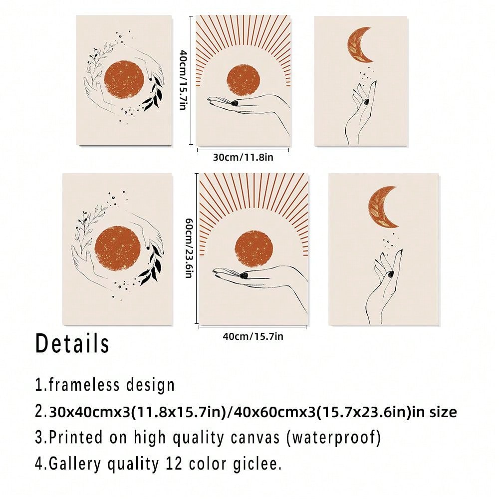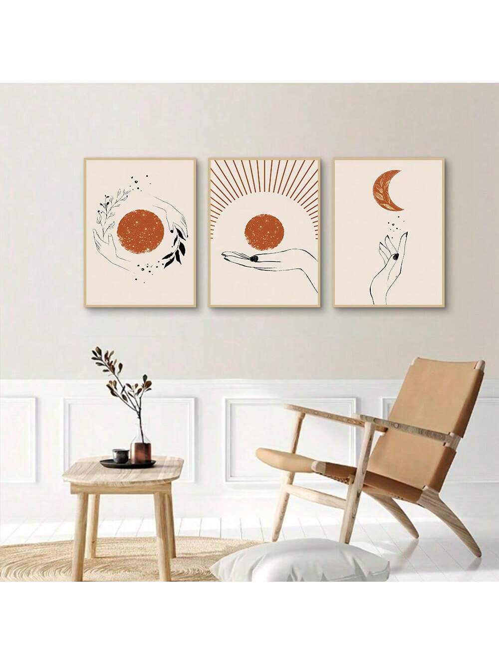 Boho Sun and Moon Line Pattern Wall Art Set - Vibrant Home Decor for Living Room and Bedroom