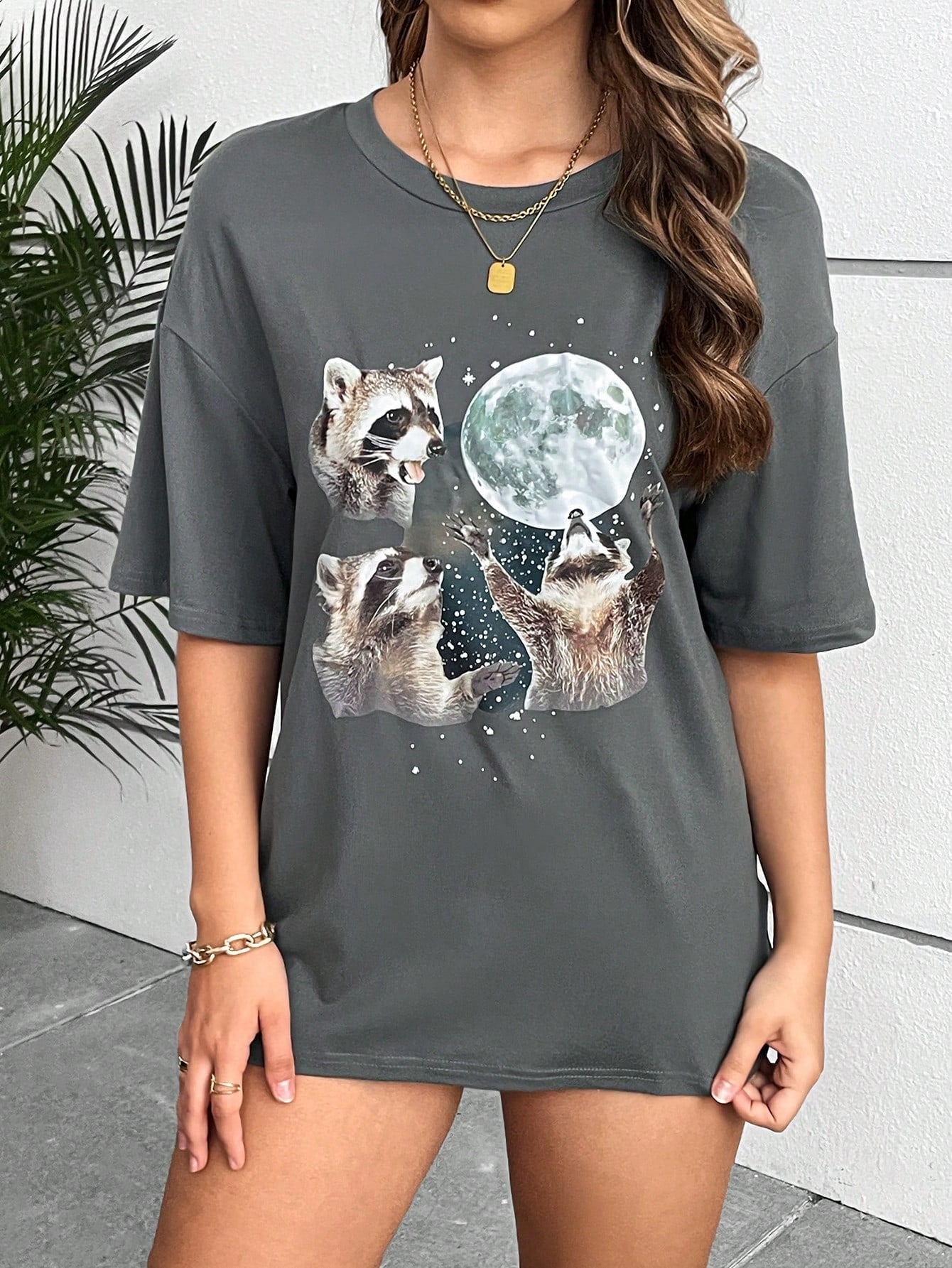 Bold 3D Wolf Graphic Drop Shoulder Tee – Perfect for Summer Vibes
